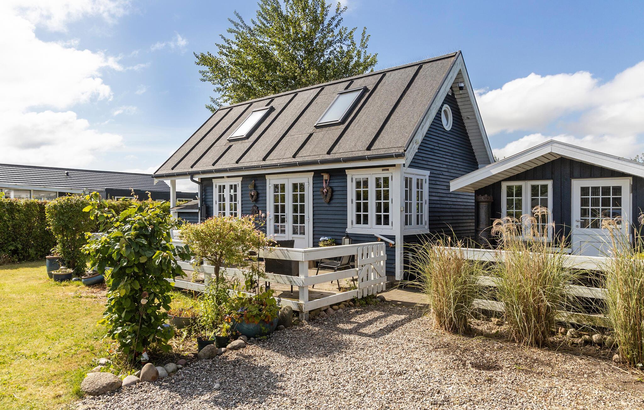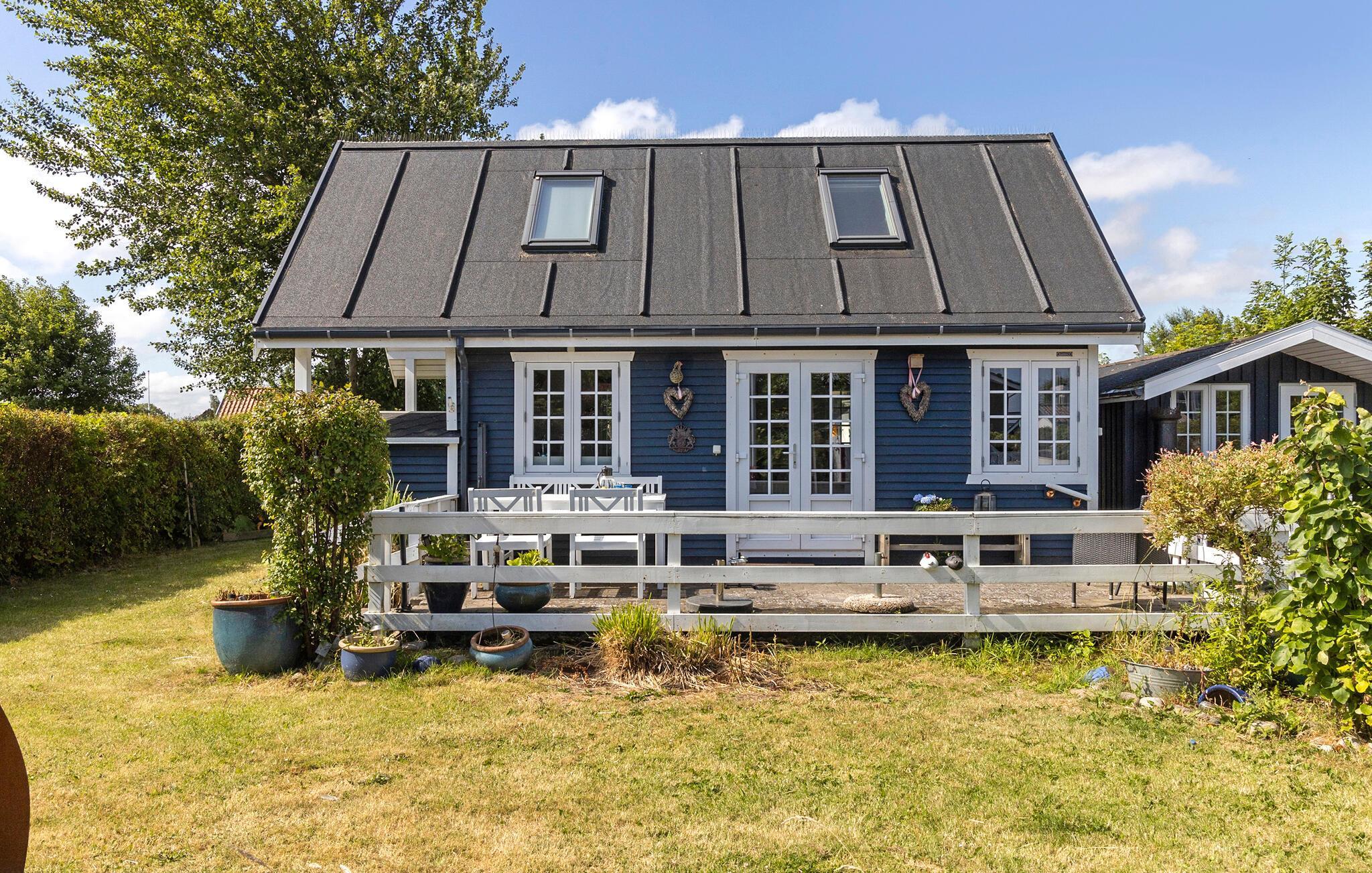 Hyggeligt feriehus ved Hasmark Strand med indhegnet have og bålplads, kun 75 meter fra vandet.