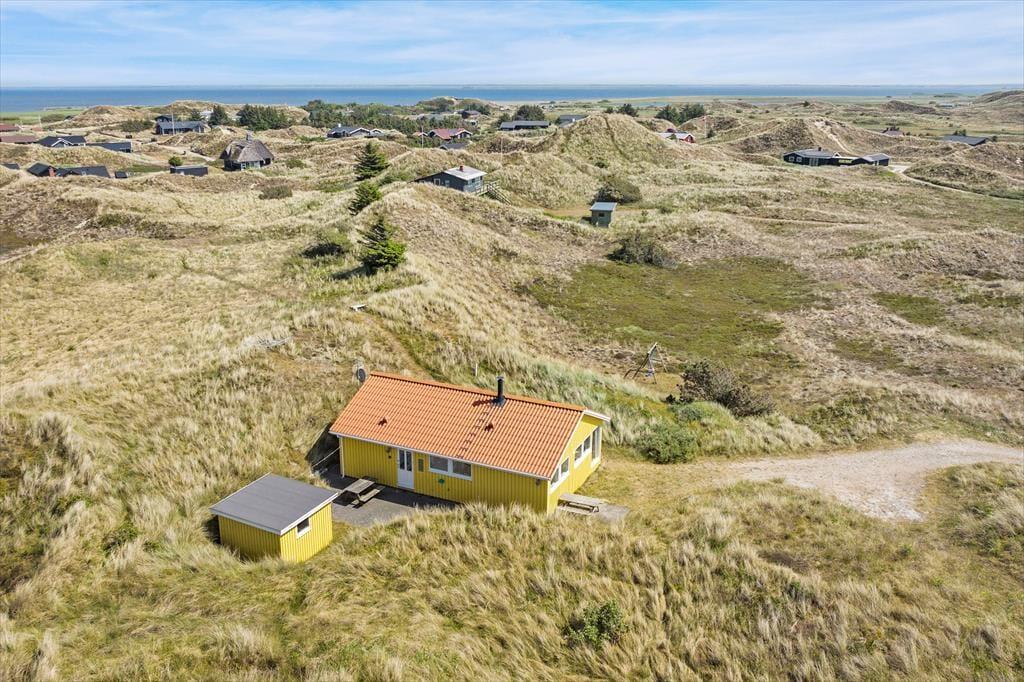 Med terrasser mod syd og nord er her rig mulighed for at nyde fridagene under åben himmel, og den sydvendte har sol dagen lang og god plads til at grille. Herfra er udsigten til klitlandskabet og Haurvigs gamle sømærke på bavnehøjen spektakulær. Grunden måler næsten 1,2 hektar med uberørt natur, så I har masser af plads omkring jer og ingen tætte naboer.
