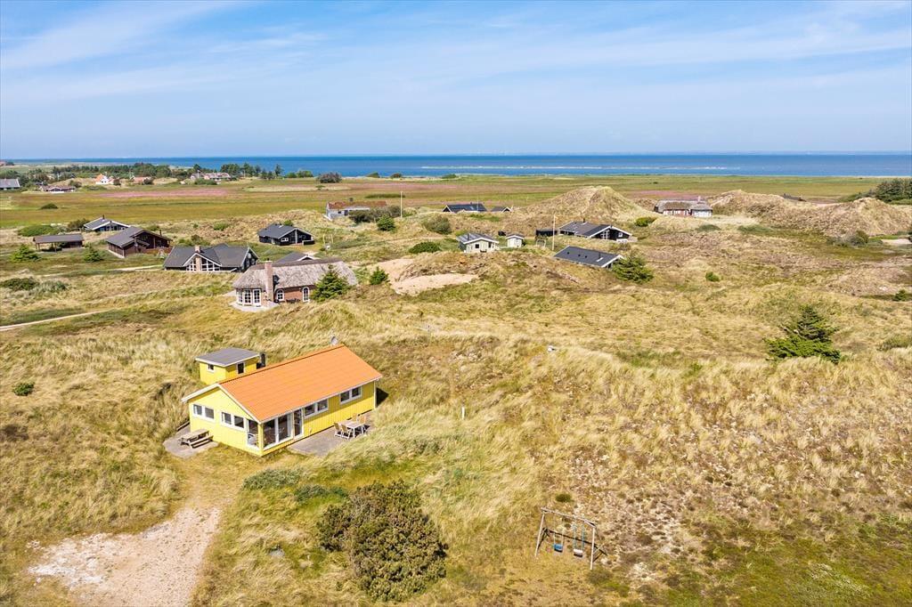 Dette charmerende feriehus er ideelt til jer, der kan lide at slappe af i solen med udsigt til masser af natur. Feriehuset ligger nemlig højt i landskabet på fjordsiden i Sønder Haurvig, og fra stuen og den sydvendte terrasse har I en pragtfuld panoramaudsigt over klitlandskabet, der strækker sig mellem Ringkøbing Fjord og Vesterhavet.