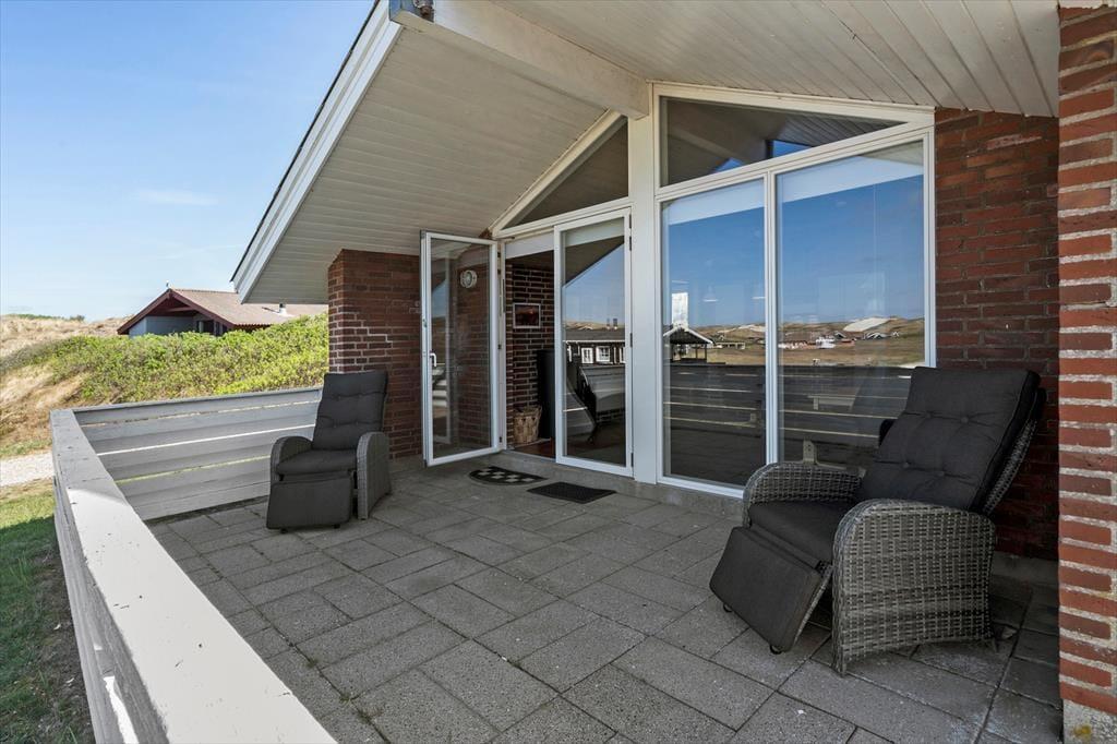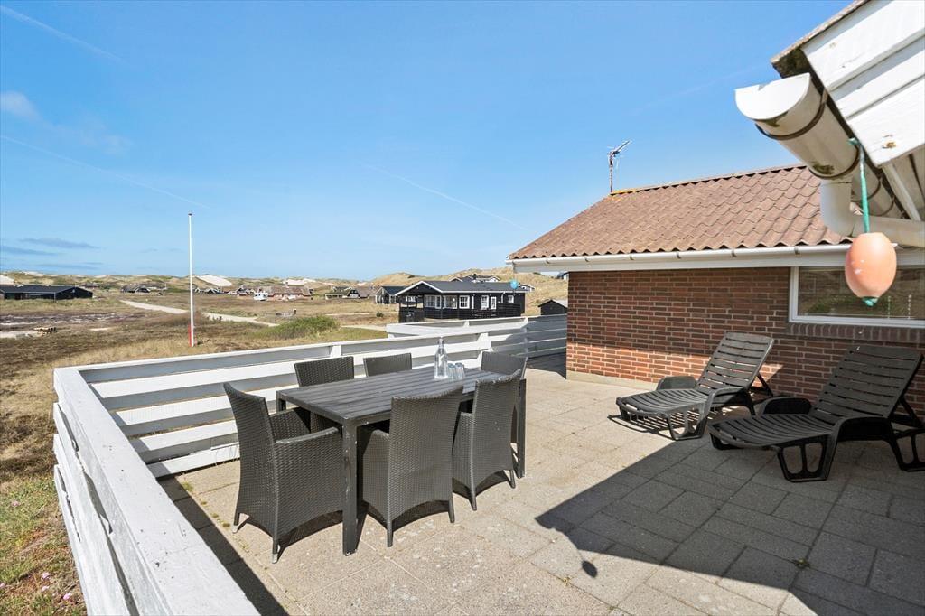 Dette stemningsfulde sommerhus ligger højt i landskabet, og derfor har I fra huset og den store, solvendte terrasse en skøn udsigt over Haurvigs klithede og smukke natur. Med blot 450 meter til stranden og Vesterhavet kan de varme sommerdage nemt krydres med en forfriskende dukkert i bølgen blå.