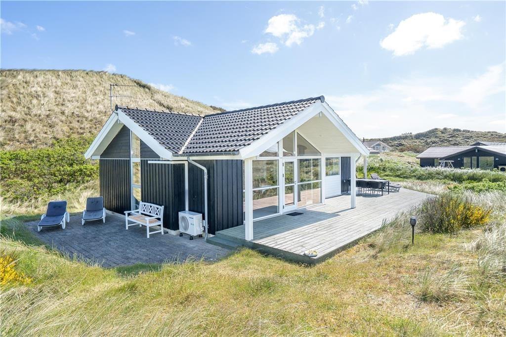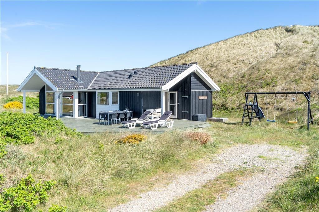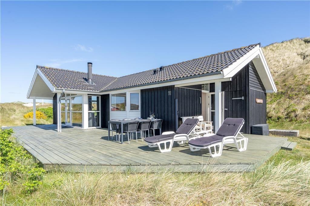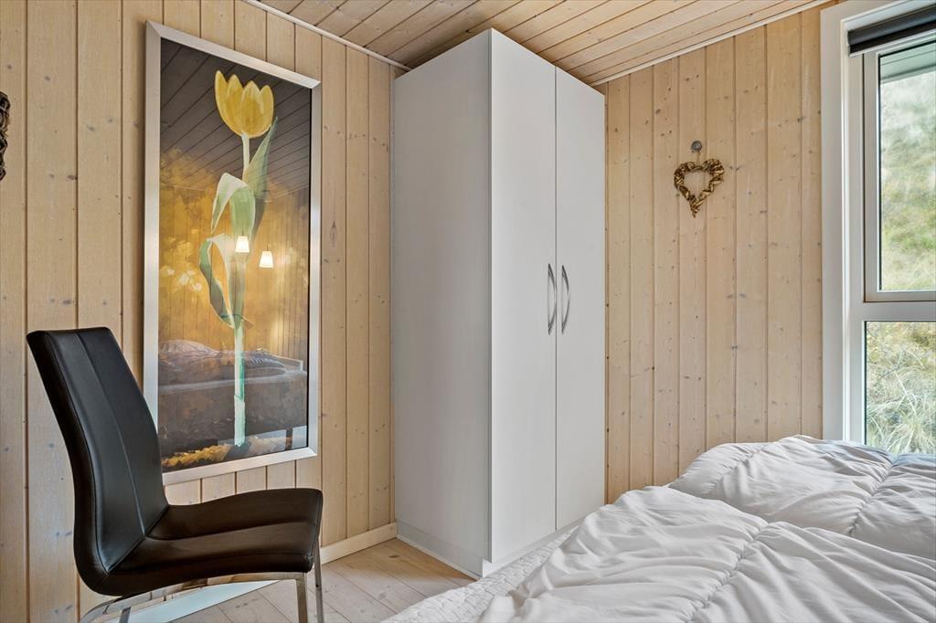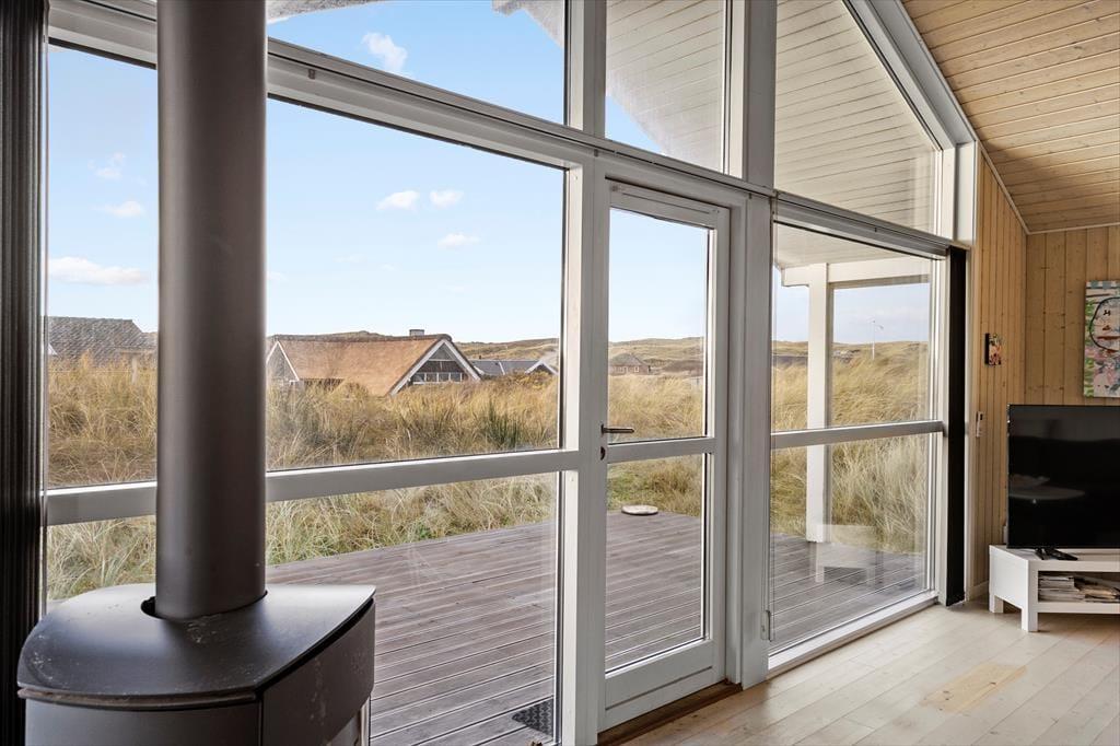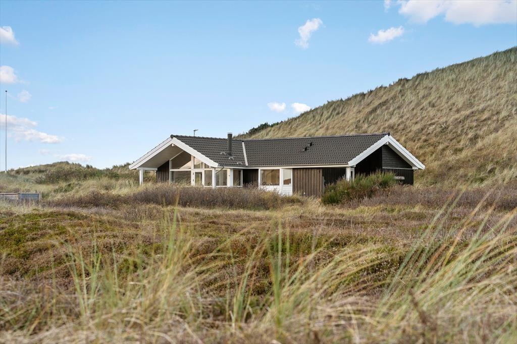 Yderst velholdt luksus sommerhus i træ til 6 personer med hems til børnene. Beliggende i roligt område med flot udsigt til første klitrække og en høj lægivende klit i baghaven, hvorfra der er en fantastisk udsigt over Ringkøbing Fjord og klitterne ud mod Vesterhavet.