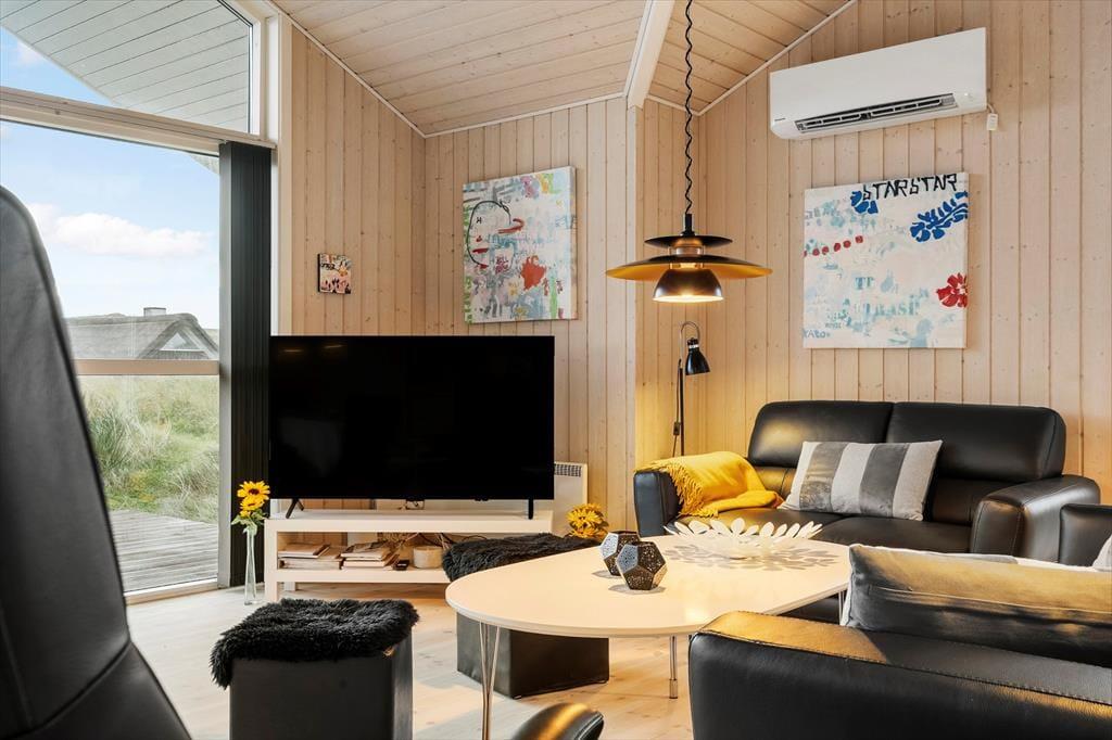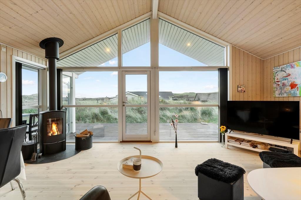 Feriehuset er lyst og rummeligt, da der er højt til loftet og dermed en god basis for en hyggelig ferie.