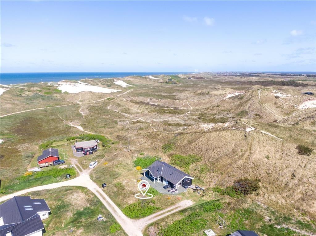 Stor klitgrund med storslået udsyn over området, og til klitterne. Der er gyngestativ med 2 gynger og lille rutchebane samt sandkasse til de mindste. På terrasserne er der liggestole, flere sæt havemøbler og bænk samt en grill til rådighed.