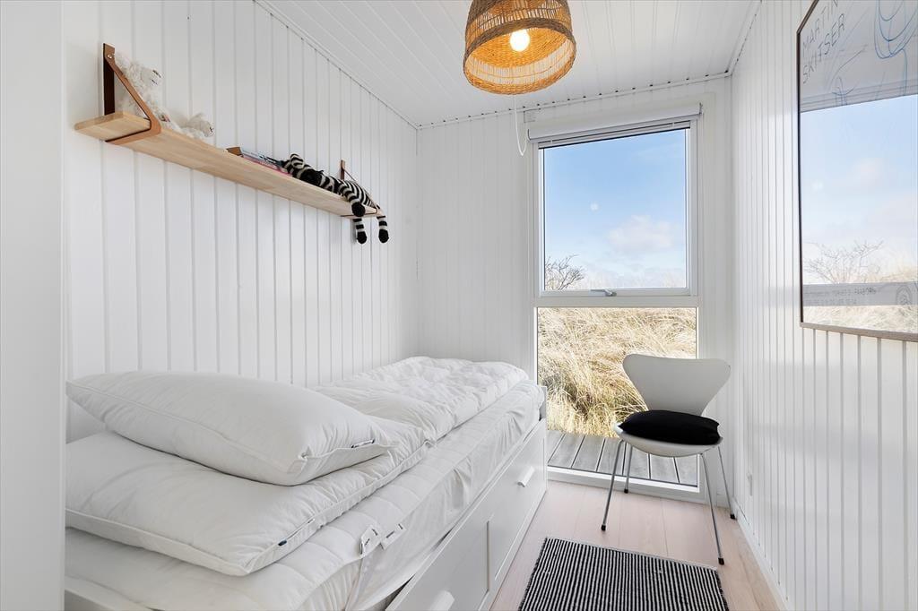 Dette lækkert indrettede sommerhus byder på moderne komfort og en skøn udsigt til Haurvigs naturskønne landskab. Udsigt har I også til klitrækken ud mod Vesterhavet, og med blot fem minutters gang til stranden er det let at krydre feriedagene med forfriskende dukkerter i bølgen blå.