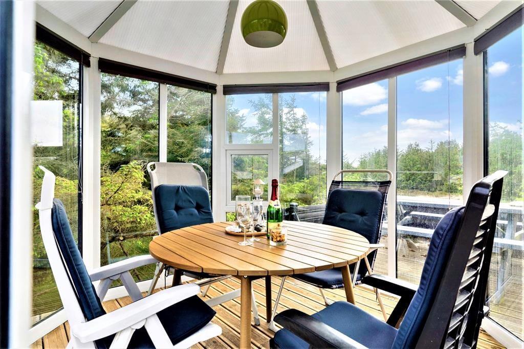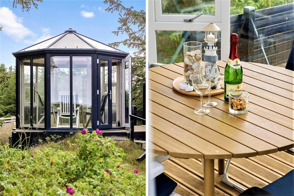 Fra stuen er der direkte adgang til en syd- og østvendt terrasse, hvor I kan begynde dagen med at nyde en dampende varm kop kaffe til synet af solopgangen over fjorden. På husets modsatte side findes en hyggelig, vestvendt terrasse, og tilmed har I en skøn pavillon, hvor I kan nyde udelivet, selv hvis en sommerbyge skulle trække forbi.