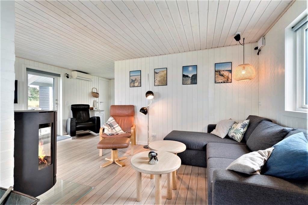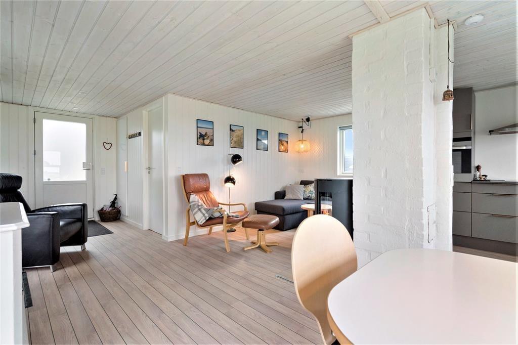 Dette charmerende og moderne sommerhus er et godt match til jer, der gerne vil bruge feriedagene omgivet af vestjysk natur og med få skridt til Vesterhavet. Fra huset og en sydvendt terrasse er der udsigt til Ringkøbing Fjord, som tager sig særligt smuk ud i solopgangen.