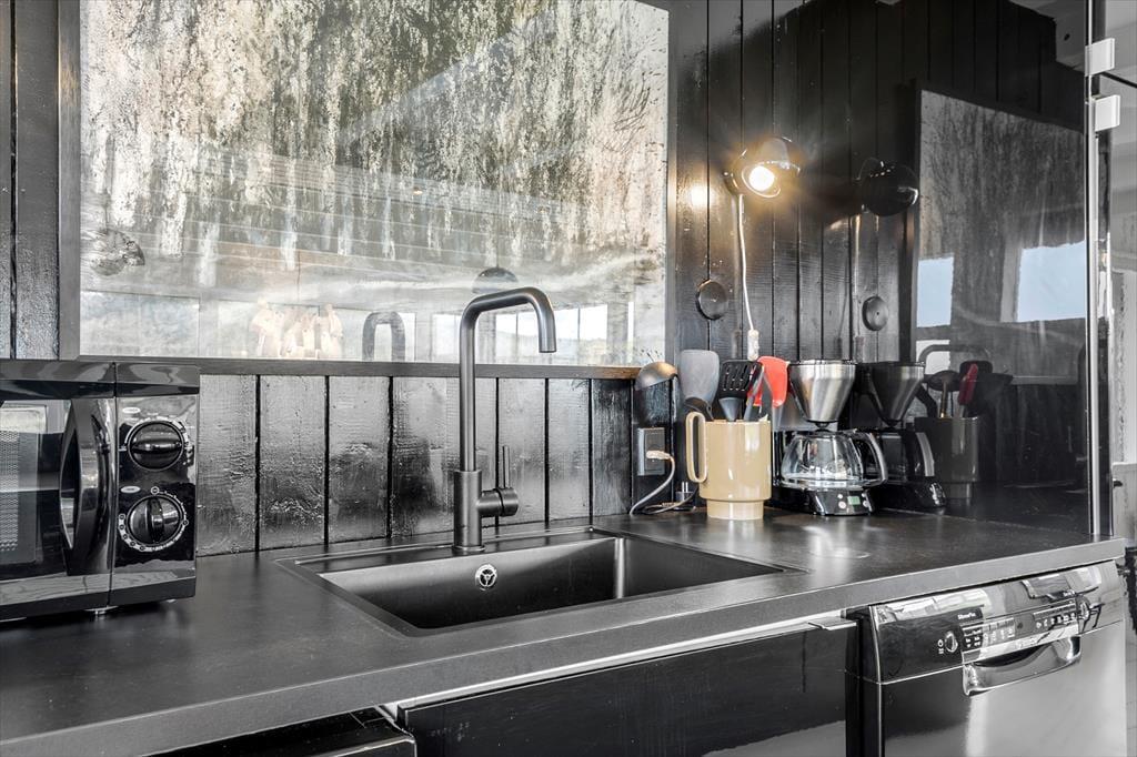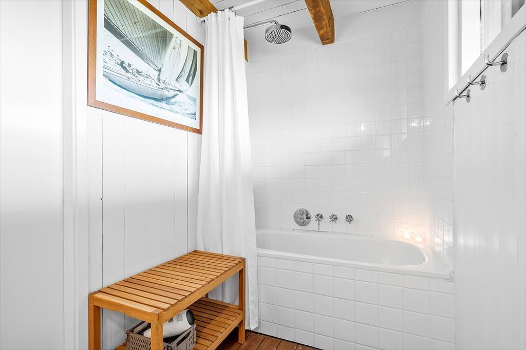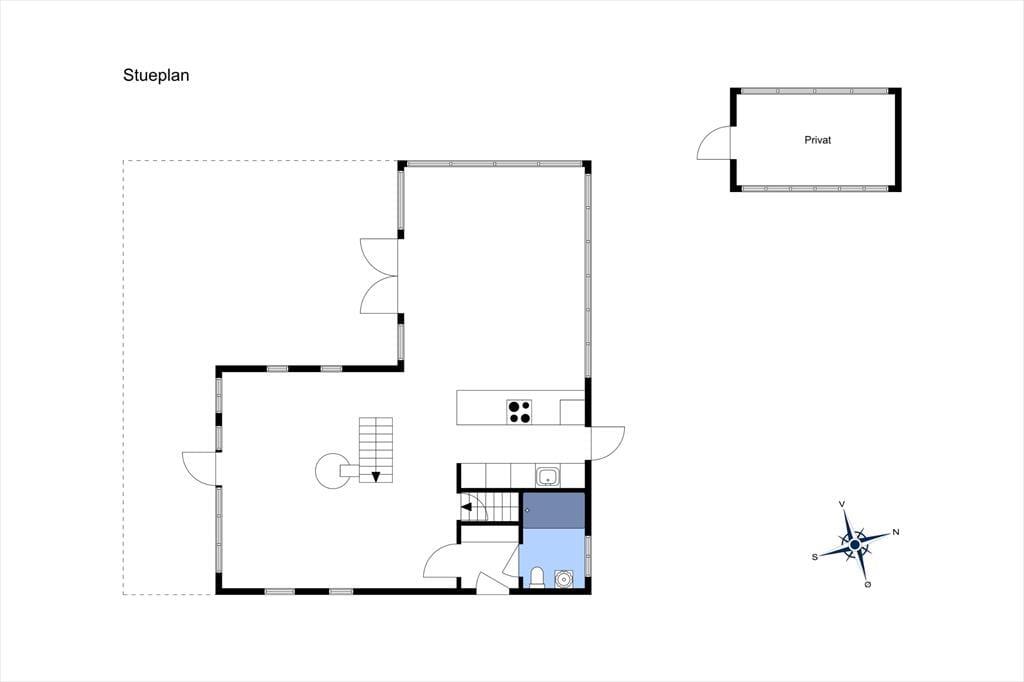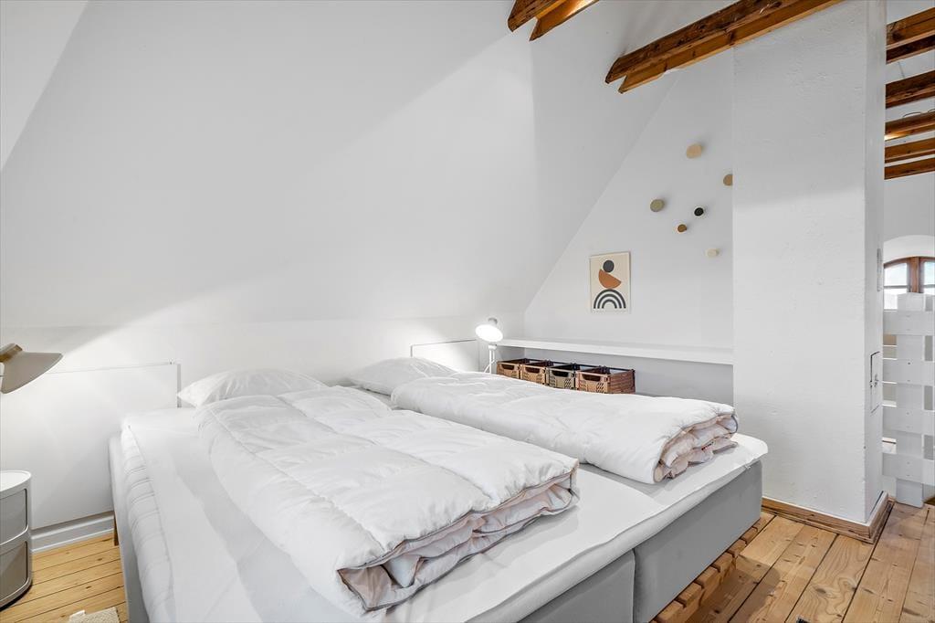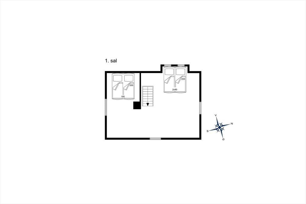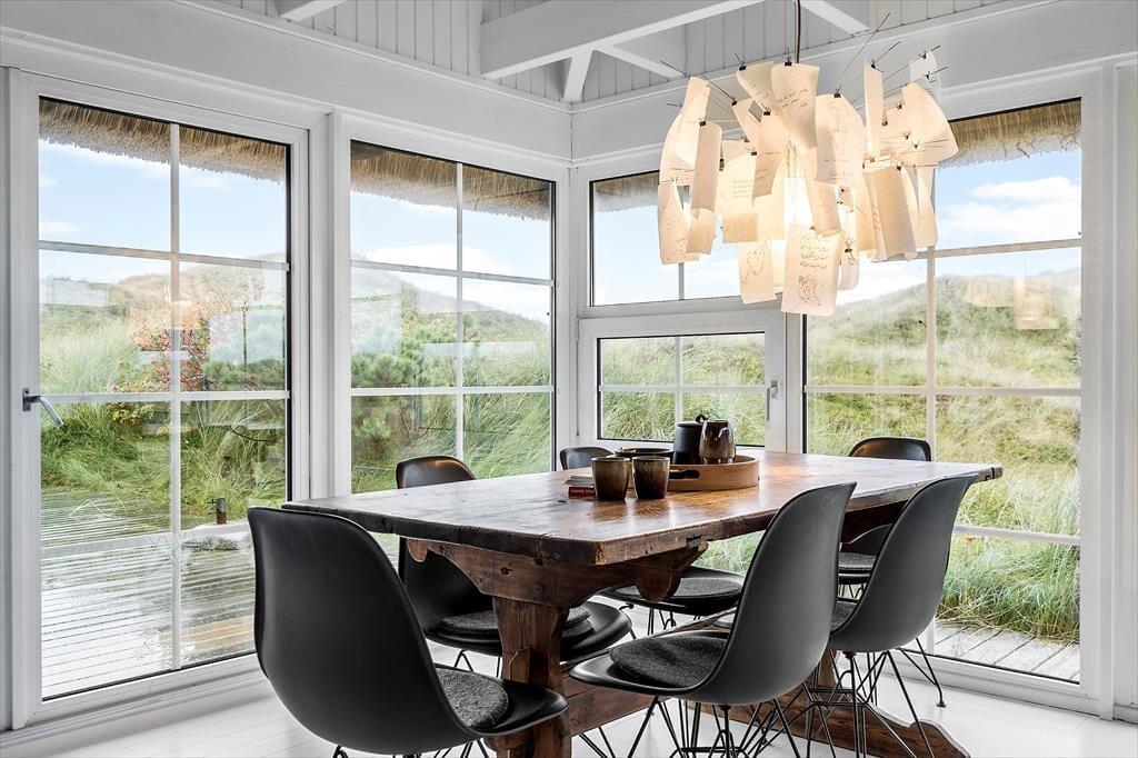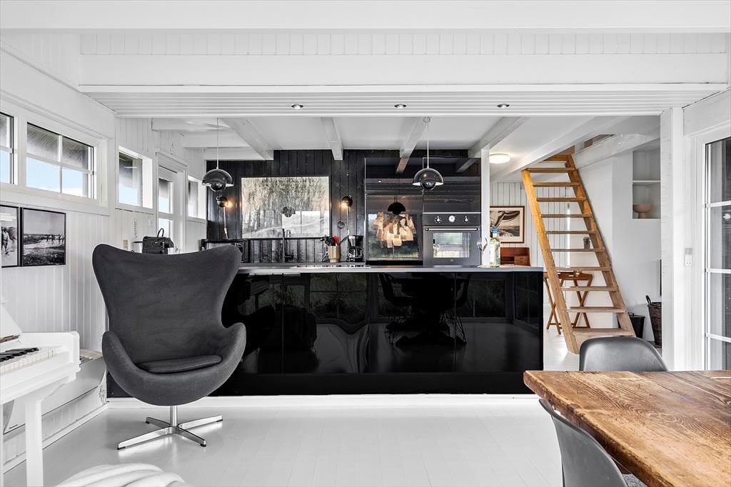 Inden døre i sommerhuset kan du straks føle dig hjemme i de lyse og indbydende omgivelser. Der er 100 m2 at gøre godt med fordelt på to etager, og du kan derfor oplagt være her med din lille familie – hvis ikke det er en romantisk ferie med din bedre halvdel, du ser frem til. I stueplan ligger et flot og veludstyret køkken centralt placeret i den åbne opholdsafdeling, og til den ene side finder du en hyggelig sofaafdeling med indbygningspejs, mens der er spiseplads og sågar et klaver på den anden side. Med sine store vinduespartier minder spiseafdelingen nærmest om en udestue, og du kan roligt glæde dig til at sidde her med fri og uforstyrret udsigt til det smukke klitlandskab. Et badeværelse med lille badekar ligger også i stueplan, mens førstesalen rummer sengepladser til fire personer. Bemærk, at der er åben forbindelse mellem de to soveafsnit, men takket være halvmuren er der skærmet af – og så er der for øvrigt fjordkig fra etagens små vinduer.