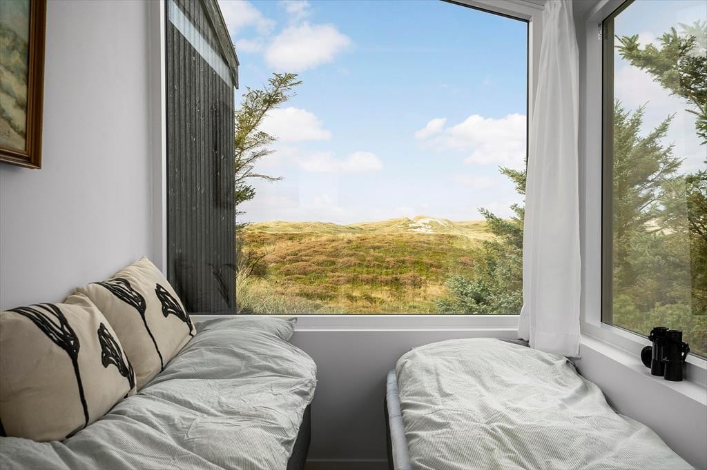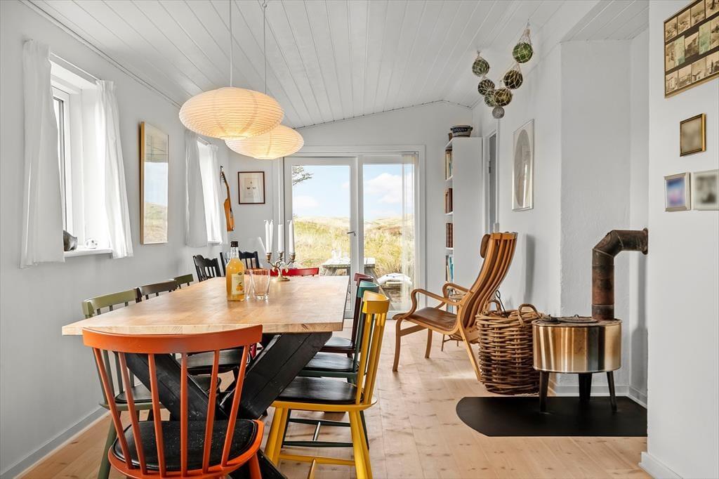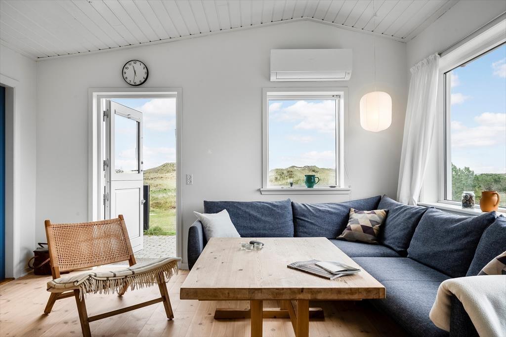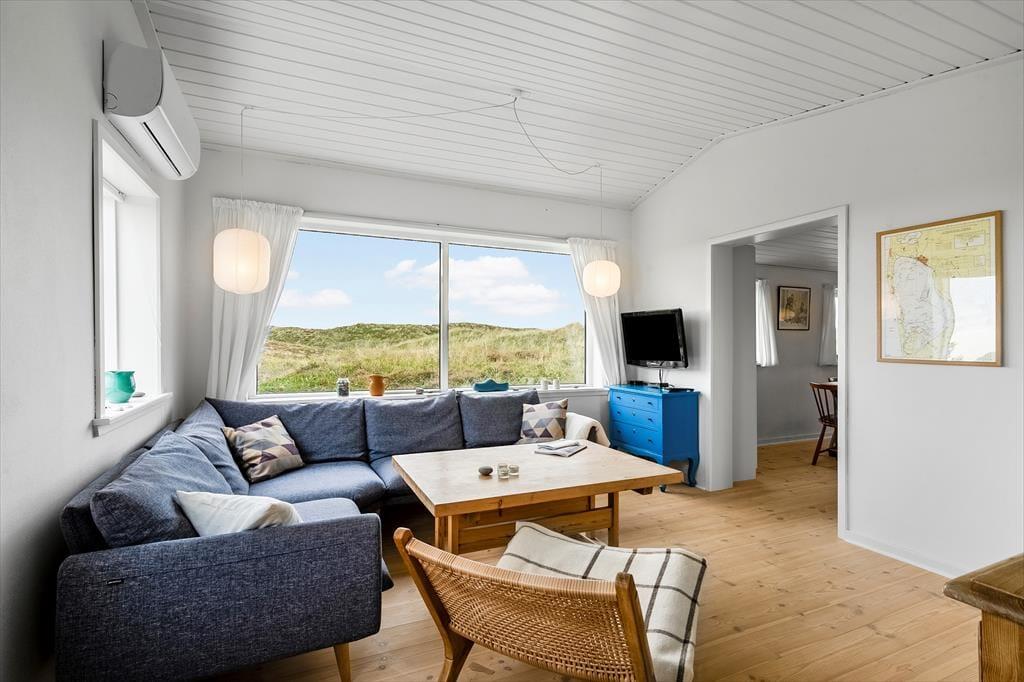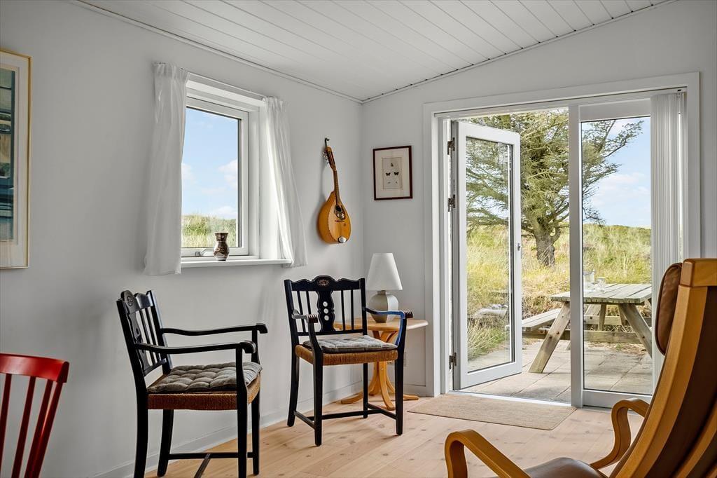 Inde i sommerhuset møder I en lys og indbydende atmosfære, hvor den gennemførte renovering har skabt et tidssvarende, men stadig hyggeligt udtryk. Store vinduespartier trækker naturen helt ind i stuen, så I kan nyde klitternes skiftende farver fra morgen til aften. Opholdsrummet indbyder til samvær, uanset om I laver mad i det åbne køkken, spiller spil ved spisebordet eller lader samtalerne flyde i sofahjørnet. Det tilhørende anneks rummer to senge samt eget badeværelse – en ideel løsning til gæster, teenagere eller den, der ønsker lidt ekstra privatliv.