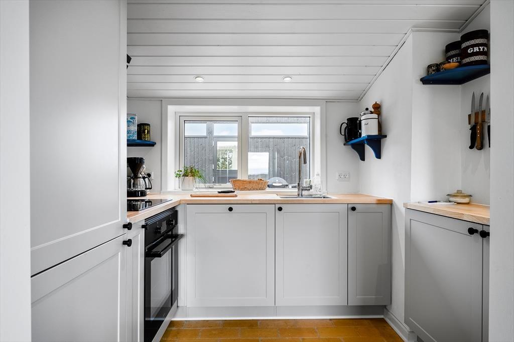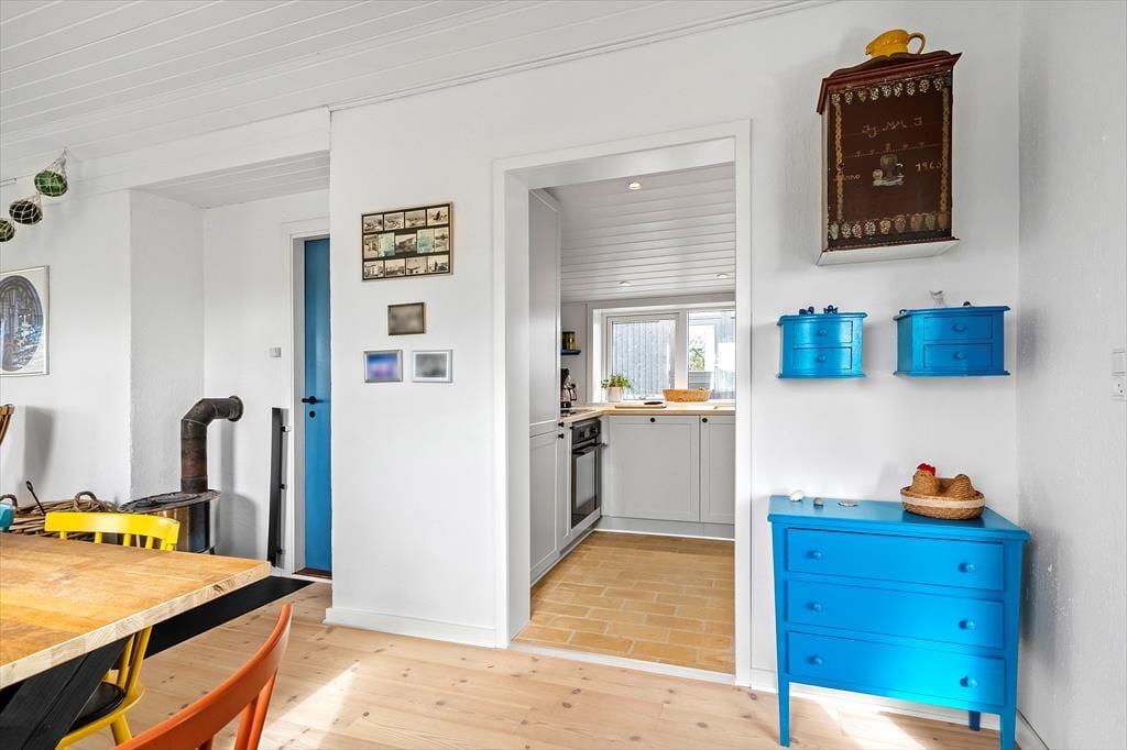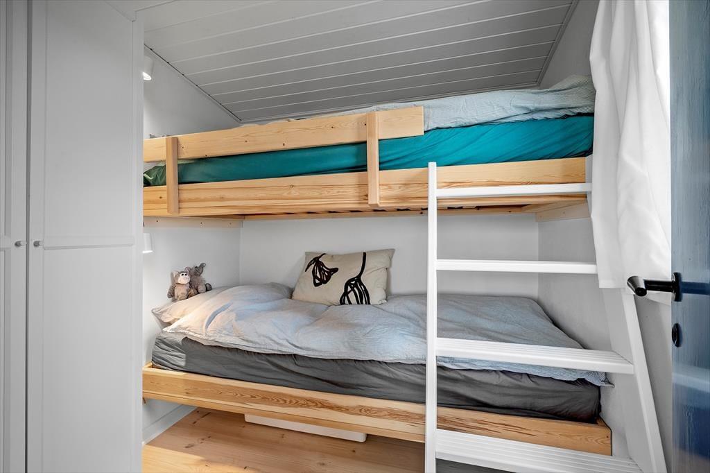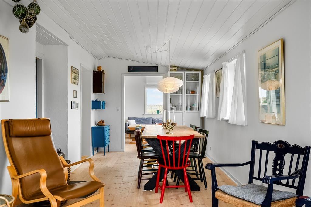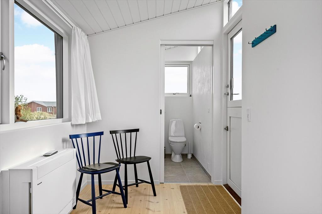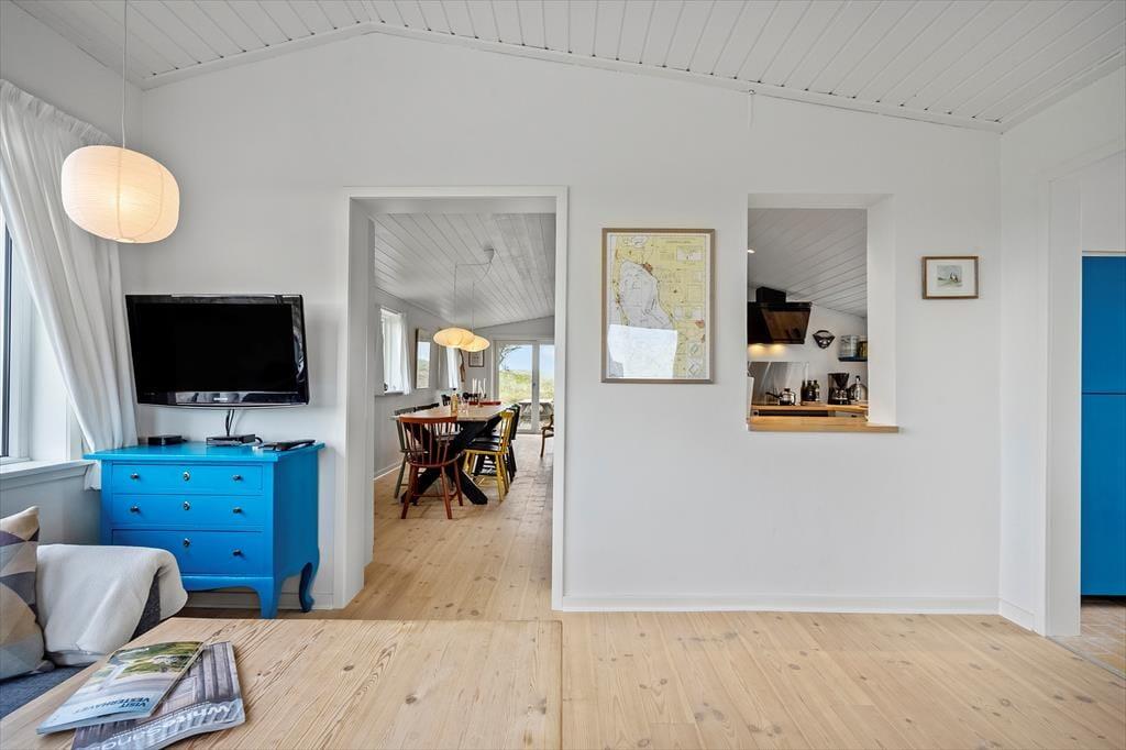 Inde i sommerhuset møder I en lys og indbydende atmosfære, hvor den gennemførte renovering har skabt et tidssvarende, men stadig hyggeligt udtryk. Store vinduespartier trækker naturen helt ind i stuen, så I kan nyde klitternes skiftende farver fra morgen til aften. Opholdsrummet indbyder til samvær, uanset om I laver mad i det åbne køkken, spiller spil ved spisebordet eller lader samtalerne flyde i sofahjørnet. Det tilhørende anneks rummer to senge samt eget badeværelse – en ideel løsning til gæster, teenagere eller den, der ønsker lidt ekstra privatliv.