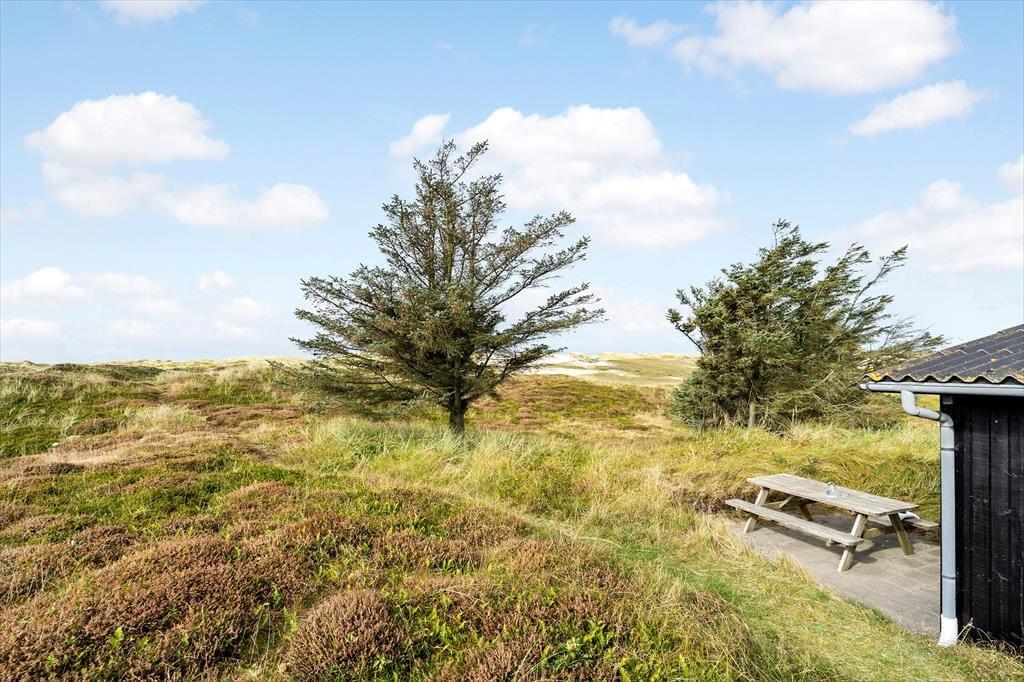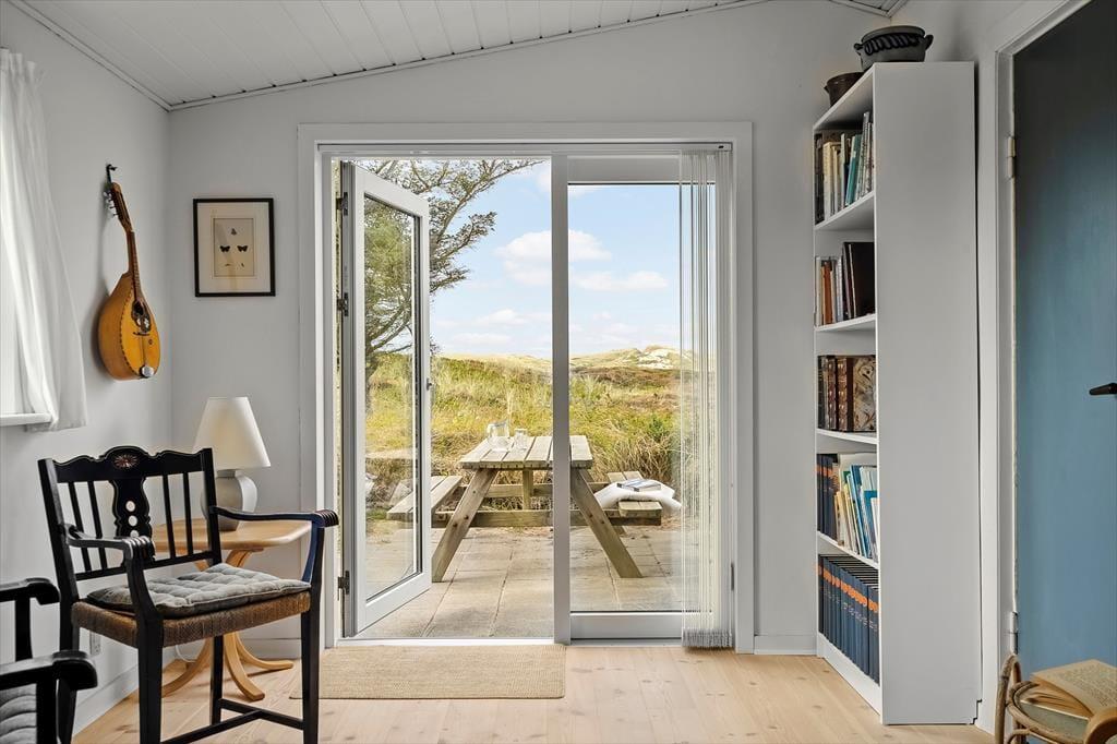 Herude er I omgivet af natur på alle sider – og helt fri for nysgerrige blikke. Sommerhuset ligger godt trukket tilbage fra vejen, og rundt om huset finder I flere terrasser, der giver jer mulighed for at finde læ, sol eller skygge dagen igennem. Udsigten til klitterne er intet mindre end magisk, og det hyggelige gårdmiljø danner rammen for alt fra stille morgenstunder med kaffe til lange aftener under åben himmel. Her er det let at sænke tempoet, mærke brisen fra Vesterhavet og bare være til stede.