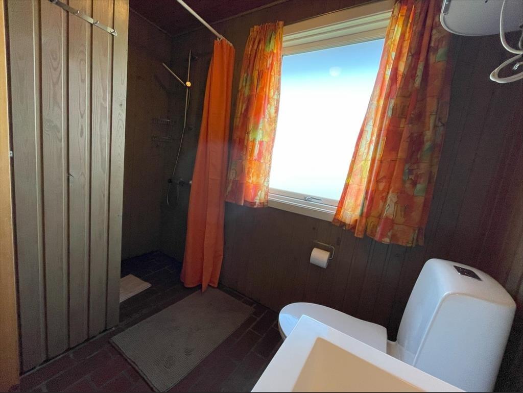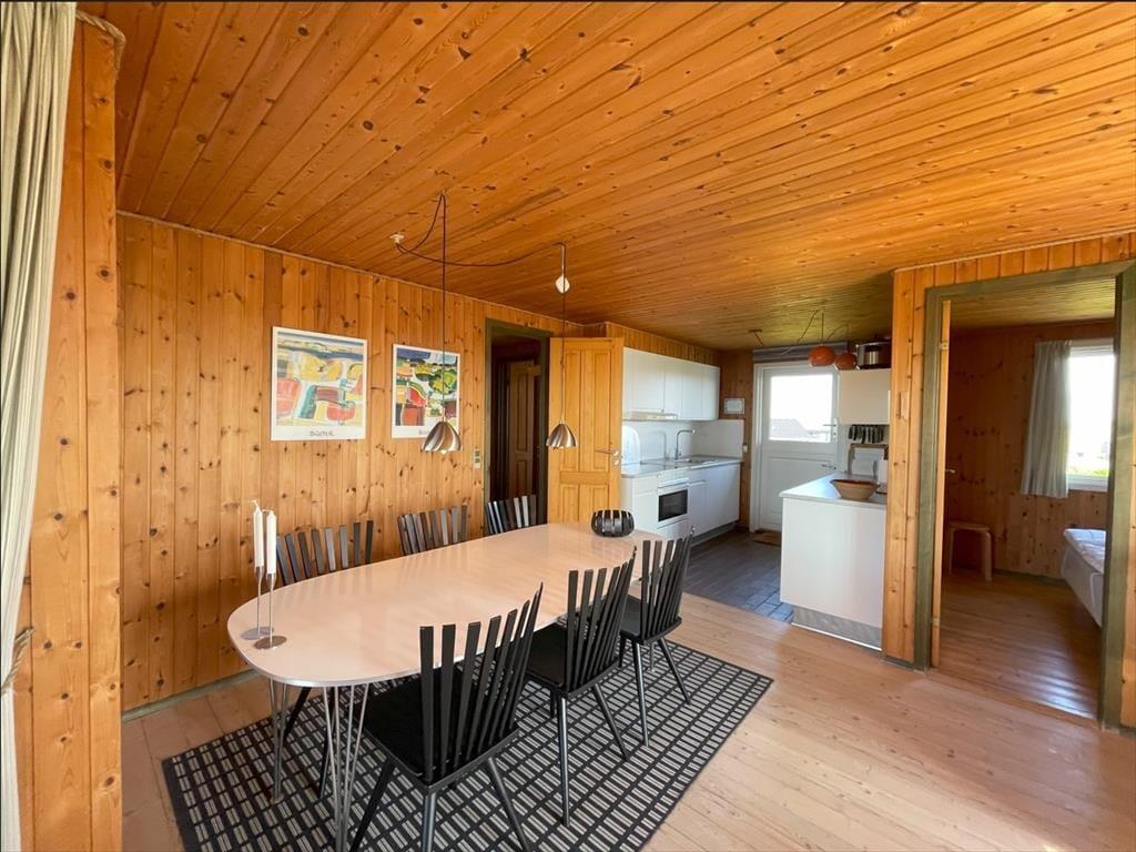 Inde i sommerhuset mærker man straks, at her er tænkt på hygge. Den lyse stue med brændeovn og store vinduespartier indbyder til afslapning – herfra kan I nyde den fantastiske udsigt over området, mens flammerne knitrer i pejsen. Stuen ligger i åben forbindelse med køkkenet, så familien kan samles om madlavningen, mens samtalen flyder frit. De tre soveværelser giver plads til både familie og venner, og efter en frisk gåtur på stranden kan I varme jer i saunaen lige ved siden af badeværelset. Vi synes, at huset emmer af klassisk dansk sommerhustradition – enkelt, ægte og utroligt charmerende.