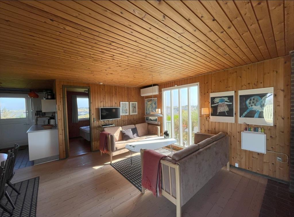 Drømmen om ægte sommerhusstemning og storslået udsigt kan udleves på Riskrogvej 18 C i Haurvig, syd for Hvide Sande. Her ligger sommerhuset højt og fredeligt for enden af en stille vej – uden trafik og med panorama over klitterne mod vest og fjorden mod øst. Vi i ved, at netop kombinationen af ro, natur og klassisk sommerhushygge giver de bedste rammer for en ferie, hvor skuldrene sænkes, og hverdagens travlhed forsvinder.