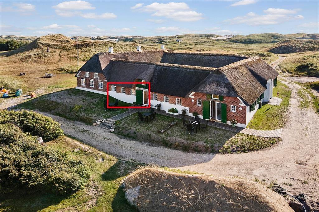 Denne nyindrettede ferielejlighed er det helt rette valg, hvis I drømmer om at holde ferie i stemningsfulde og naturskønne rammer. Lejligheden ligger i en gammel, fredet klitgård, der ogsåhuser et kunstneratelier såvel som tre moderne ferieboliger, og udenom breder Haurvigs åbne klitlandskab sig.