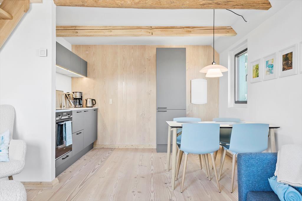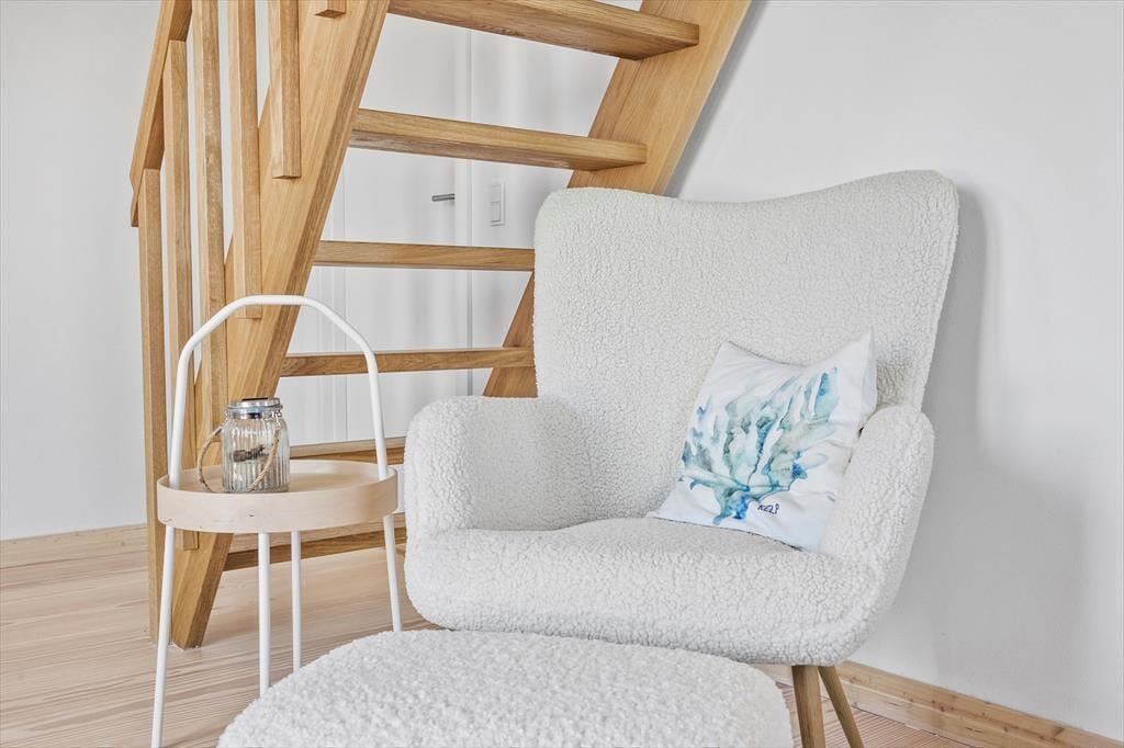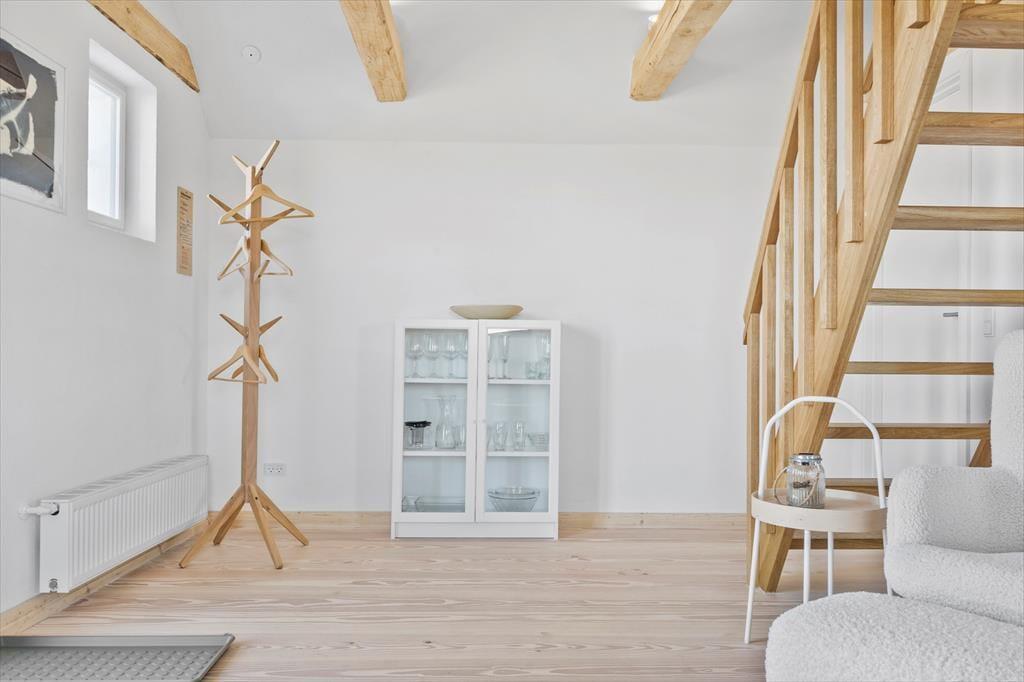 Ferielejligheden, der kan rumme op til 2-4 voksne og en hund ligger i den østvendte længe af Haurvig Strandgaard. Ejendommens historie går helt tilbage til 1850, mens selve lejligheden er fra 2023, og ombygningen er selvfølgelig forestået af en arkitekt, så den lever op til alle fredningskrav. Resultatet er en både flot og funktionel feriebolig med en skøn atmosfære – og med alskens moderne bekvemmeligheder som gulvvarme, fladskærms-tv og god wi-fi-forbindelse. Køkken og stue udgør tilsammen et dejligt opholdsrum, og her finder I blandt andet en sovesofa til to personer. Der er derudover mulighed for at overnatte på den hyggelige hems, og morgenbrusebadet kan foregå på lejlighedens pæne og moderne indrettede badeværelse.