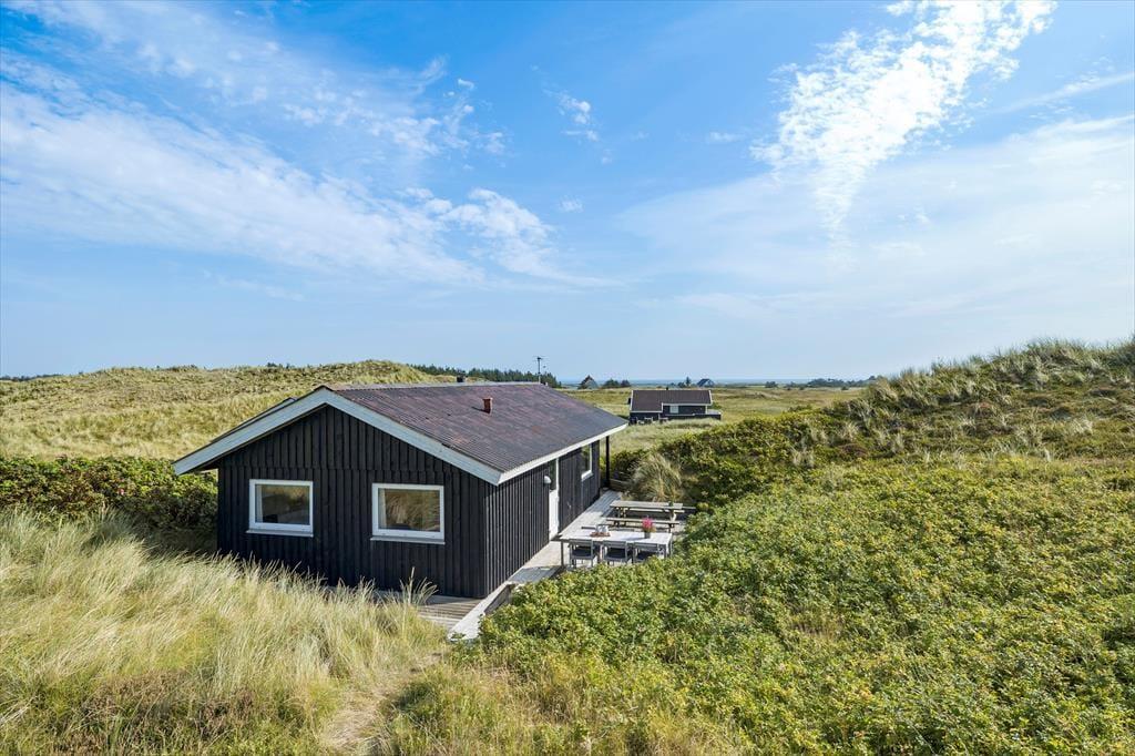 I kommer til at bo i fredelige og helt fantastiske naturomgivelser, når ferien foregår i dette skønne sommerhus på Holmsland Klit. Det ligger i en lille bebyggelse med kun seks huse – lige ud til den vidtstrakte klithede og knap 500 meter fra Vesterhavet.