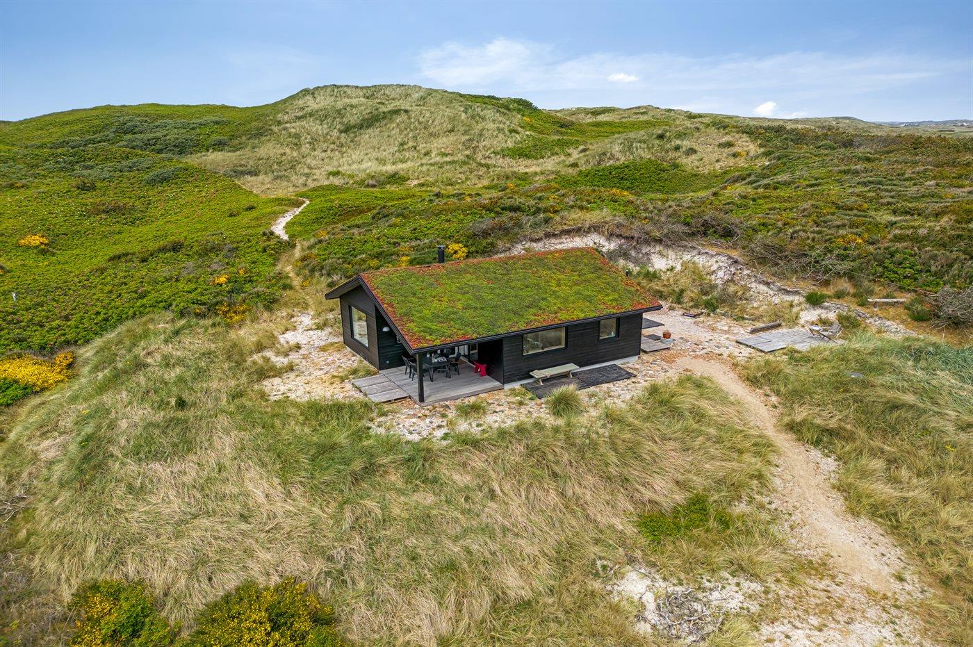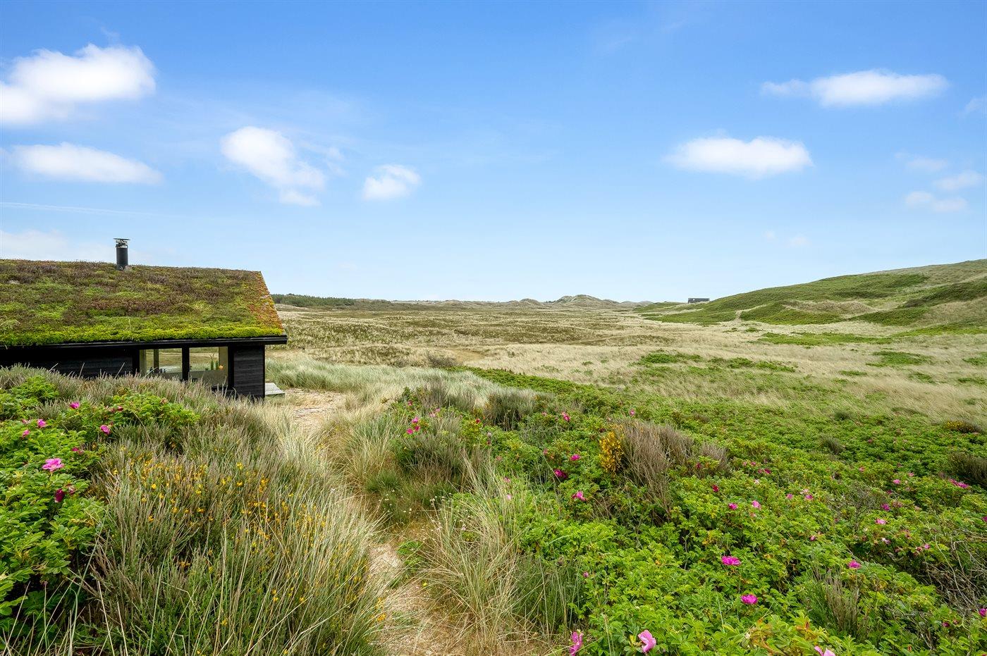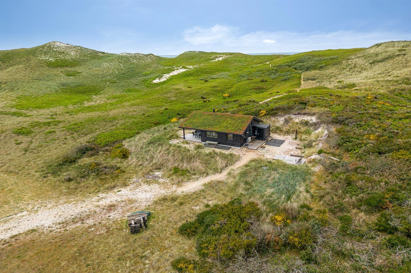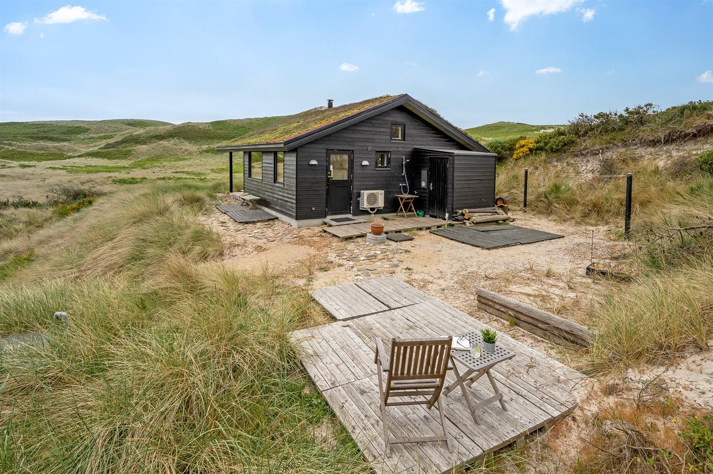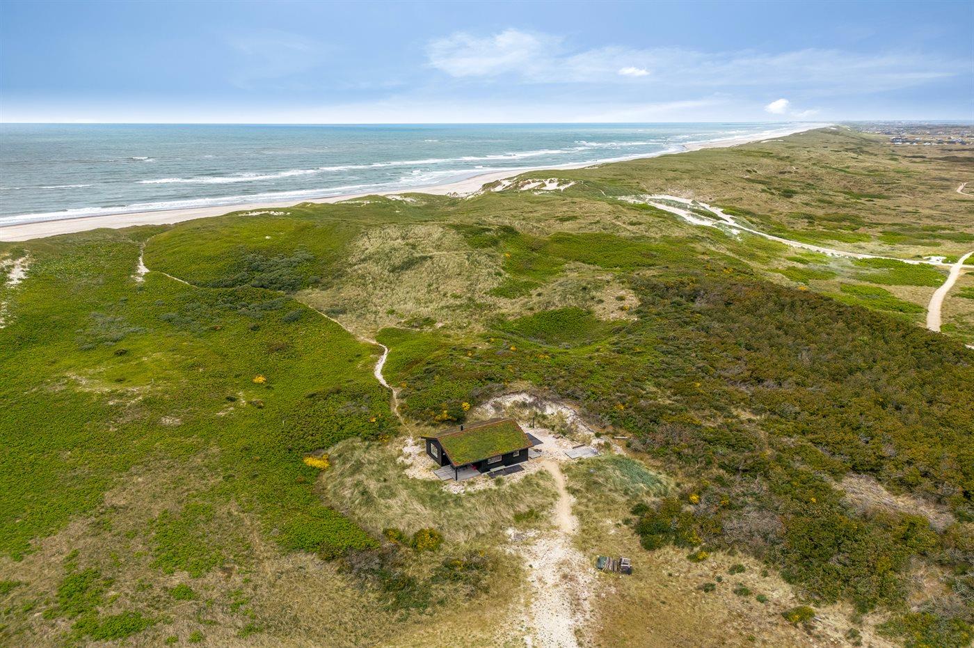 Midt i naturen, lige bag klitterne og i første række til Vesterhavet byder dette skønne sommerhus, nyopført i 2020, jer velkommen til en skøn ferie. Sommerhuset tilbyder det ultimative privatliv, da det ligger helt for sig selv med en unik placering i det fredede klitlandskab. Her kan I nyde naturen på tæt hold og mærke de åbne vider og stilheden, og fra klitterne omkring huset kan I nyde den vidunderlige udsigt til både hav og fjord.