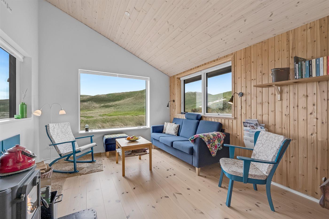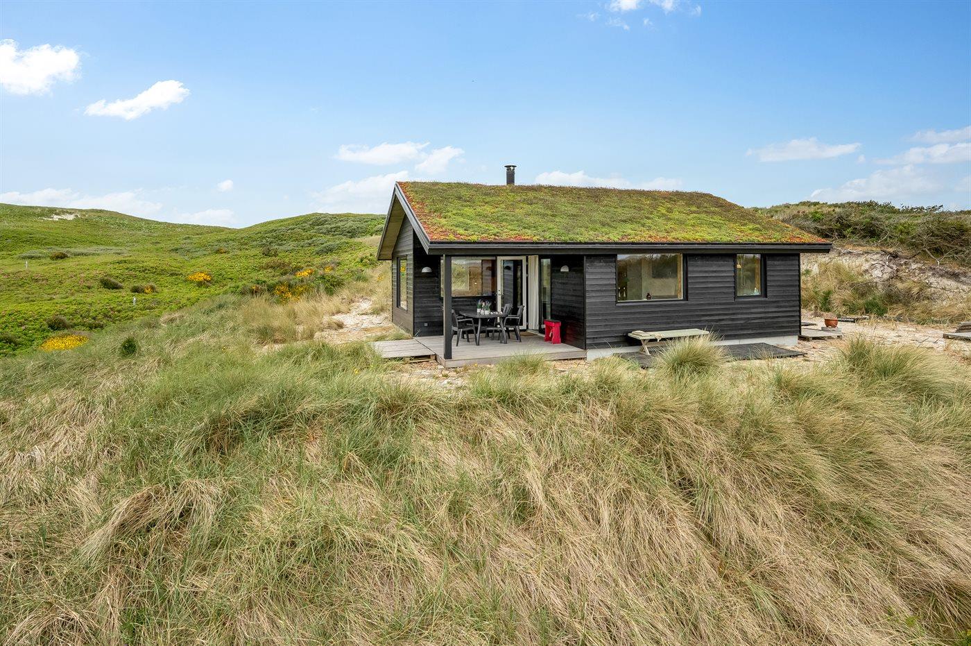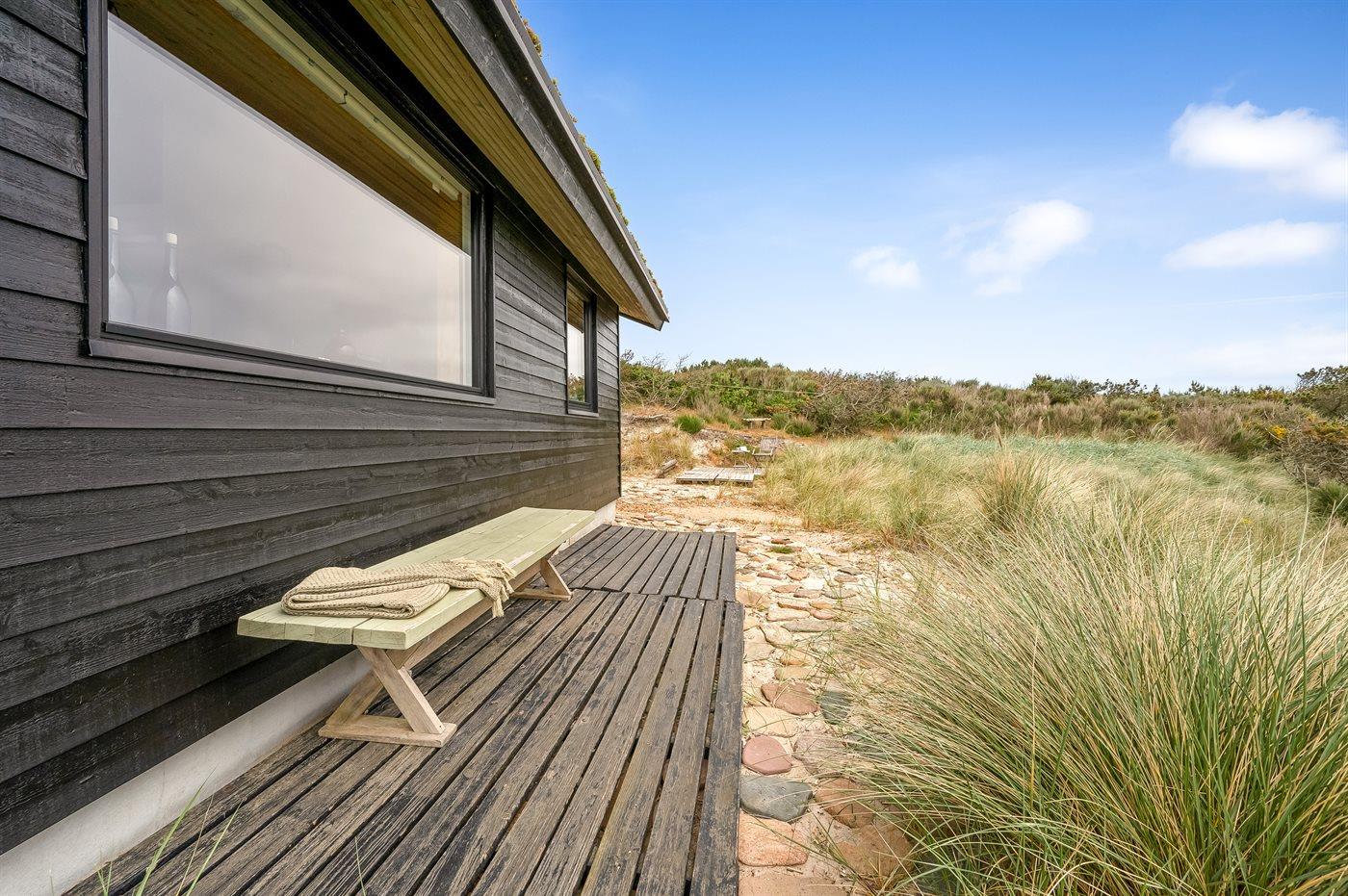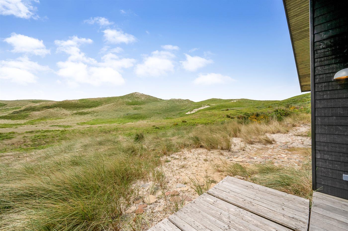 Midt i naturen, lige bag klitterne og i første række til Vesterhavet byder dette skønne sommerhus, nyopført i 2020, jer velkommen til en skøn ferie. Sommerhuset tilbyder det ultimative privatliv, da det ligger helt for sig selv med en unik placering i det fredede klitlandskab. Her kan I nyde naturen på tæt hold og mærke de åbne vider og stilheden, og fra klitterne omkring huset kan I nyde den vidunderlige udsigt til både hav og fjord.