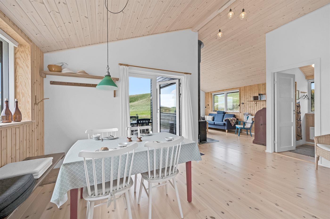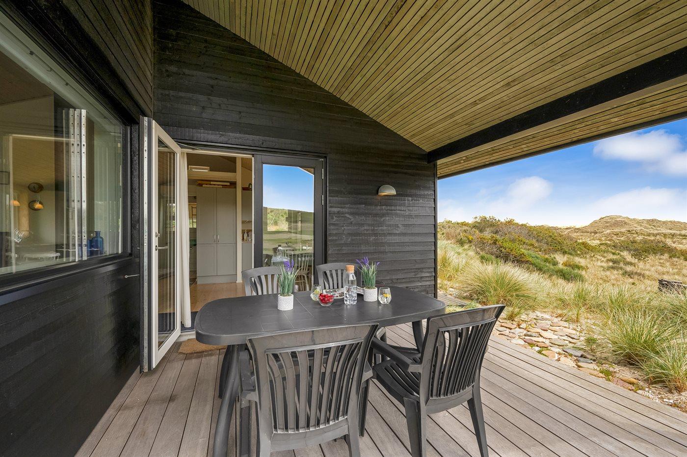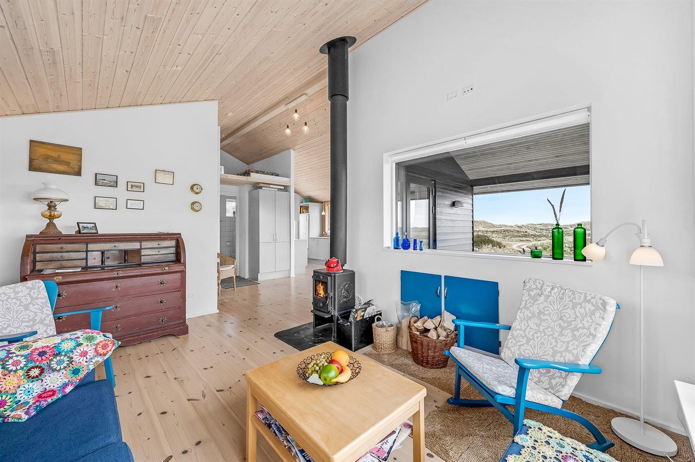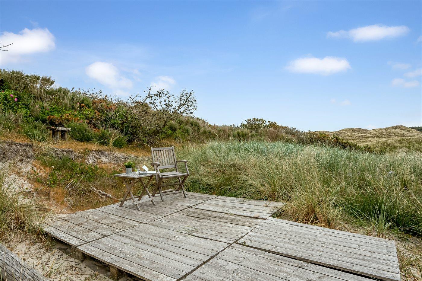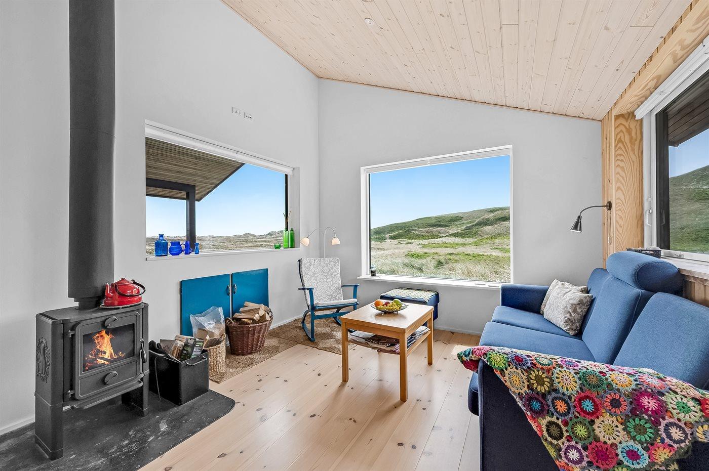Midt i naturen, lige bag klitterne og i første række til Vesterhavet byder dette skønne sommerhus, nyopført i 2020, jer velkommen til en skøn ferie. Sommerhuset tilbyder det ultimative privatliv, da det ligger helt for sig selv med en unik placering i det fredede klitlandskab. Her kan I nyde naturen på tæt hold og mærke de åbne vider og stilheden, og fra klitterne omkring huset kan I nyde den vidunderlige udsigt til både hav og fjord.