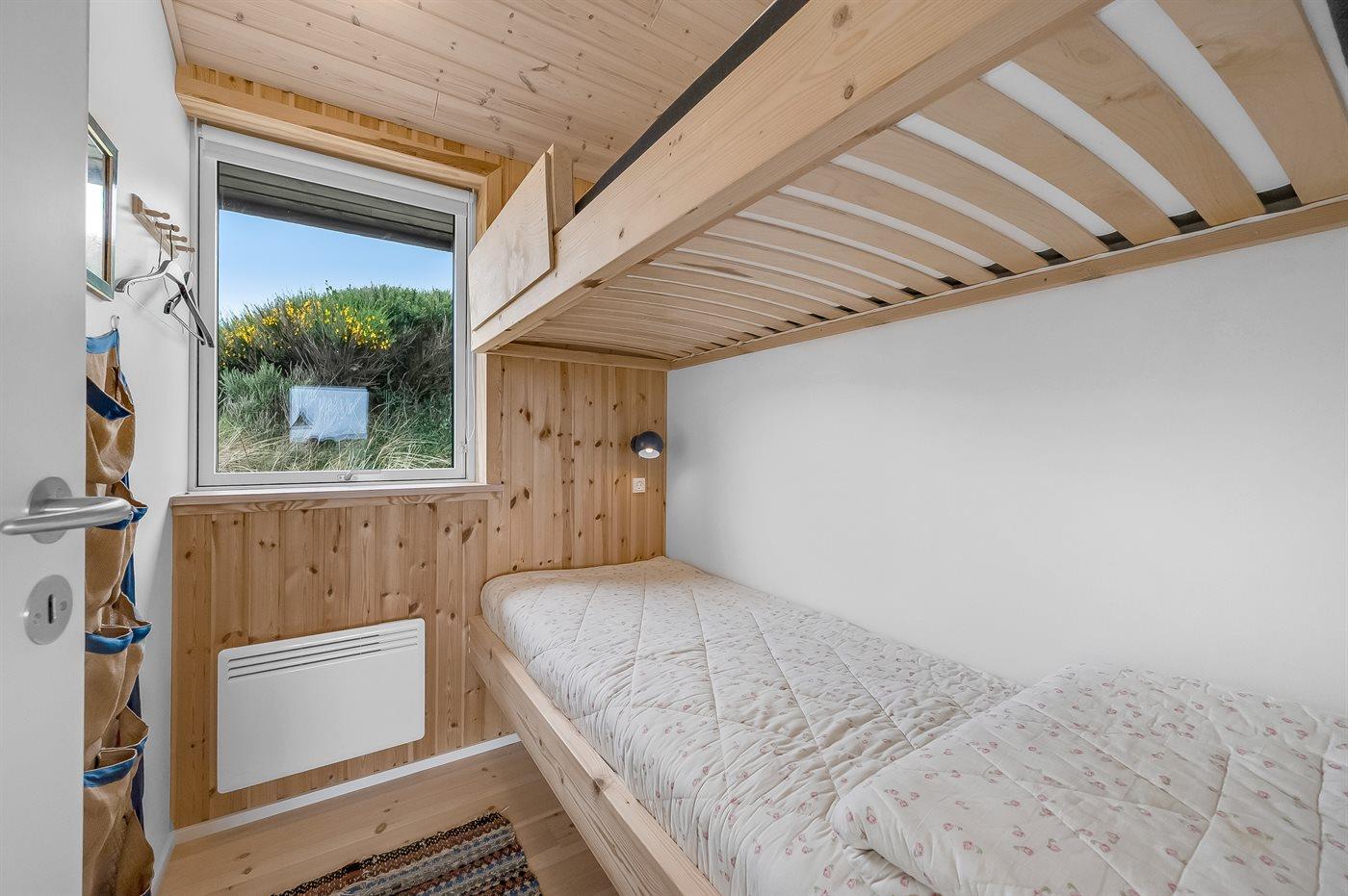 Der er i alt 2 soveværelser. Sovepladserne fordeler sig på: 2 sovepladser i dobbeltseng. 2 sovepladser i køjeseng.