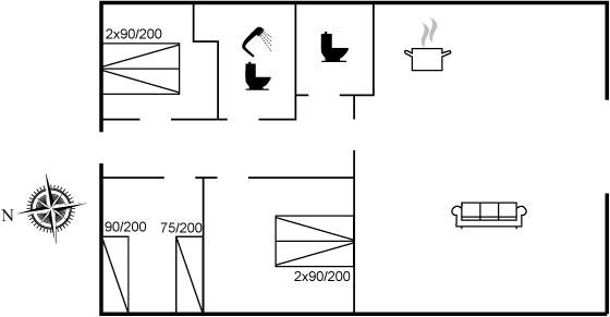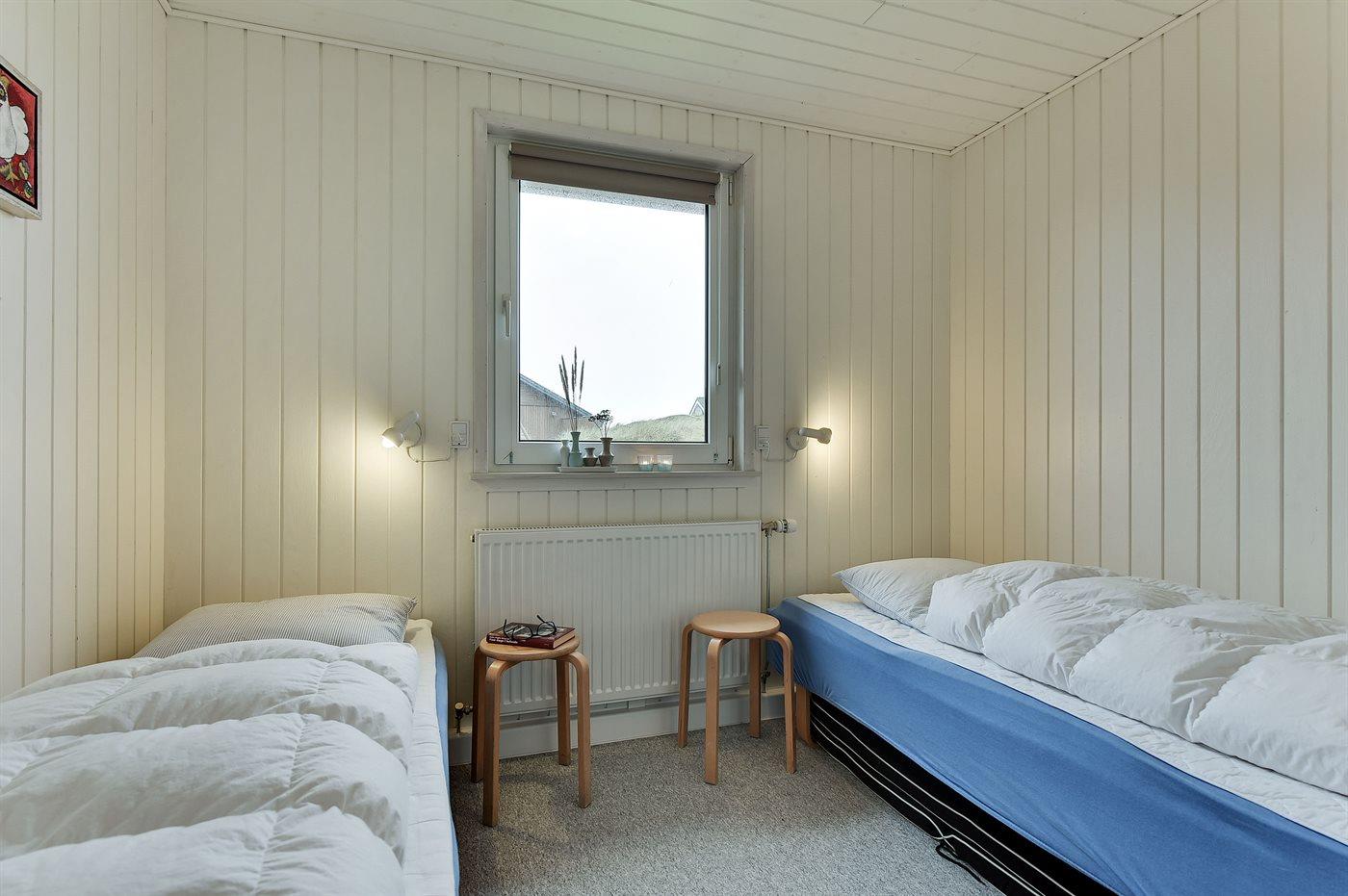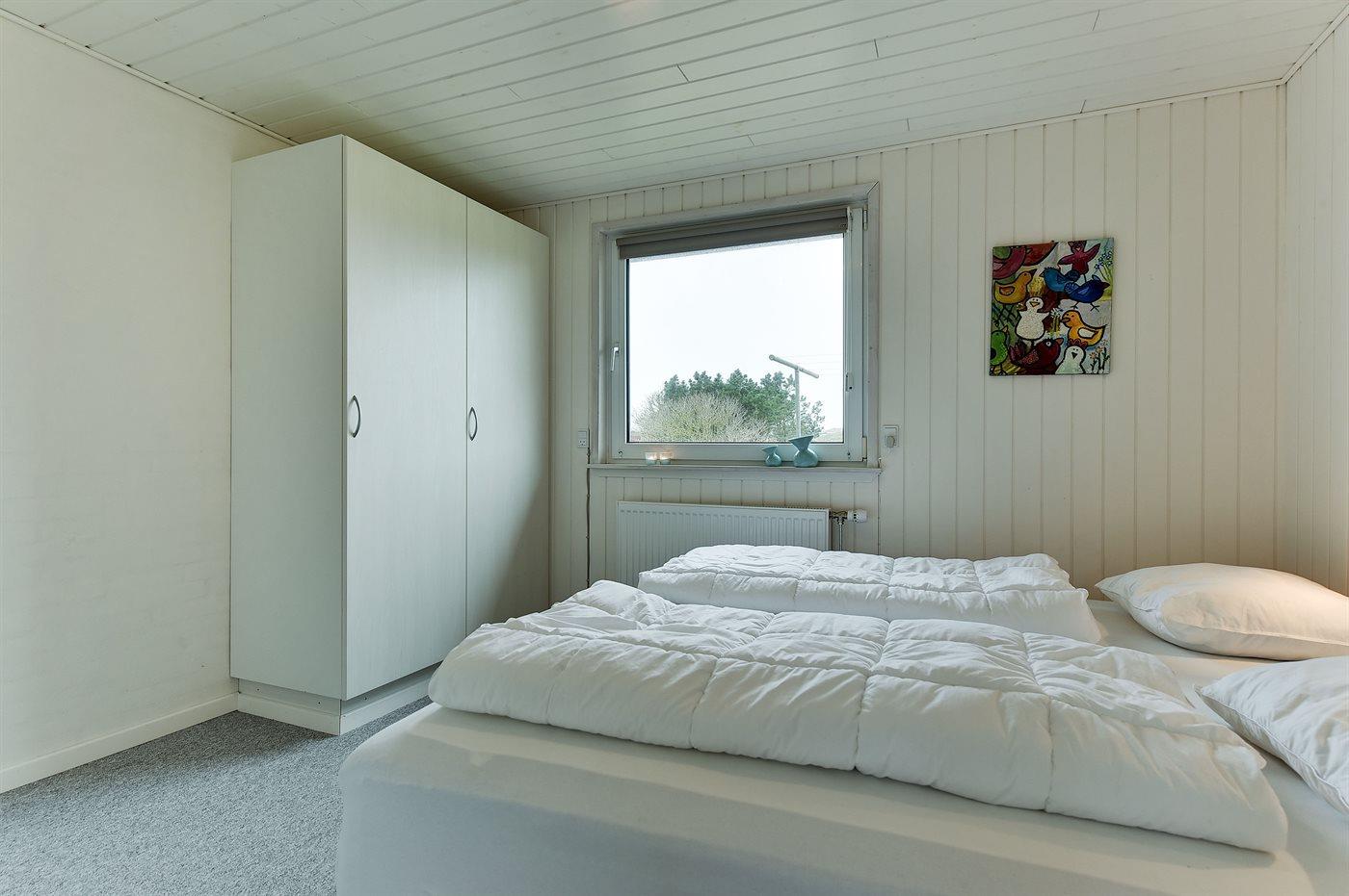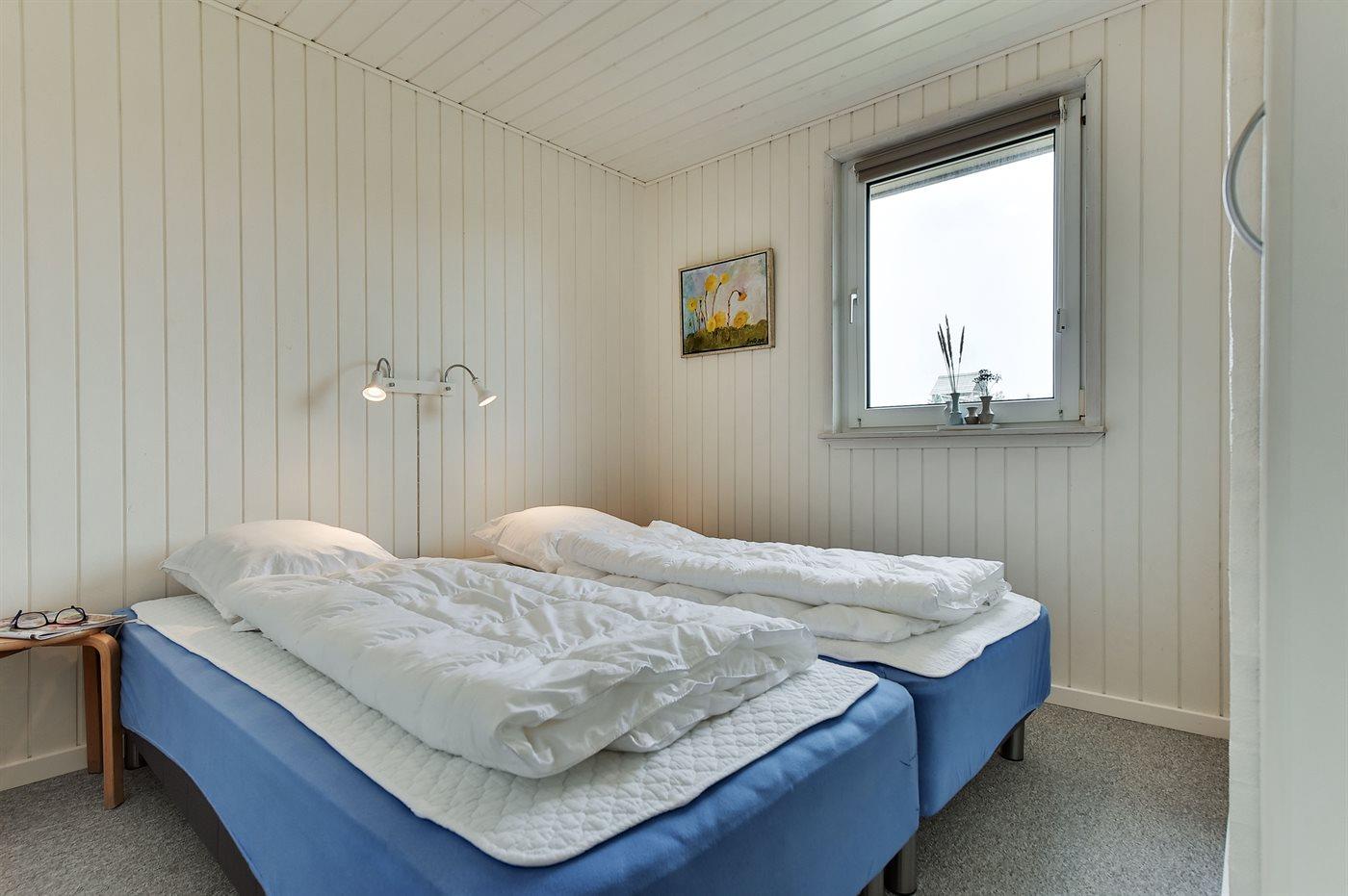 Der er i alt 3 soveværelser. Sovepladserne fordeler sig på: 4 sovepladser i dobbeltsenge. 2 sovepladser i enkeltsenge.