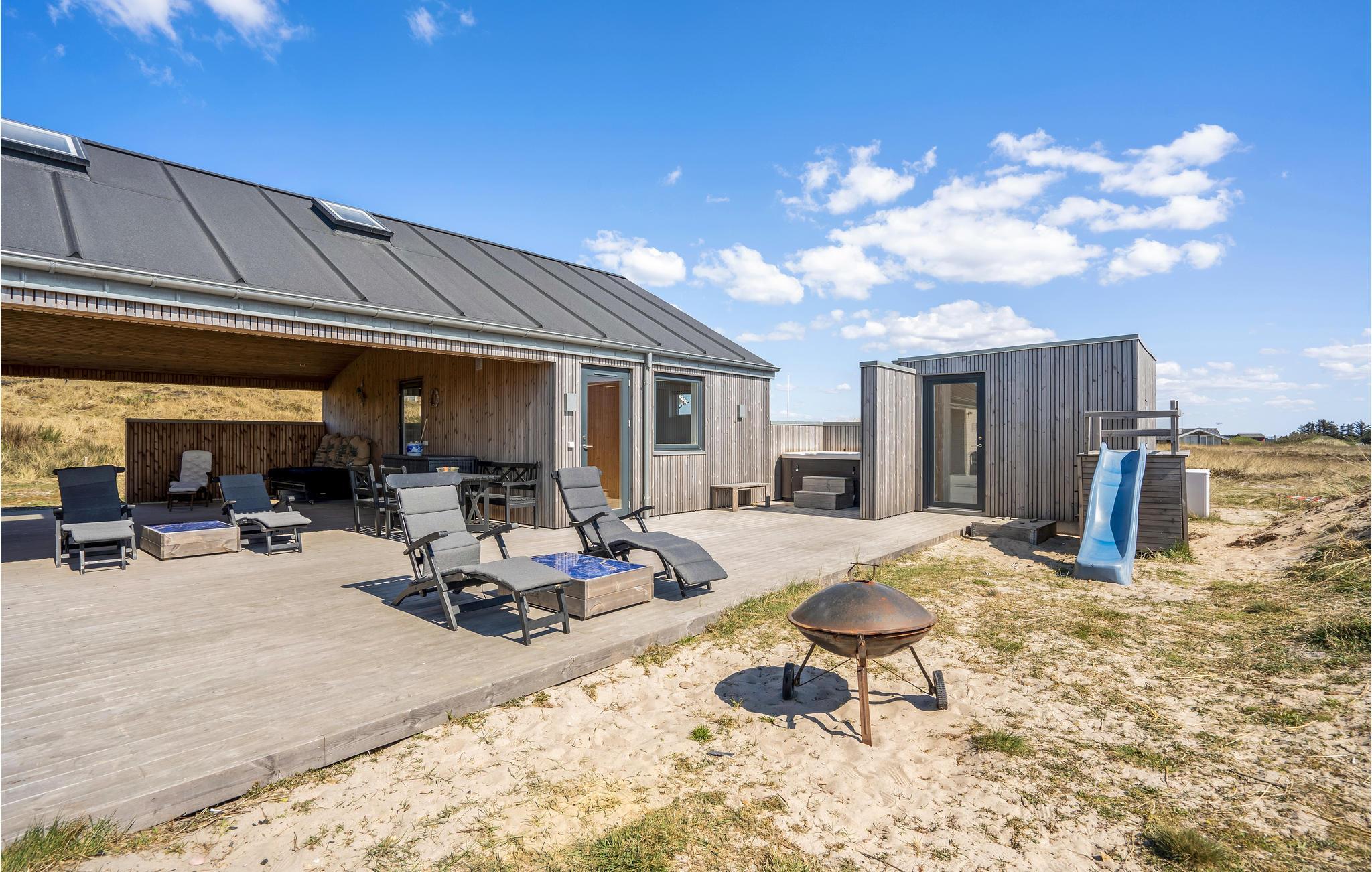 Hyggeligt feriehus i Haurvig med udespa, sauna og skøn udsigt over klitterne nær Vesterhavet.