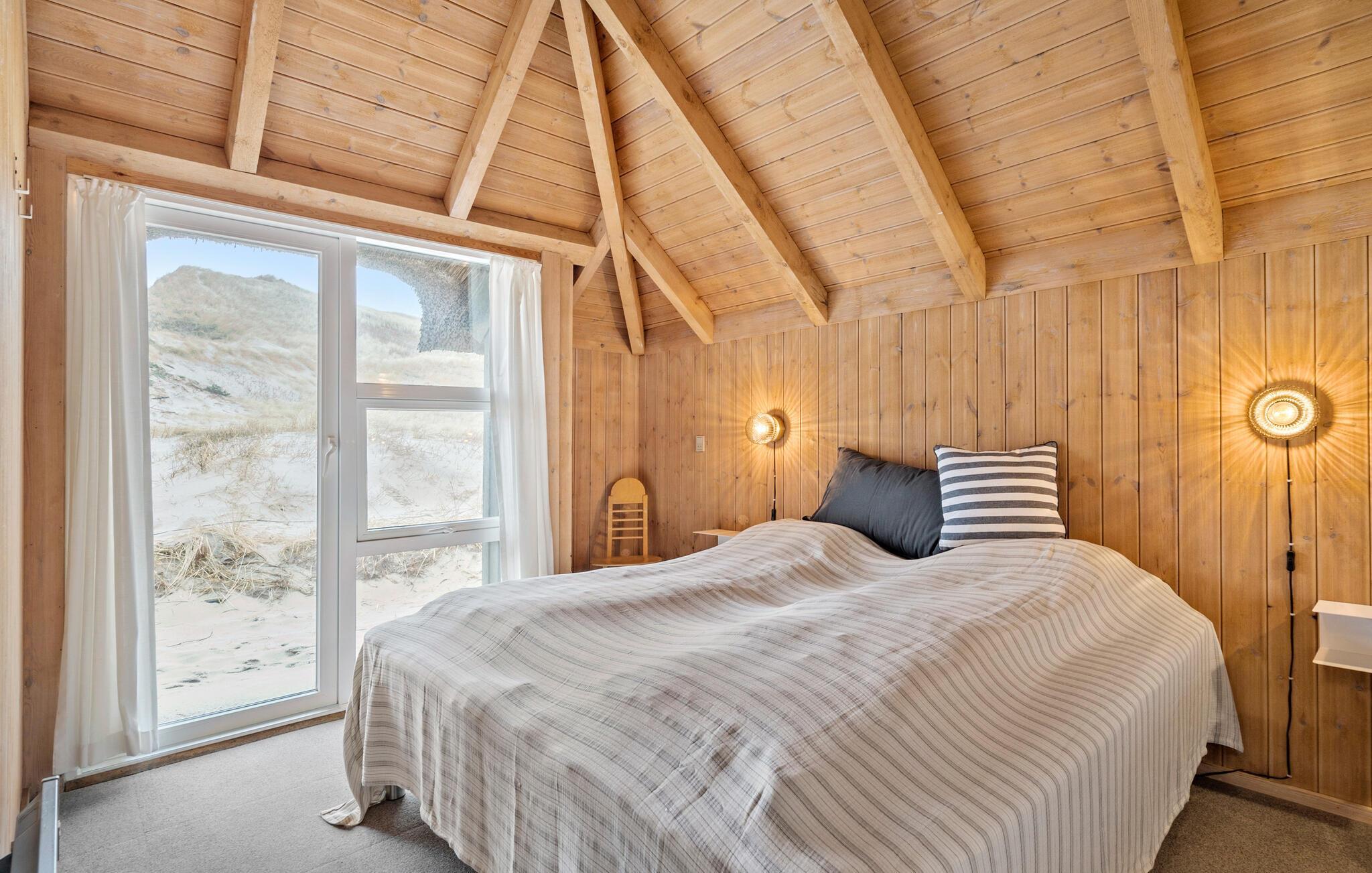 Velkommen til dette sommerhus i Haurvig, som tilbyder jer en afslappende ferie i den maleriske natur på den jyske vestkyst. Den rolige beliggenhed, omgivet af klitter og i kort afstand til stranden, lægger op til en ferie, hvor alle kan komme helt ned i tempo. Huset rummer en stilfuld, åben opholdsstue med højt til loftet i træ og masser af naturligt lys. Det hyggelige sofaområde med brændeovn har en varm atmosfære, og i det tilstødende køkken har I alle muligheder for at tilberede måltider sammen. Nyd retterme ved spisebordet, hvor I kan blive siddende efter maden og hygge jer med et brætspil. I kan også se frem til poolområdet med store glasfronter, hvor I kan bade i al slags vejr. Få varmen i saunaen efter en lang frisk tur ved vandet. Fire af husets sovepladser er placeret på en hems, som er velegnet til børn.