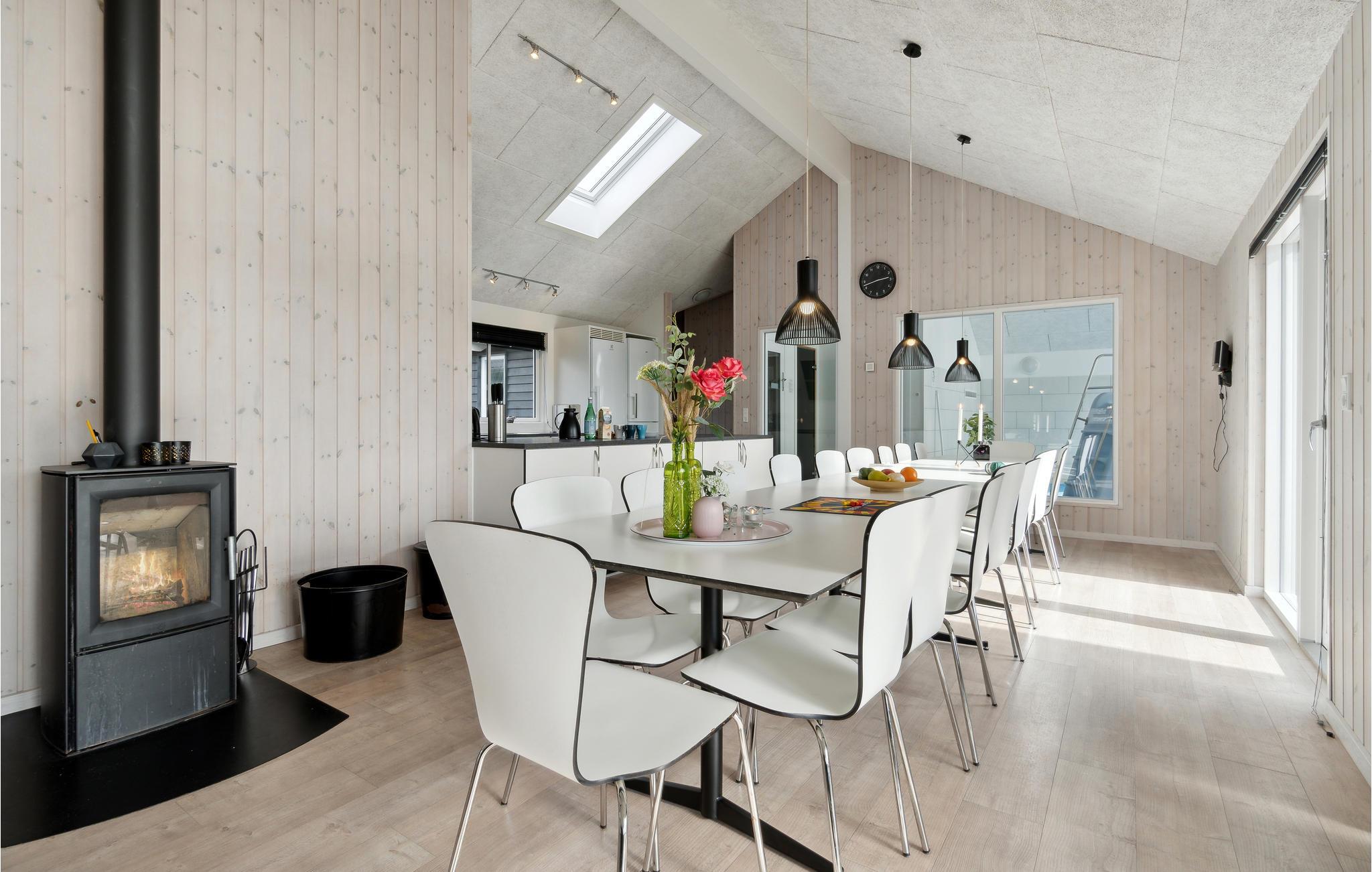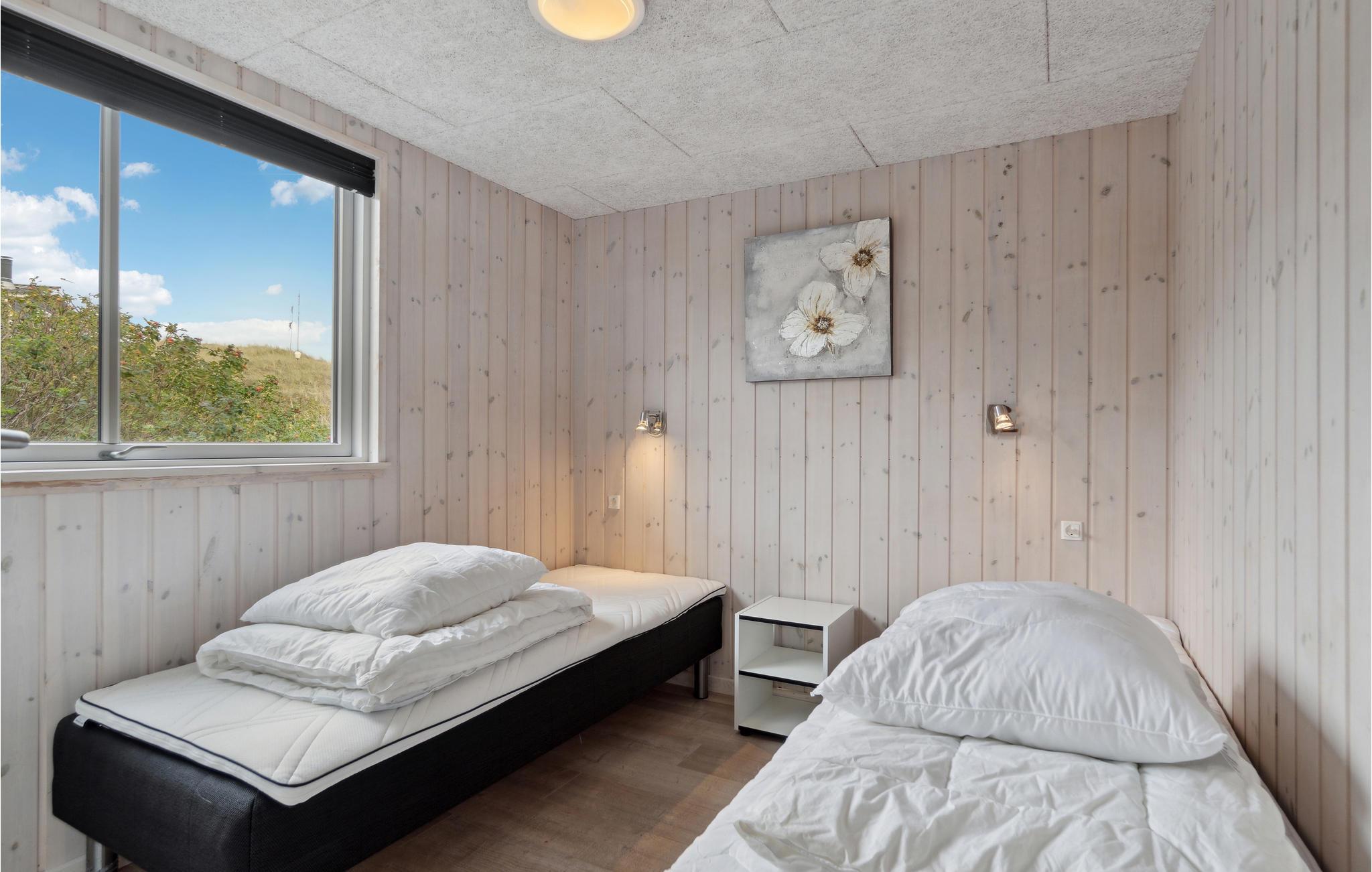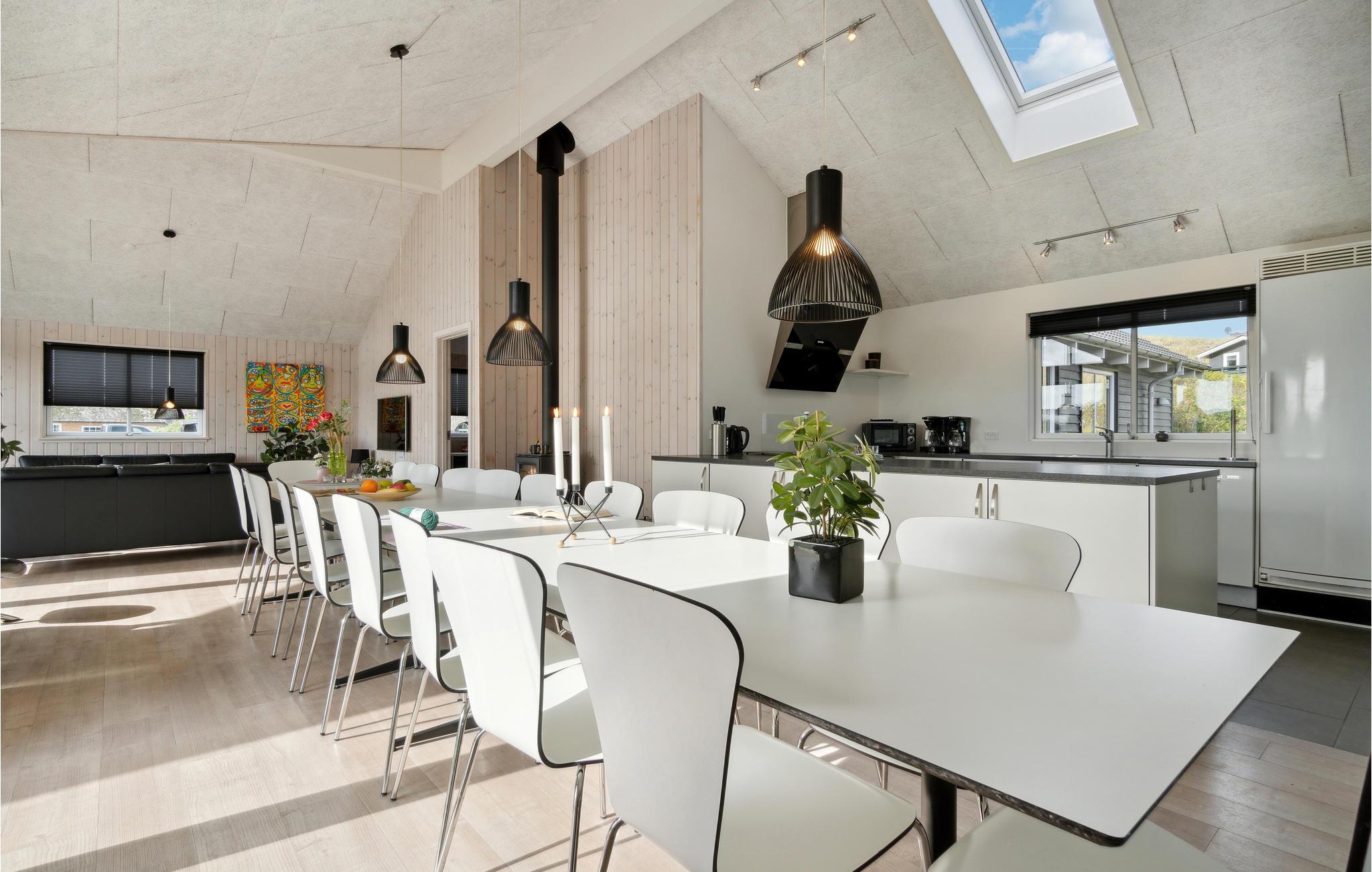 I Bjerregårds dejlige, rolige natur og tæt ved Vesterhavets strande, ligger dette pragtfulde poolhus, der med sine mange aktivitetsmuligheder er den perfekte ramme for en succesfuld ferie året rundt. Huset byder på al tænkelig komfort og er bygget op omkring to soveafdelinger med hvert sit badeværelse, så det er meget velegnet til flere familier, som ønsker at holde ferie sammen. Den store hems med plads til fire personer vil helt sikkert være et hit hos børnene. Huset er udstyret med lydisolerede lofter, hvilket gør det meget behageligt at opholde sig Der er lagt stor vægt på luksus - her tænkes specielt på den imponerende poolafdeling, som indeholder stor pool med vandrutsjebane og et dejligt 4-6 personers spabad samt en stor sauna. I det store aktivitetsrum kan I spille både billard/bordtennis, dart, bordfodbold, Playstation3 og Nintendo Wii. I baren er der rig mulighed for at mikse spændende drinks, eller nyde en kold øl eller sodavand. Køkkenet er særdeles veludstyret med to komfurer og to opvaskemaskiner samt to køle-/fryseskabe, så der uden problemer kan være mange kokke og køkkenskrivere om den fælles madlavning. Den danske sommer kan nydes på den delvist overdækkede terrasse, mens børnene gynger og leger i sandkassen.