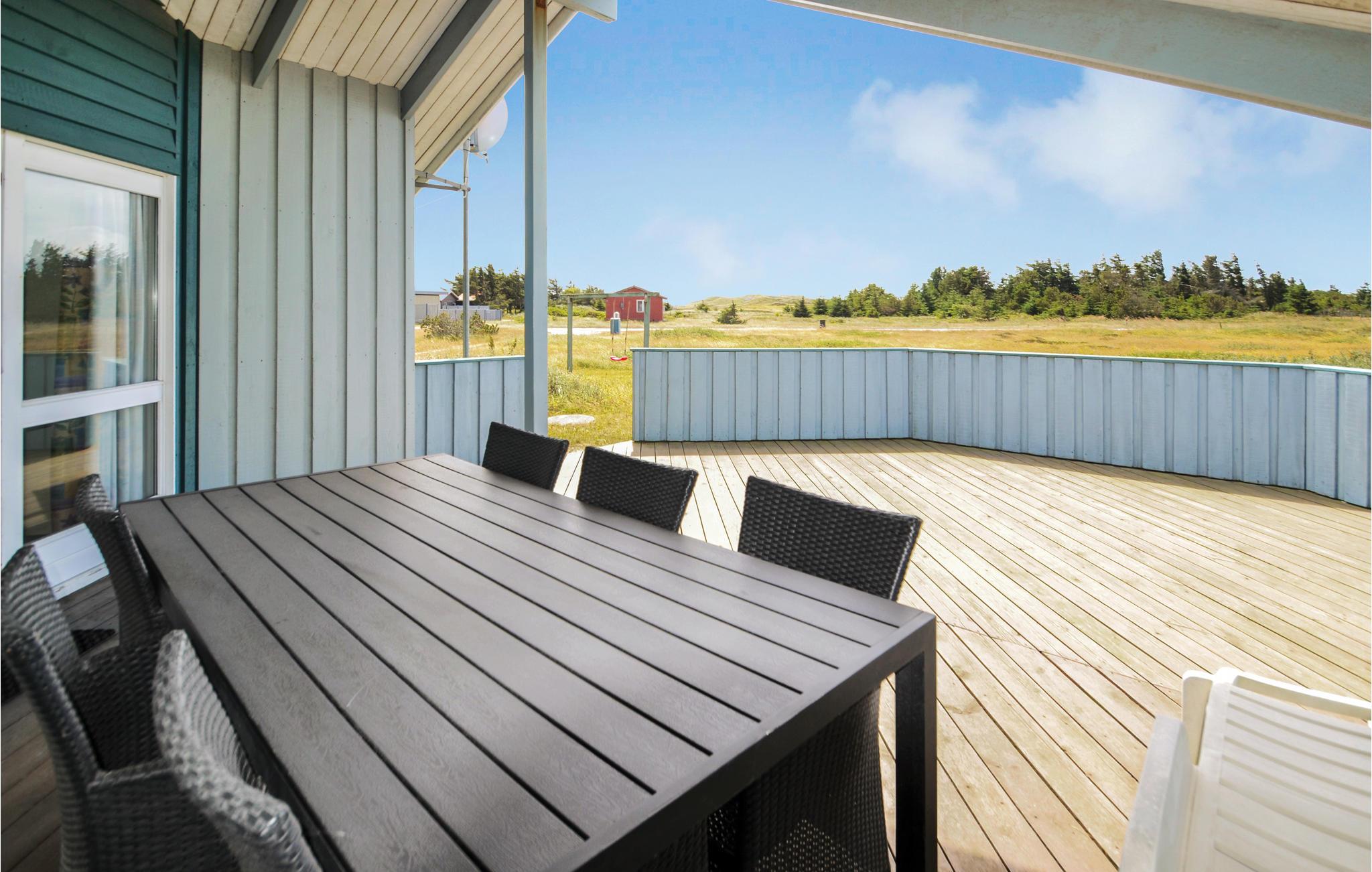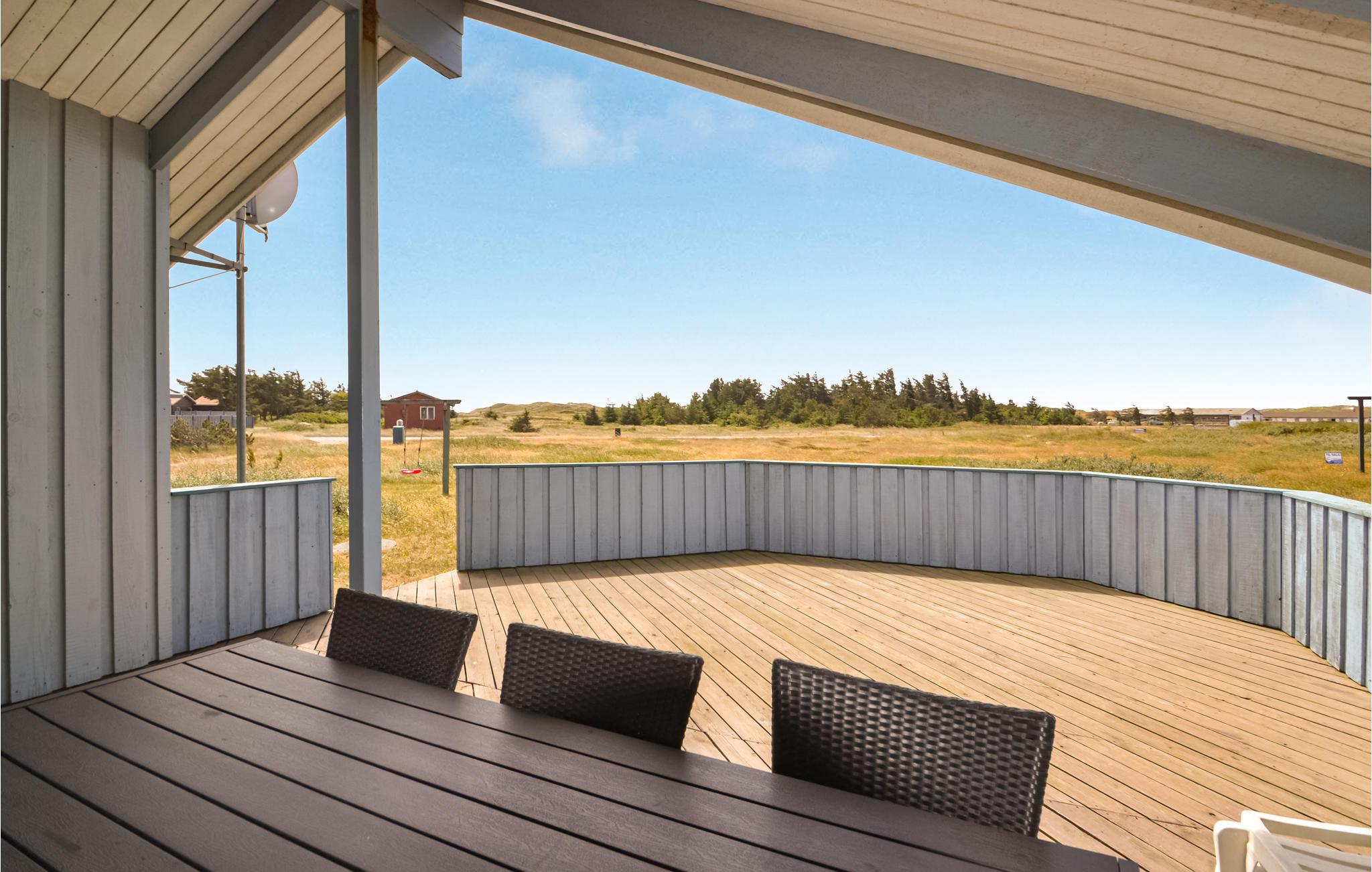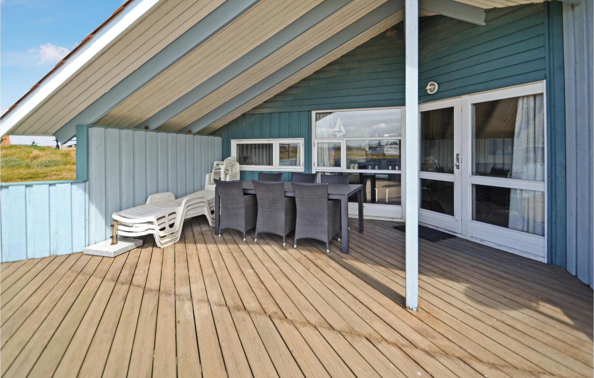 Velholdt og hyggeligt feriehus på naturgrund. Det er lyst og venligt indrettet og har stuen som centrum for feriens hyggelige stunder. Der er to gode terrasser ved huset, hvoraf en stor del af den sydvendte er overdækket. Fra den sydvendte terrasse er der udsigt over mod ridecentret og klitterne og mod øst kan fjorden lige skimtes. Den dejlige strand og de store, fredede klitområder kan nydes til fods eller cykel og efter en dag i den friske vesterhavsluft, kan I afslutte dagen med en tur i spabadet eller saunaen.