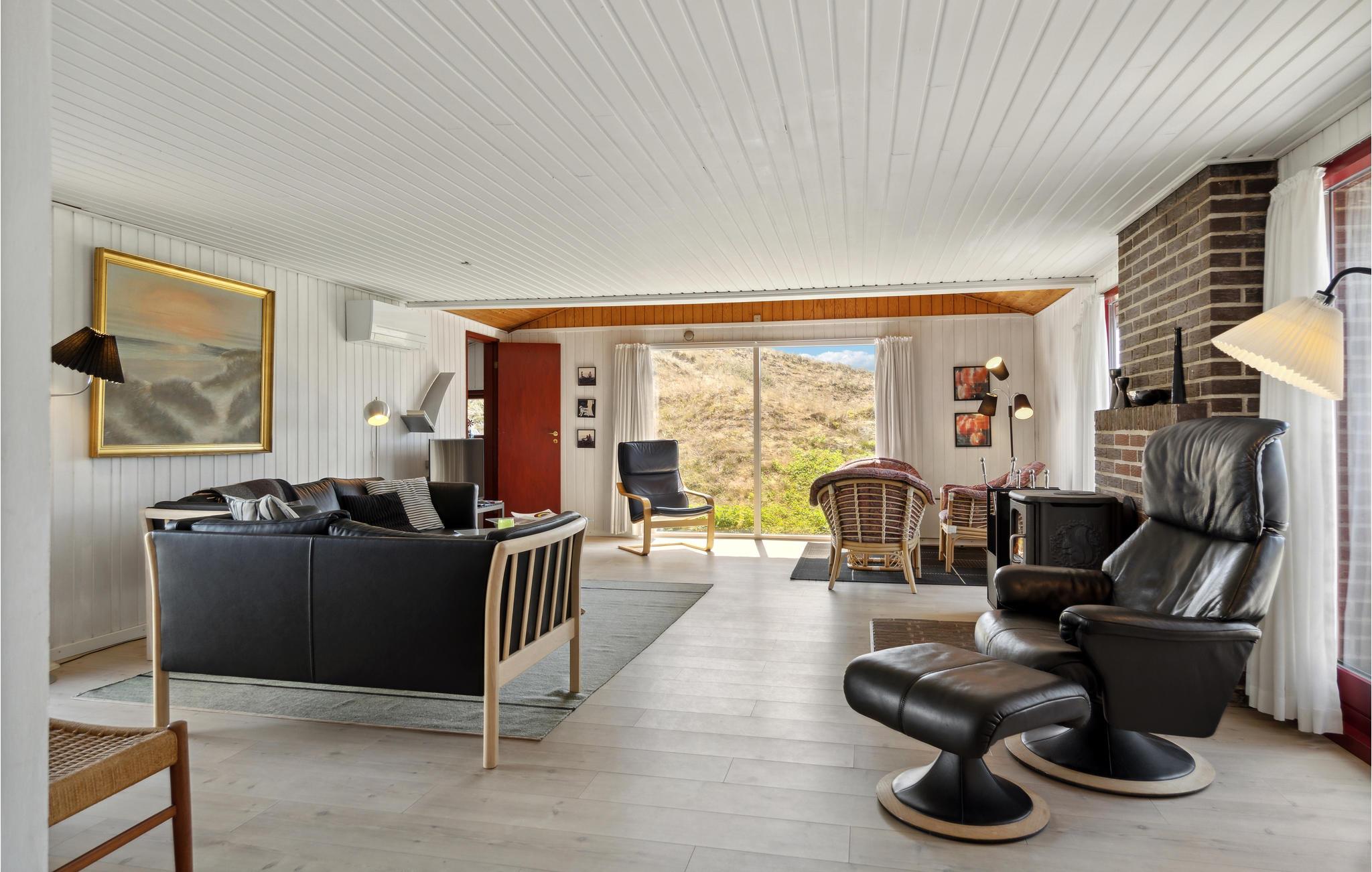 Tag familien under armen og rejs til det vestligste Jylland, hvor I tæt på fjord og hav og får en dejlig base i dette attraktive hus. Indvendigt emmer det af hygge med delvist fritlagte murværk, gode møbler og store vinduespartier, der giver et lækkert lysindfald og en vidunderlig udsigt til klitterne. Tænd op i brændeovnen, hvis vinden bider fra sig, og rund en skøn dag af i sofaen med hver jeres bog eller en god film.