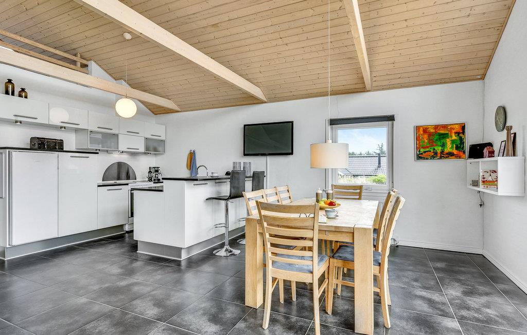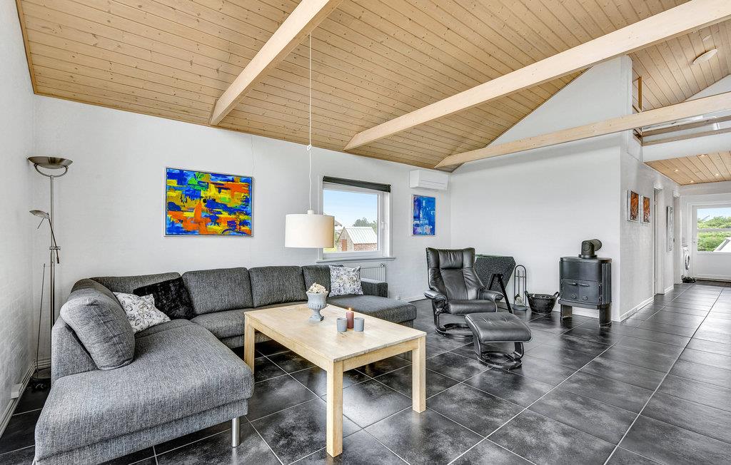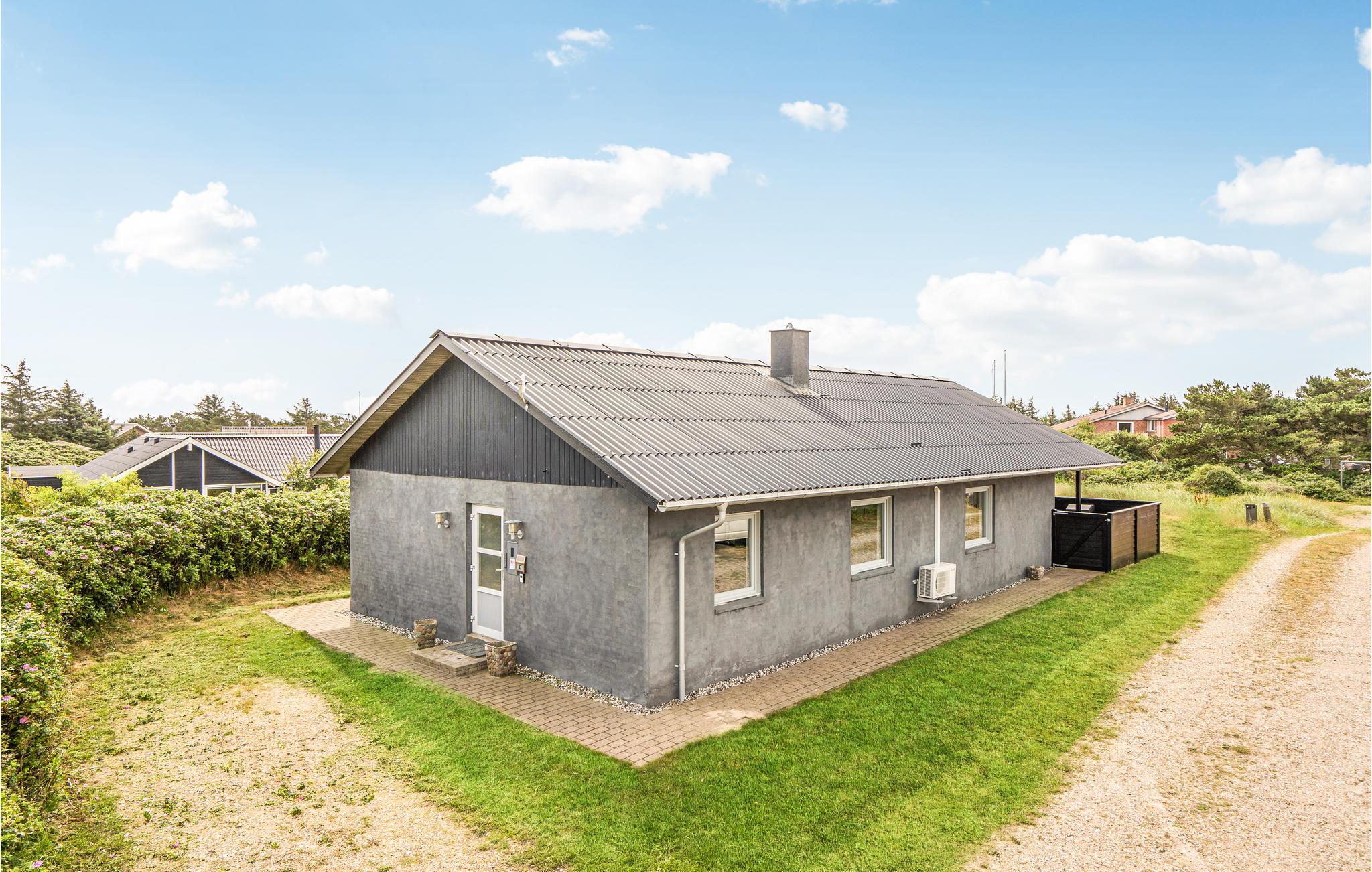 Dette dejlige stenhus, som i 2012 er blevet total renoveret, så det fremstår som nyt både ude og inde, ligger på en stor, kuperet klit- og naturgrund ikke langt fra Ringkøbing Fjord. Overalt er huset lyst og venligt indrettet med kvalitetsmaterialer. Der er træ- og klinkegulve i hele huset. I stuen står et kombineret fodbold, billard og airhockeybord, som 'børn' i alle aldre kan fornøje sig med. Der er tre dejlige soveværelser og over soveværelserne findes en stor åben hems med to sovepladser.