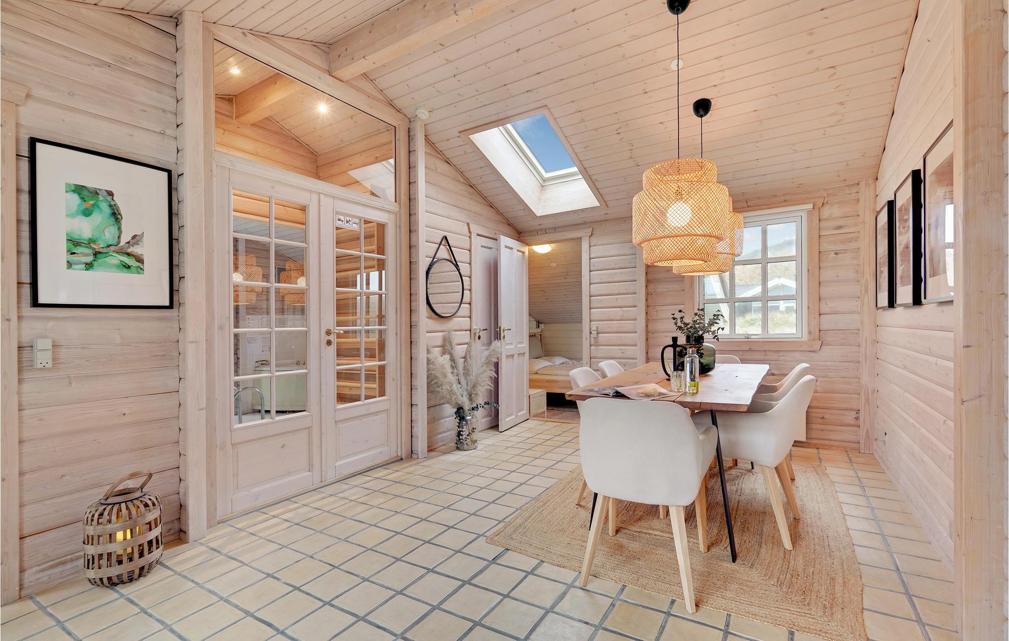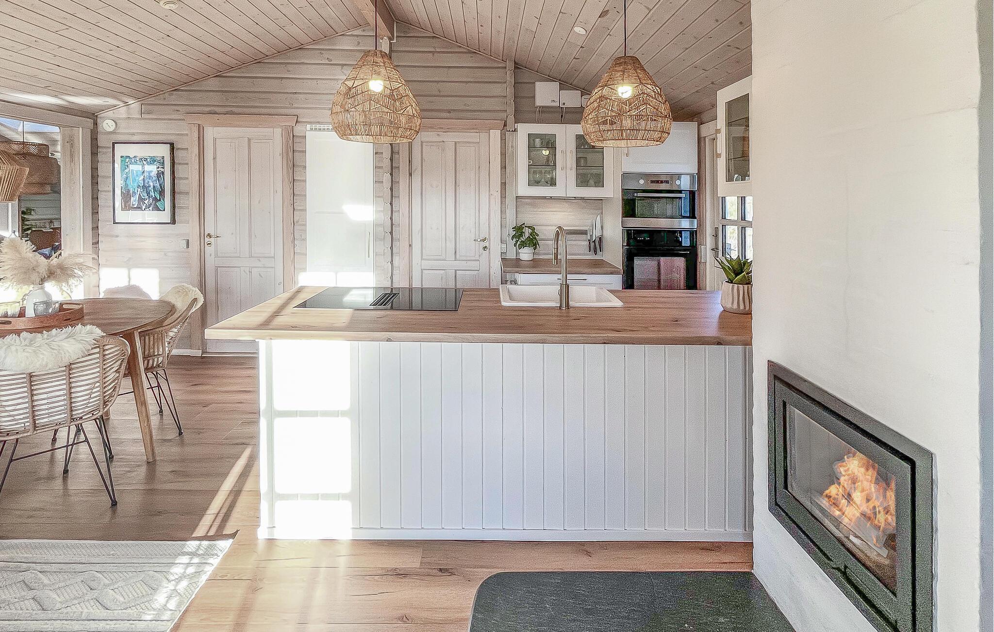 Træd ind i et velholdt og smagfuldt indrettet sommerhus med alle moderne bekvemmeligheder. Mange timers hygge venter i den dejlige, lyse stue med tv og brændeovn. Stuen er i åben forbindelse med det veludstyrede køkken, men med separat spisestue. Fire dejlige soveværelser med enten dobbeltsenge eller to enkeltsenge. Det ene af husets to badeværelser er placeret i umiddelbar nærhed af soveværelserne, og det andet ligger i forbindelse med poolafdelingen, begge med gulvvarme. I forbindelse med carporten er der desuden et rum til opbevaring.