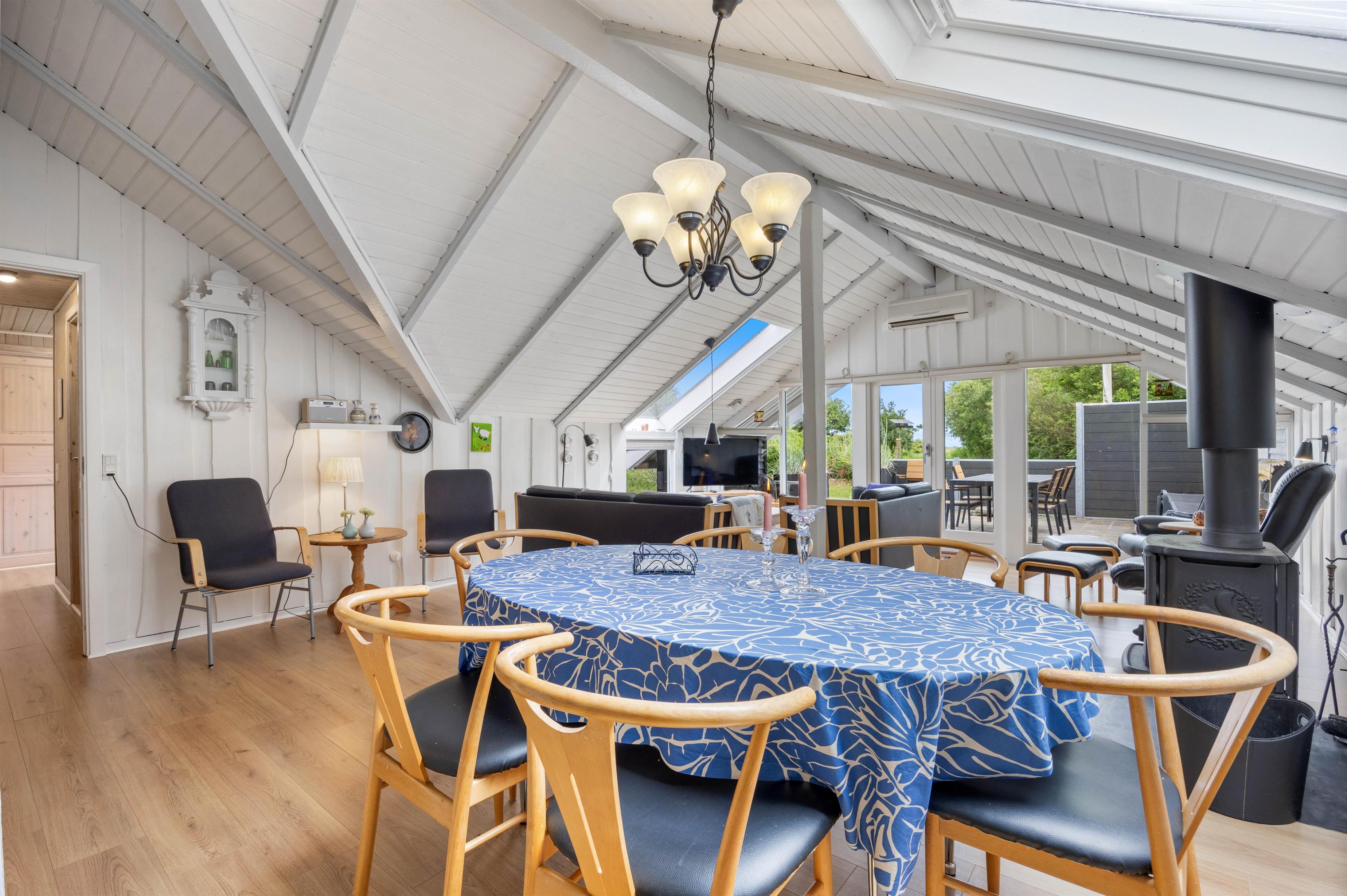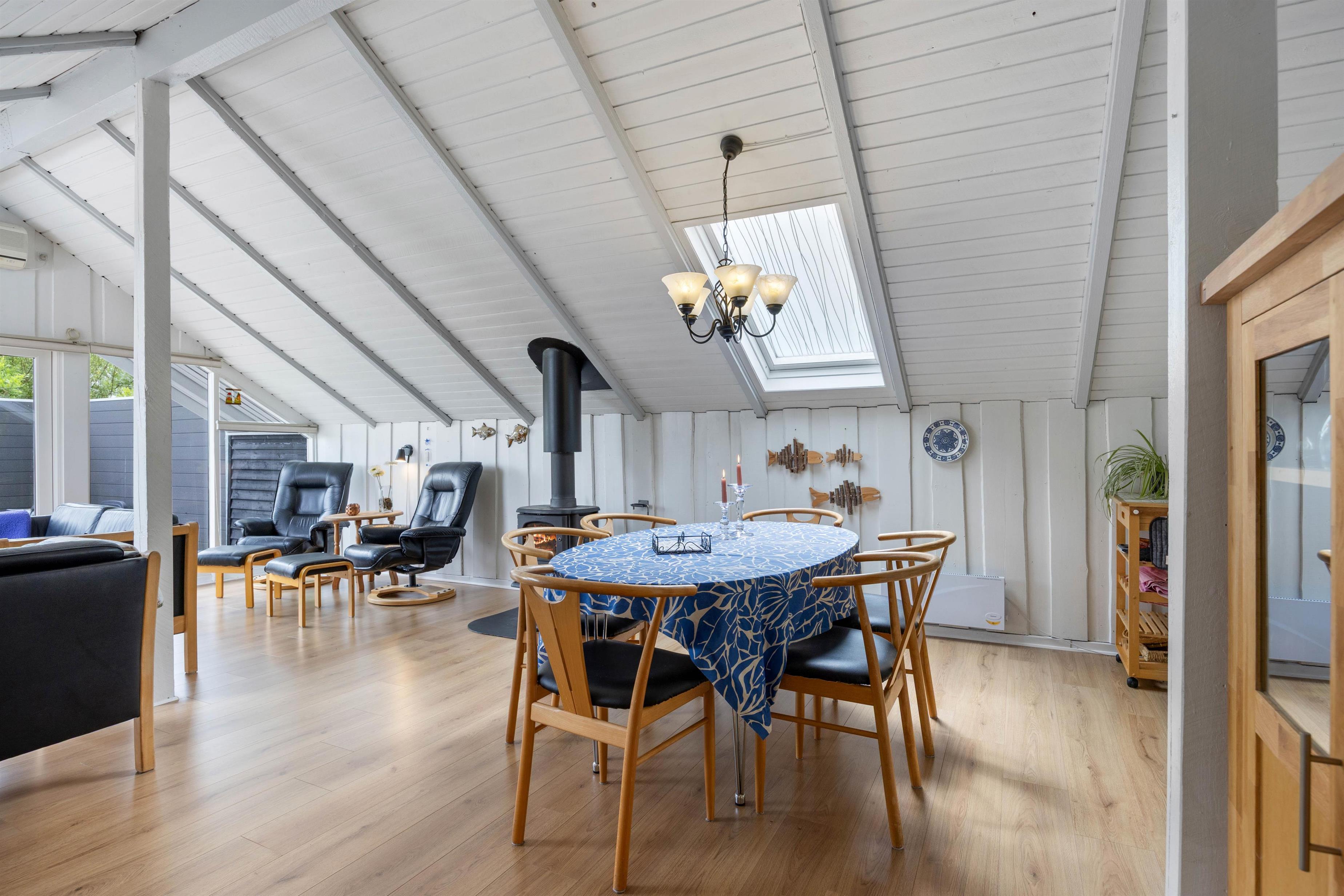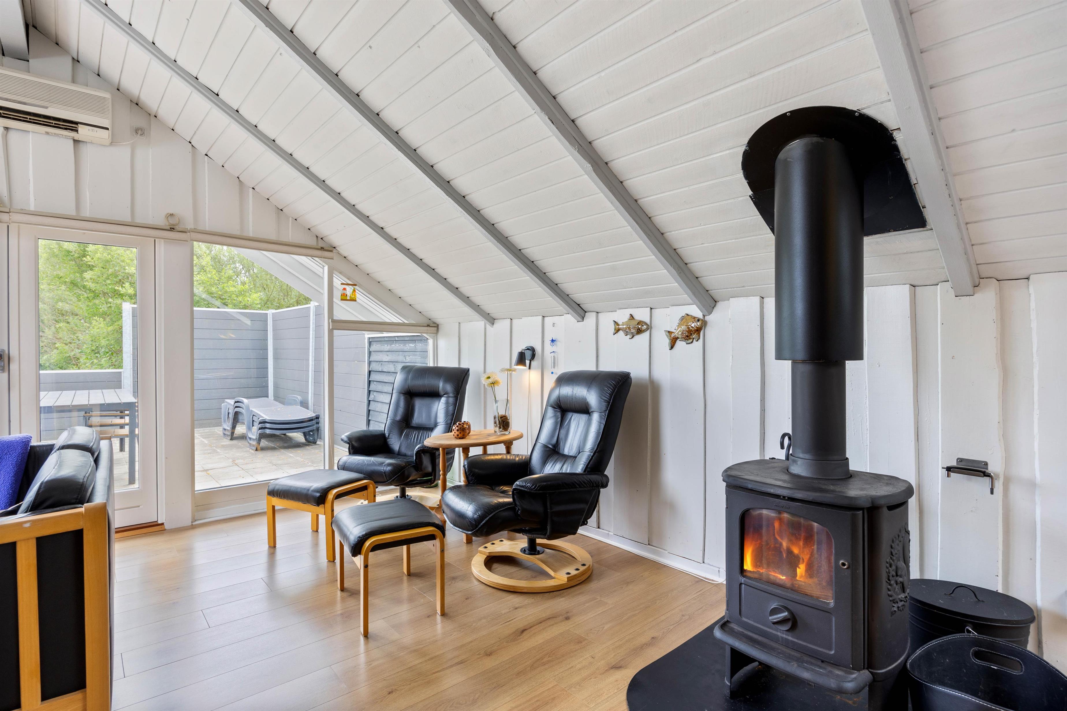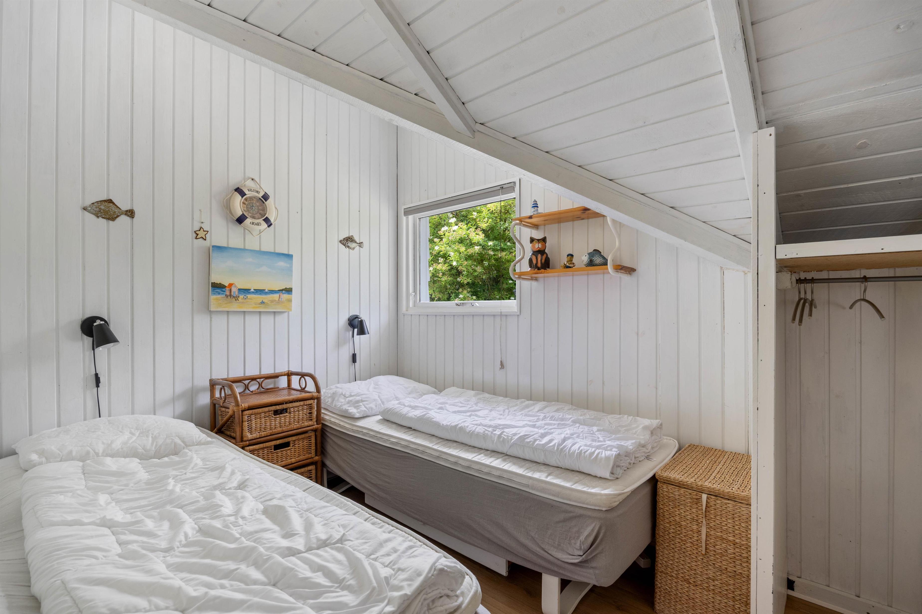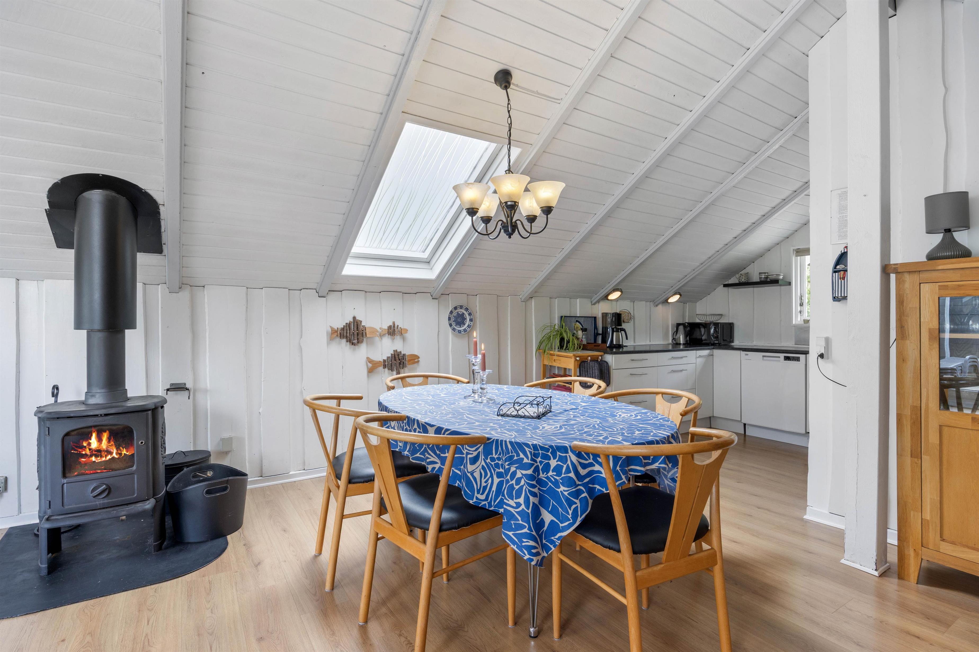 Sommerhuset byder på 3 dejlige soverum, der tilsammen kan rumme op til 6 personer. Med en luft til luft varmepumpe og en brændeovn sikres feriehuset behagelig temperatur året rundt. Når aftenen falder på, kan alle samles foran ilden i brændeovnen for at nyde en hyggelig stund sammen.