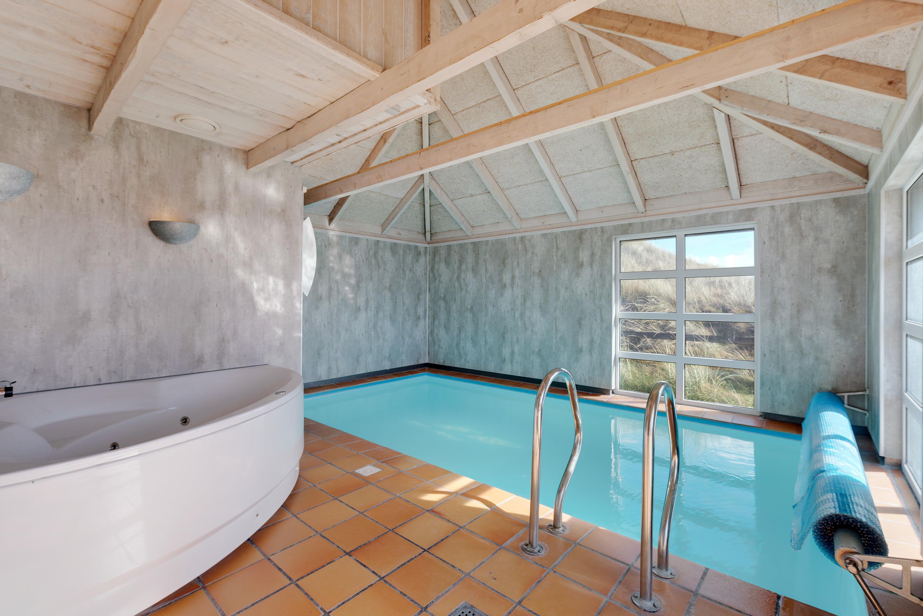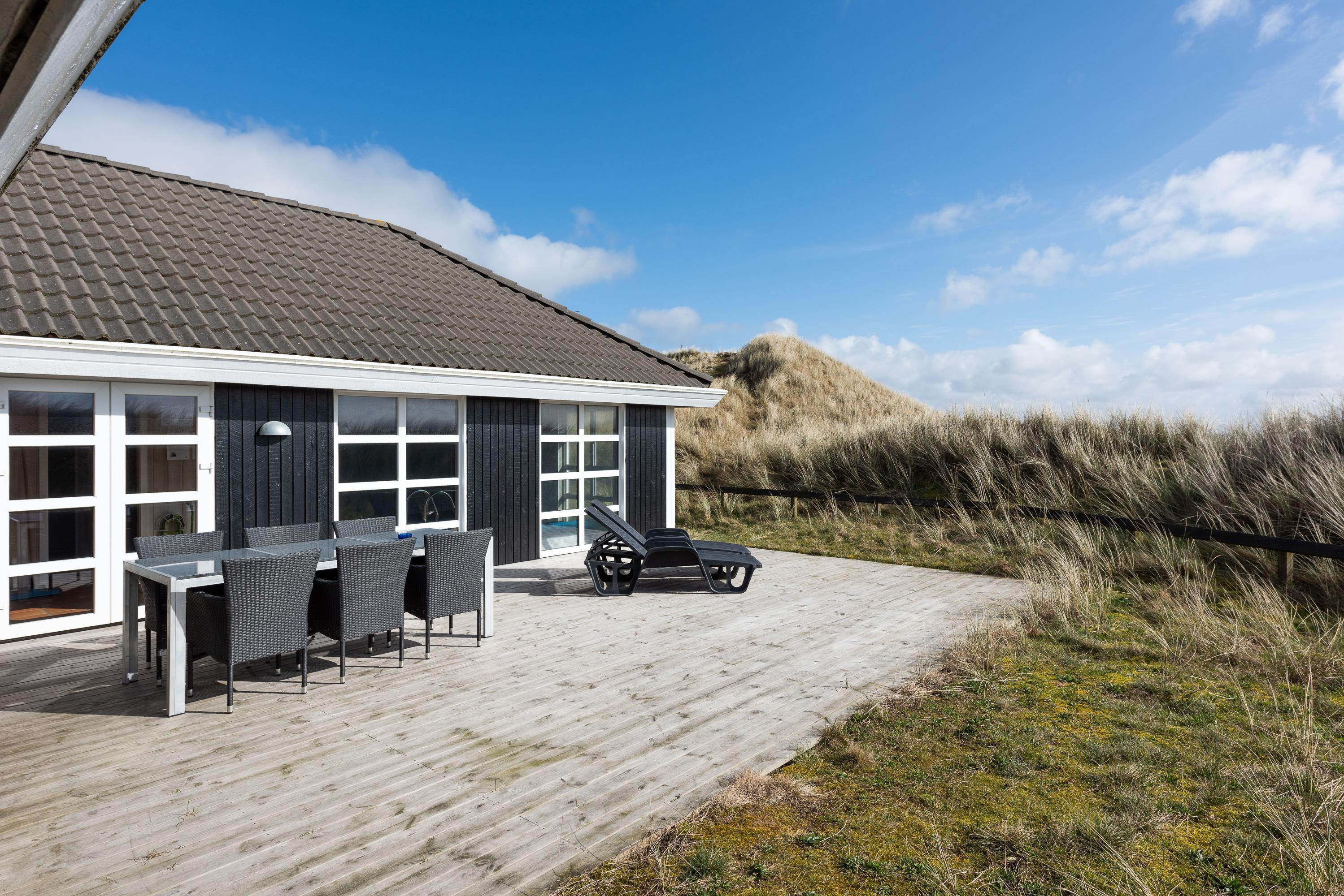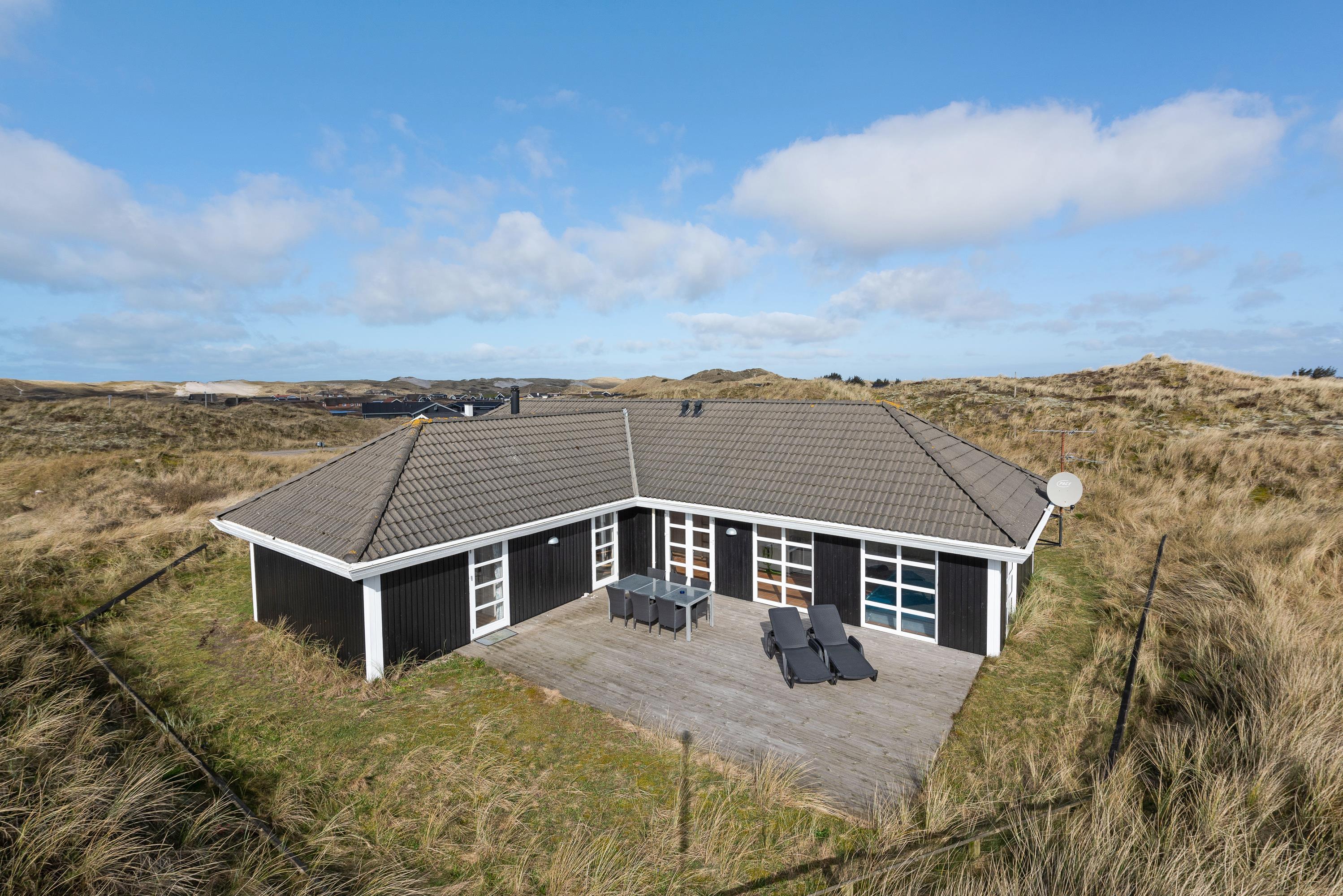Poolhuset på Riskrogvej 6 er højt beliggende, hvilket giver en ualmindelig flot udsigt ud over klitområdet og Ringkøbing Fjord.