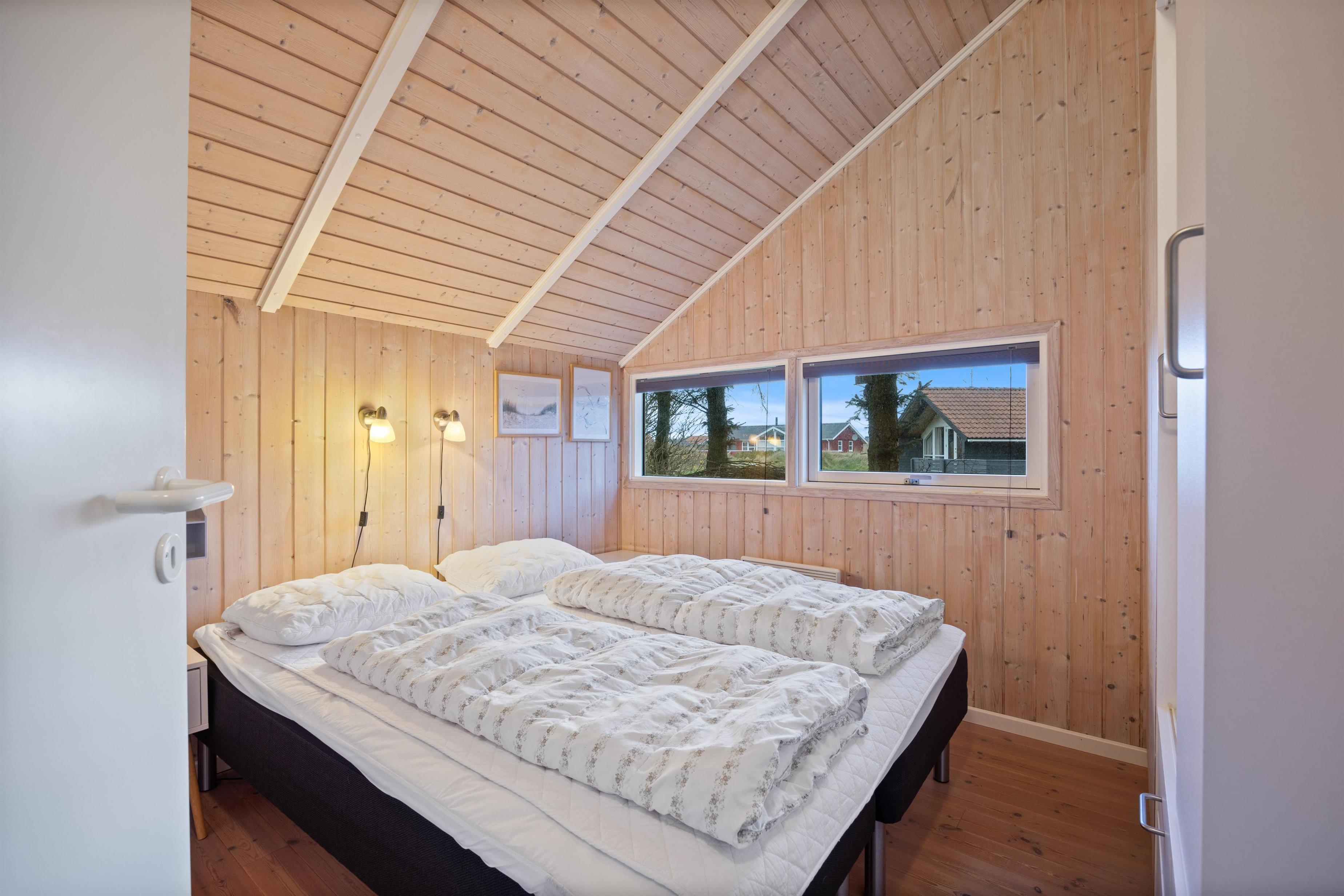 Sommerhusets 7 sovepladser er fordelt på 3 soveværelser, hvoraf der er dobbeltseng på to af dem. På det sidste værelse er der en køjeseng samt en enkeltseng.