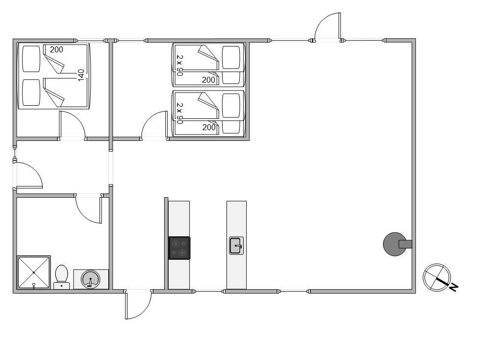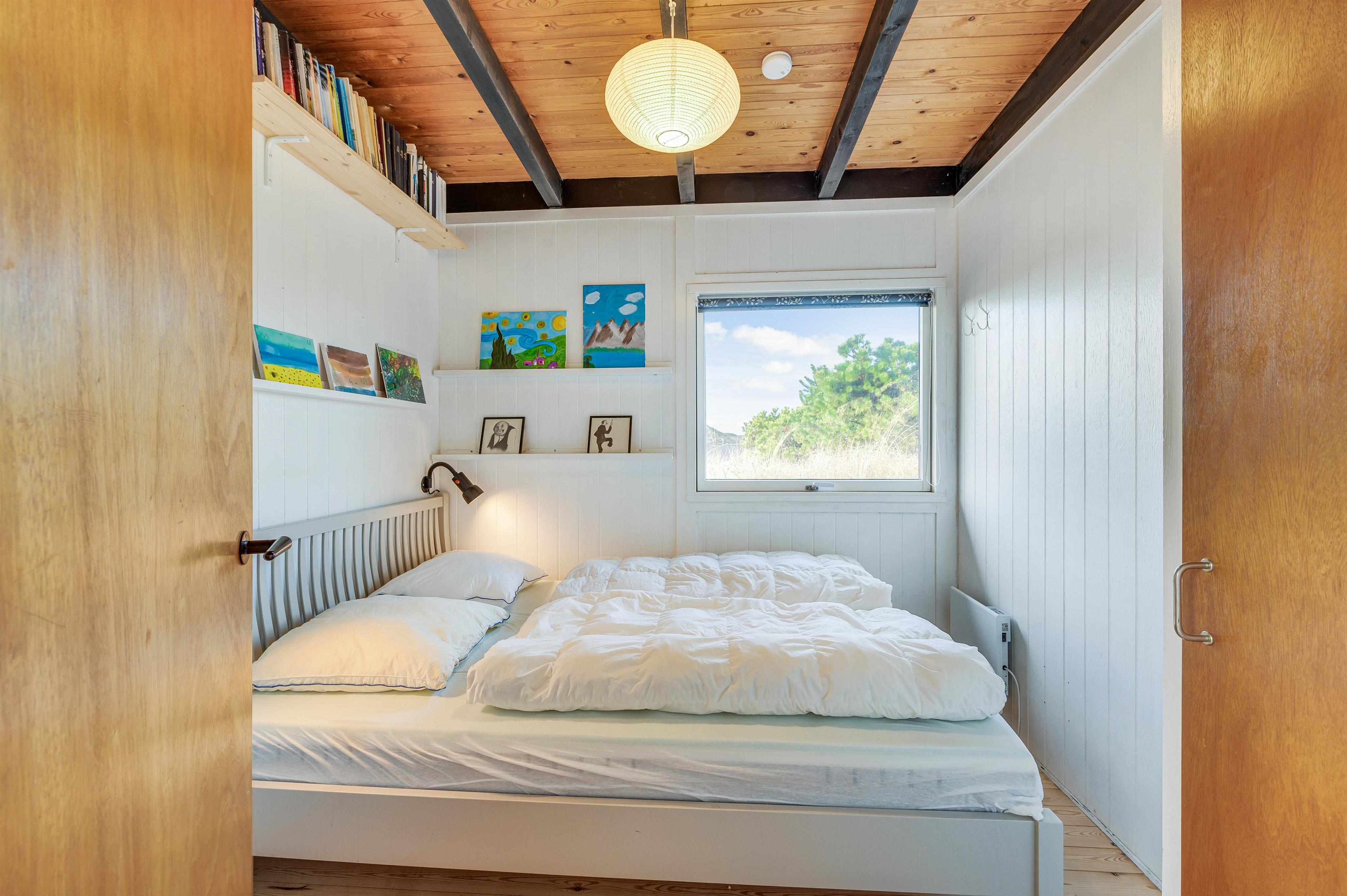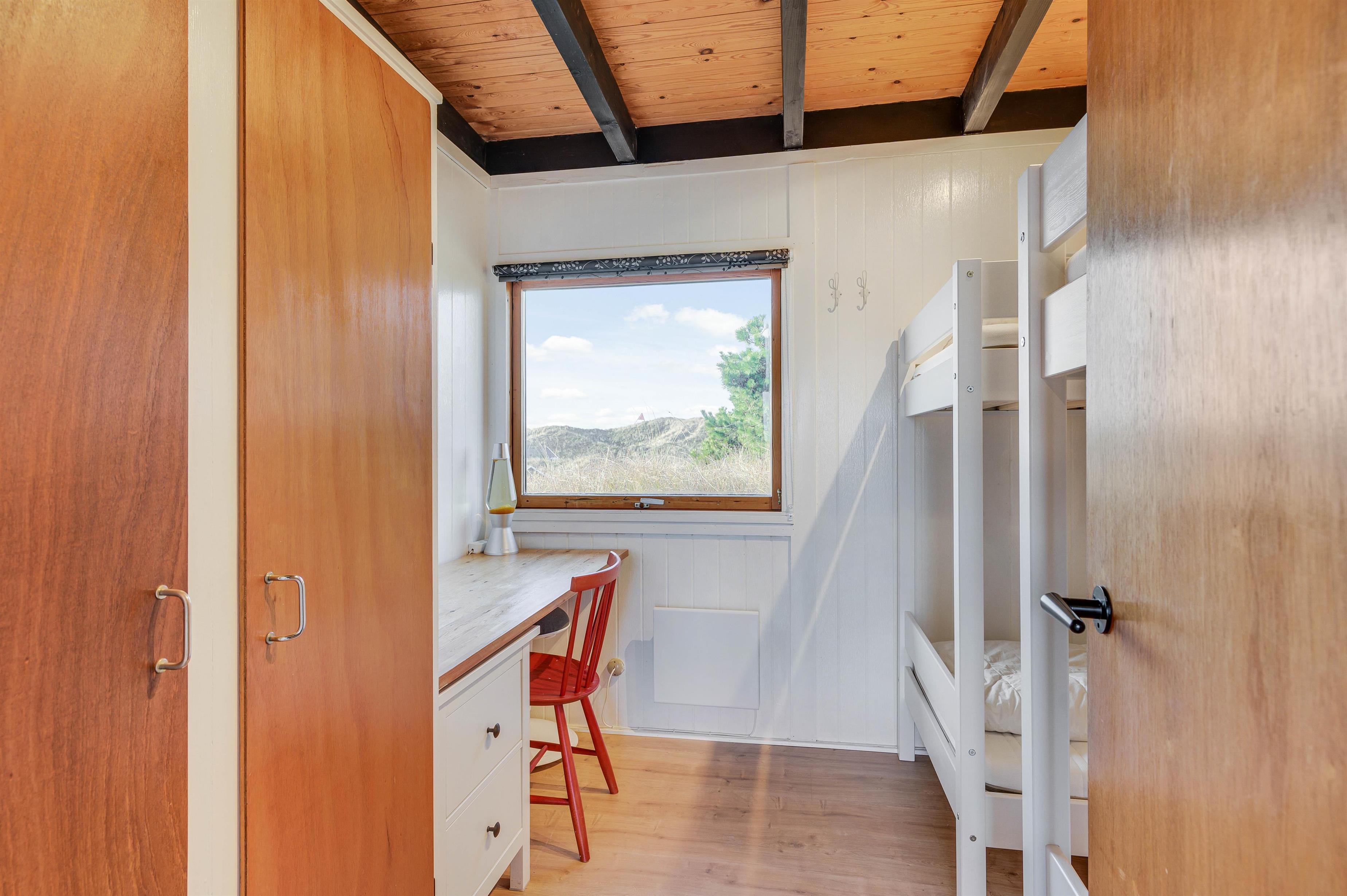 Feriehuset er hyggeligt og familievenligt. Der er to soveværelser, det ene med en komfortabel dobbeltseng og det andet med to køjesenge til børnene. Ved det lille skrivebord kan børnene tegne og lege.