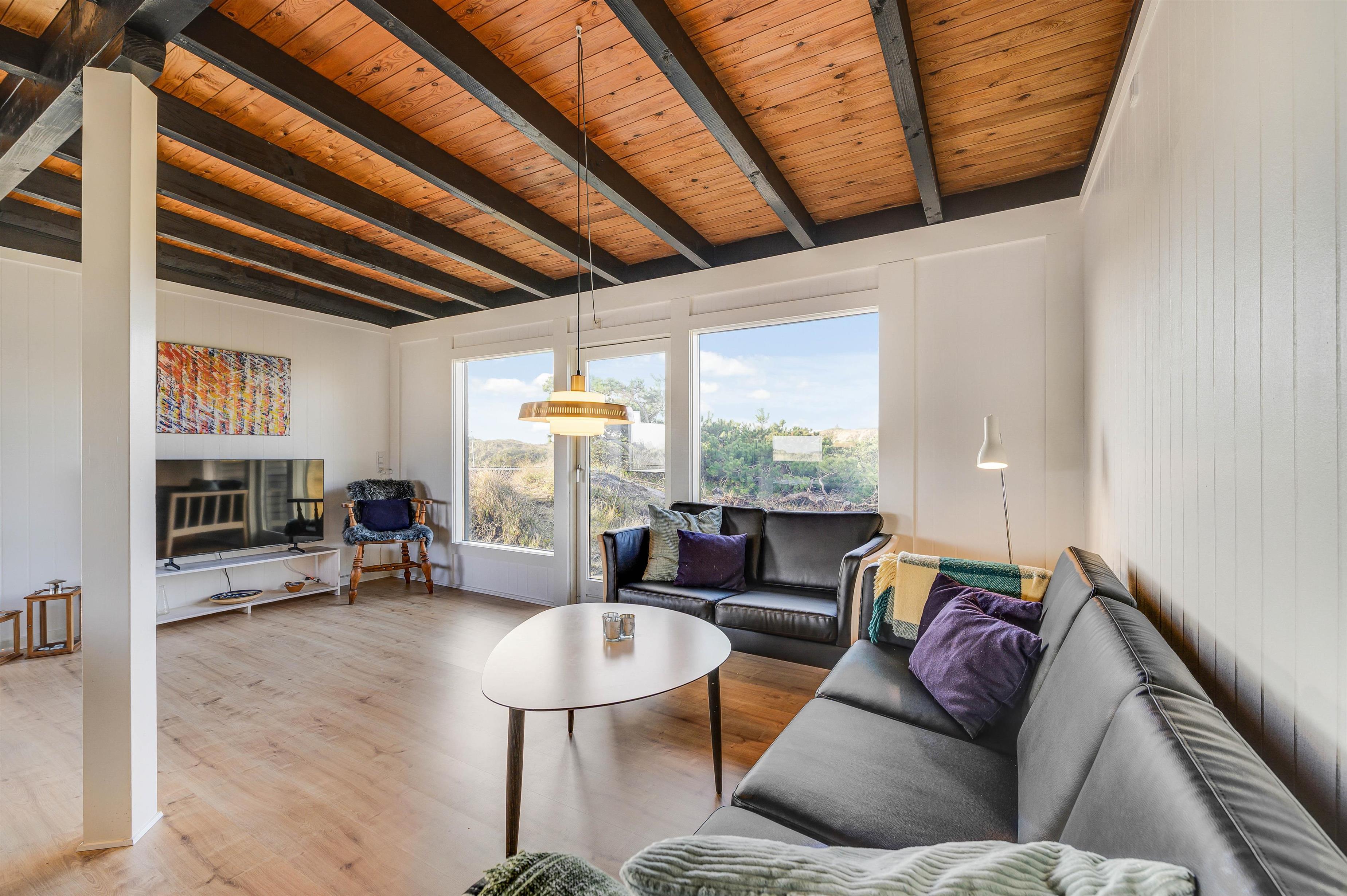 Jeres feriehus i træ er hyggeligt beliggende på en naturlig klitgrund i det populære ferieområde Haurvig. Med kun 800 meters afstand til den danske vestkyst er beliggenheden ideel til eventyrlige ture til stranden på varme sommerdage.