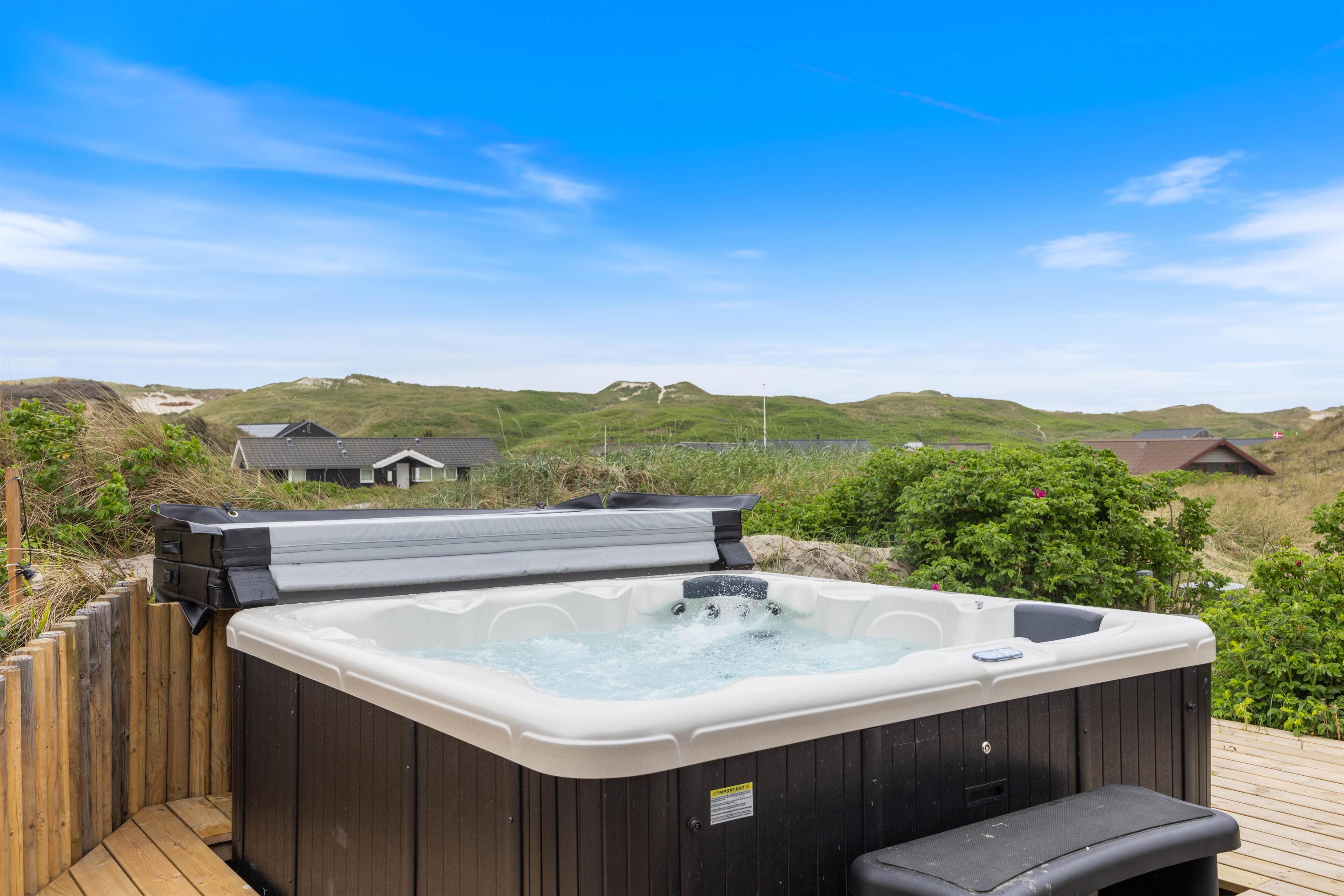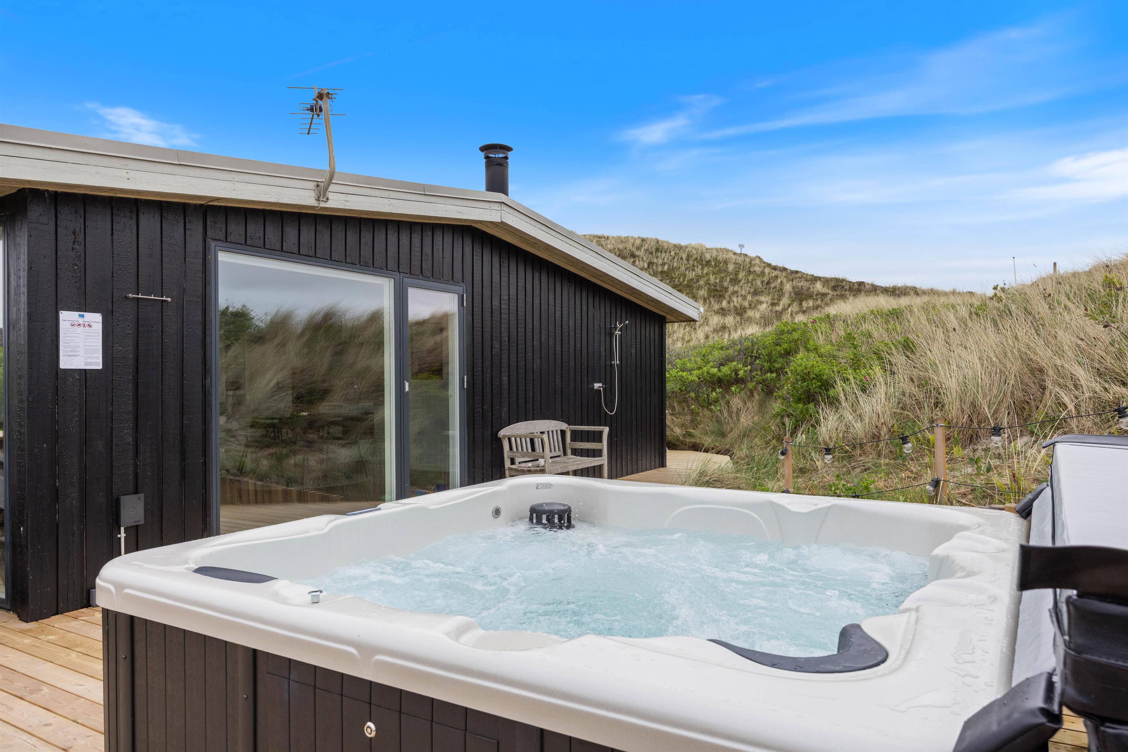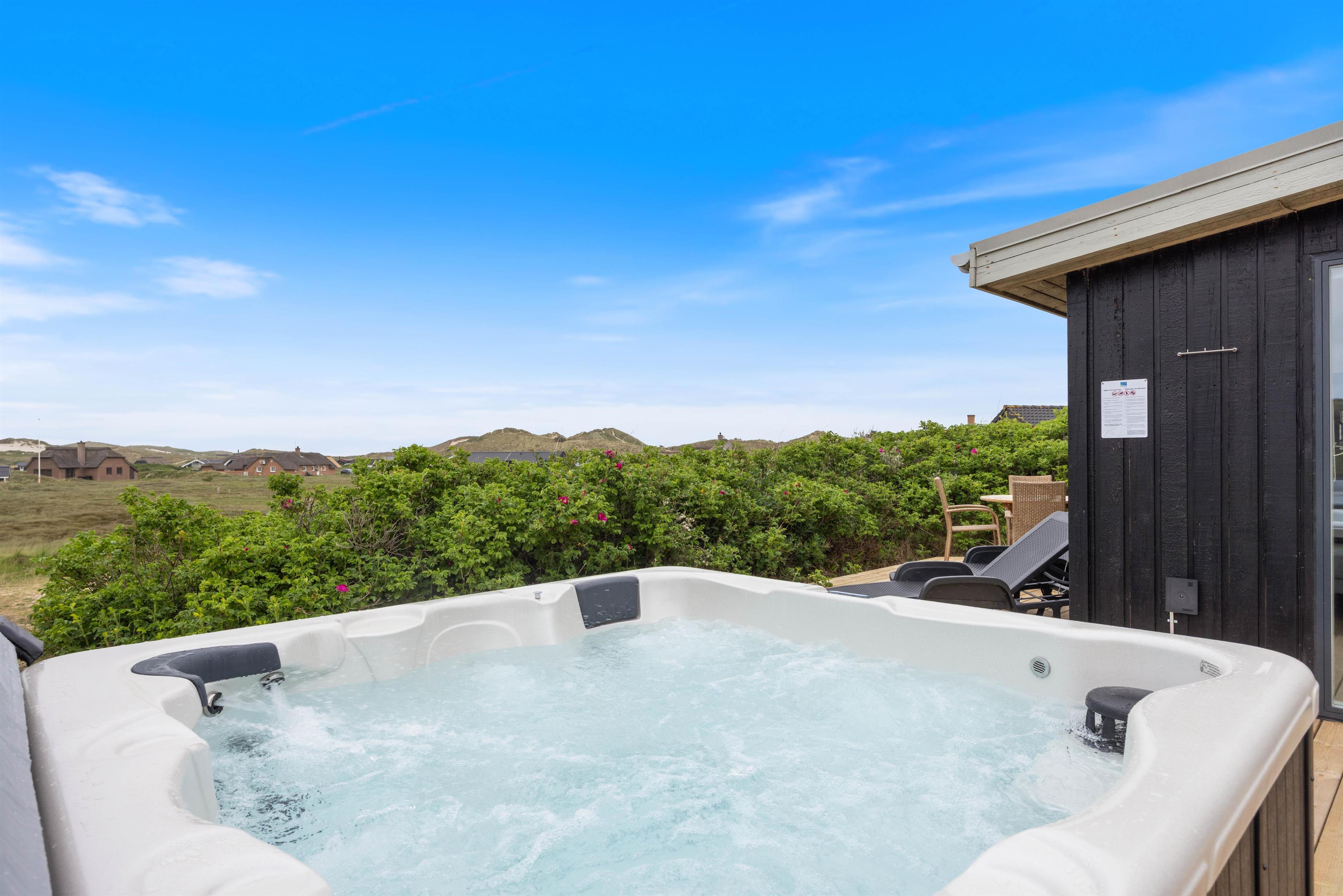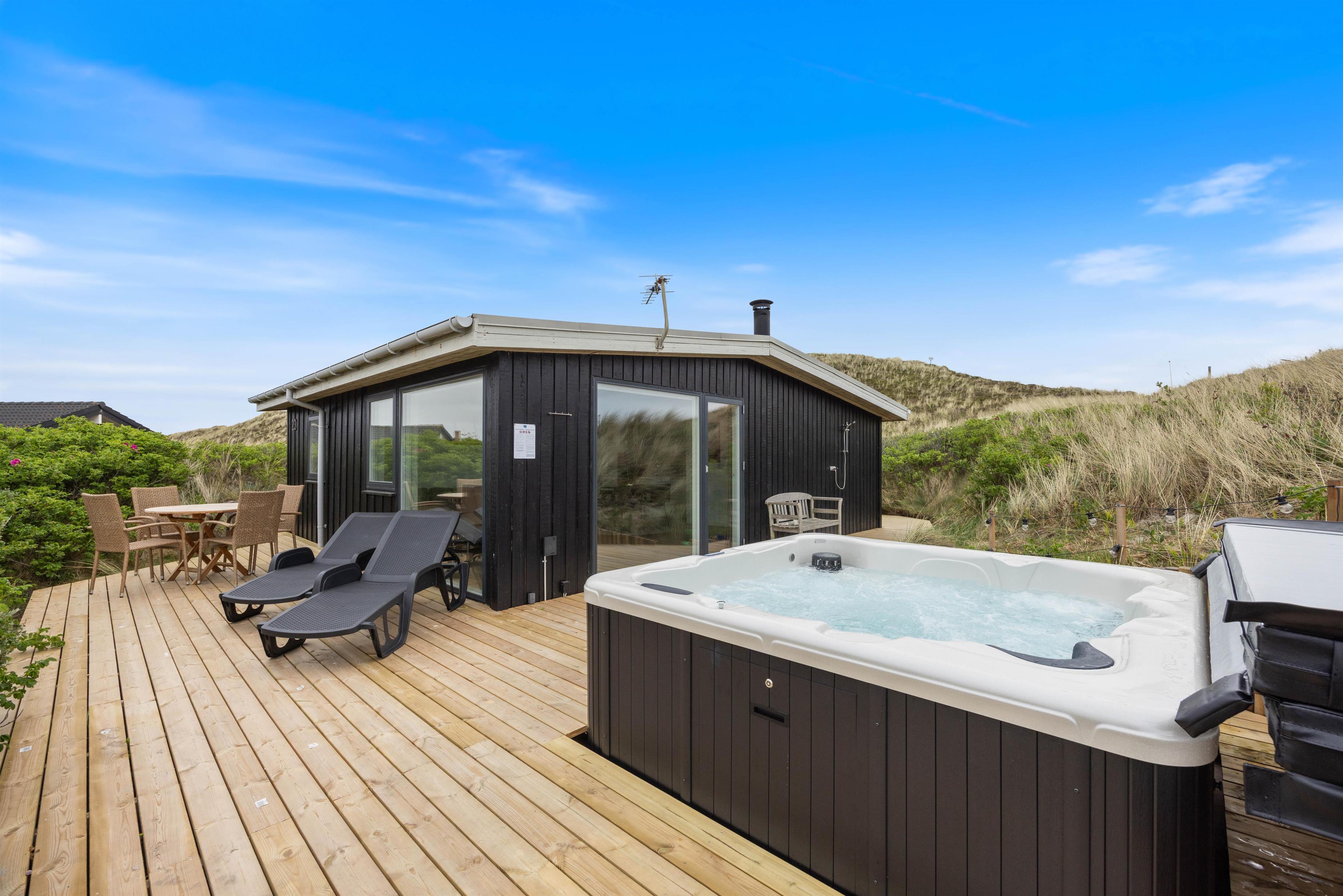 Tænd op i grillen efter en dejlig dag ved vandet og nyd aftensmaden på terrassen, mens skyggerne bliver lange - Gå dog ikke glip af at opleve solnedgangen i Vesterhavet. Til ekstra velvære byder sommerhuset også på en udendørs spa, hvor I kan slappe af og lade alle bekymringer forsvinde.