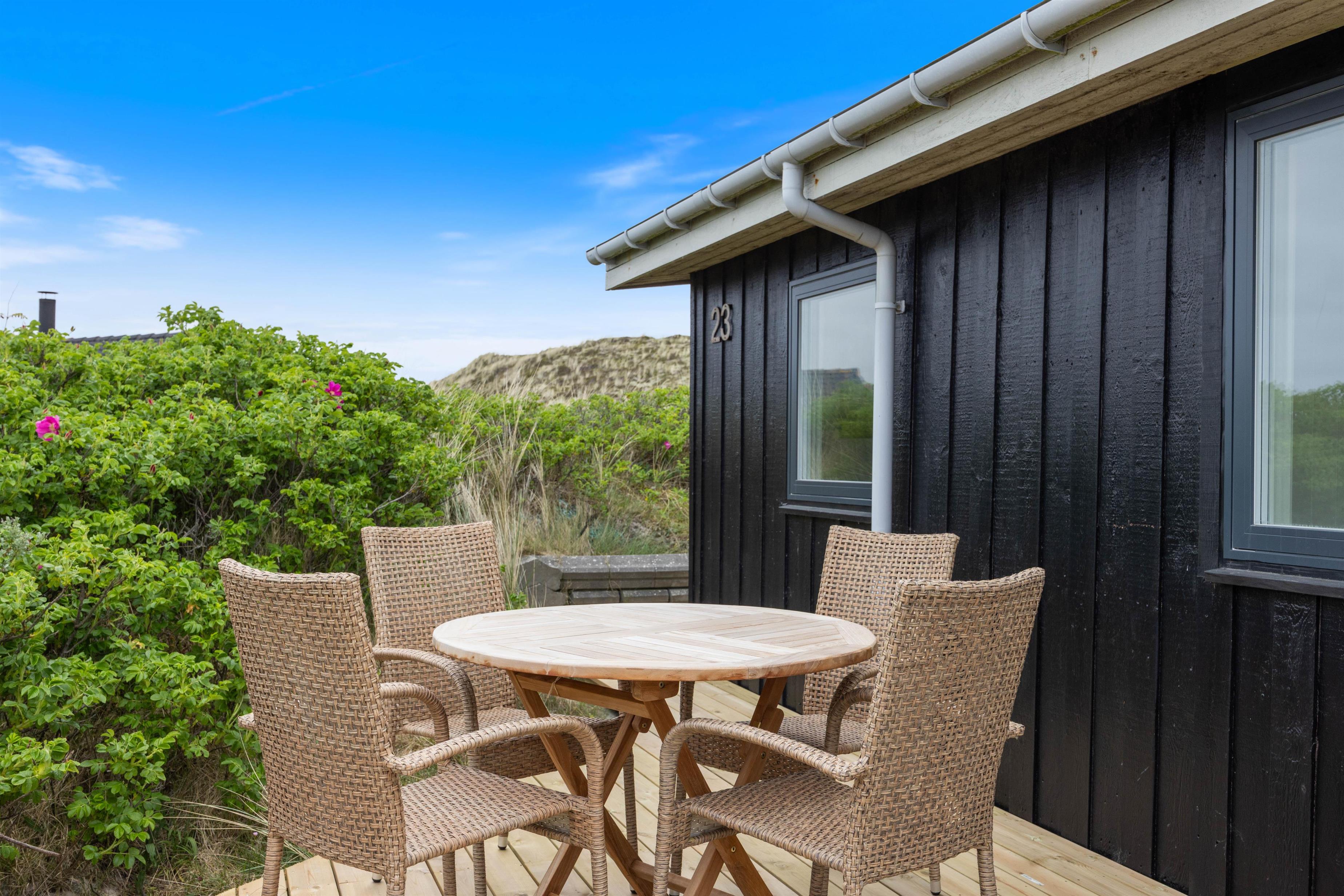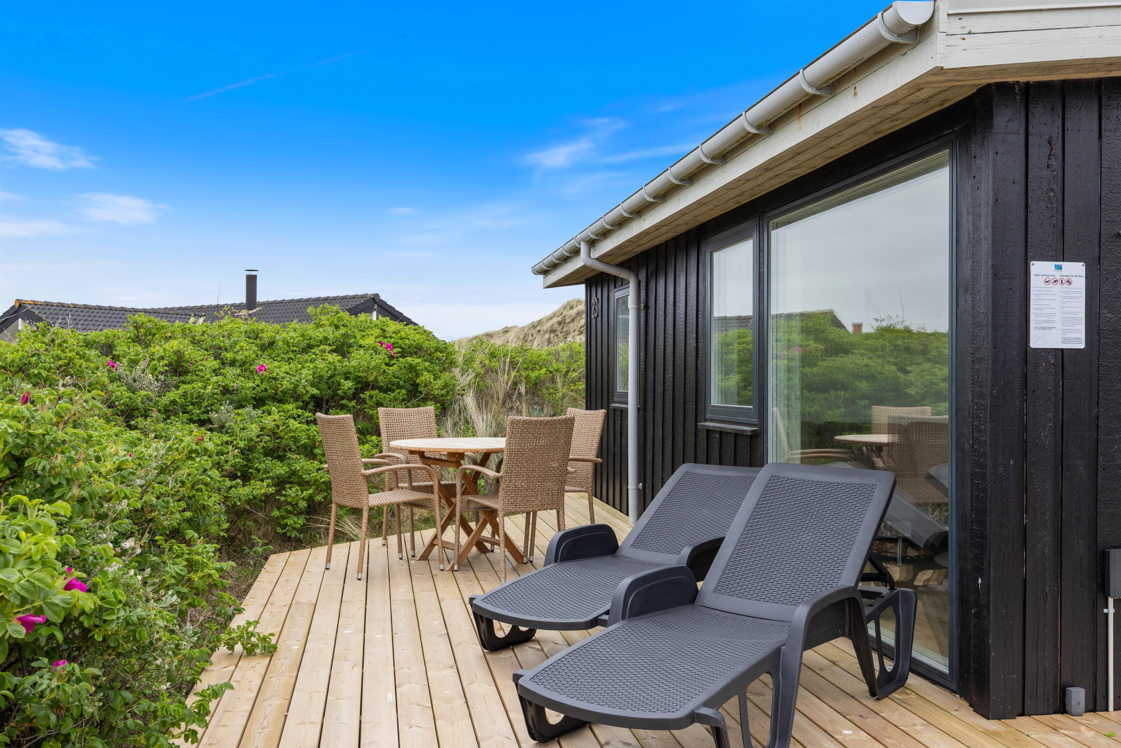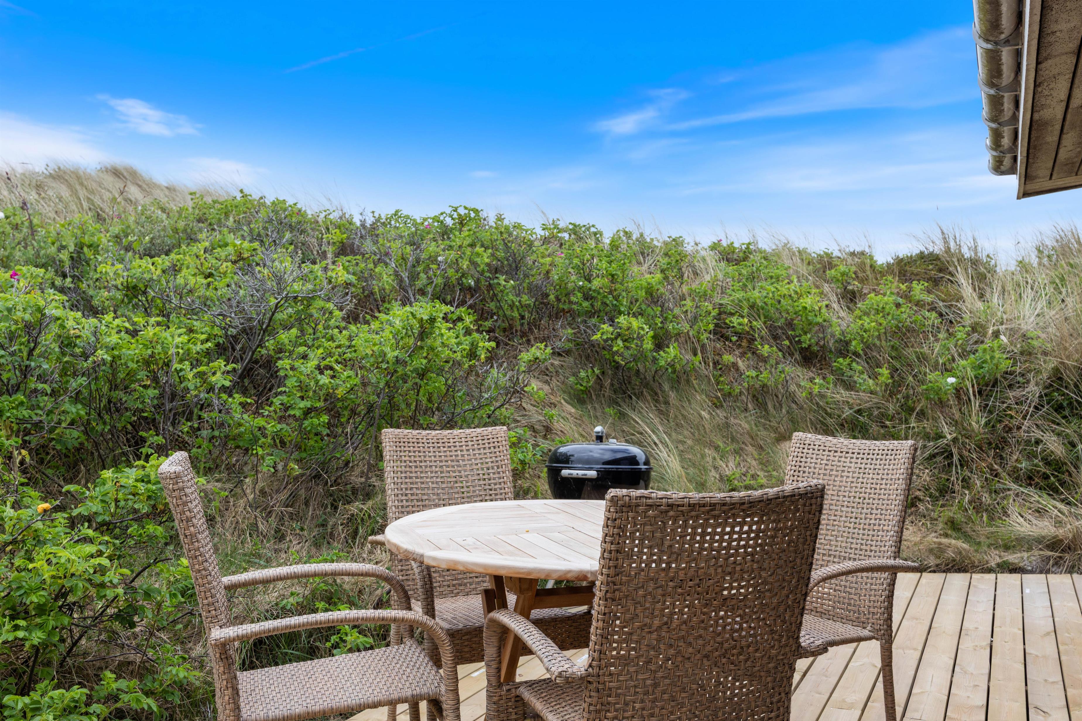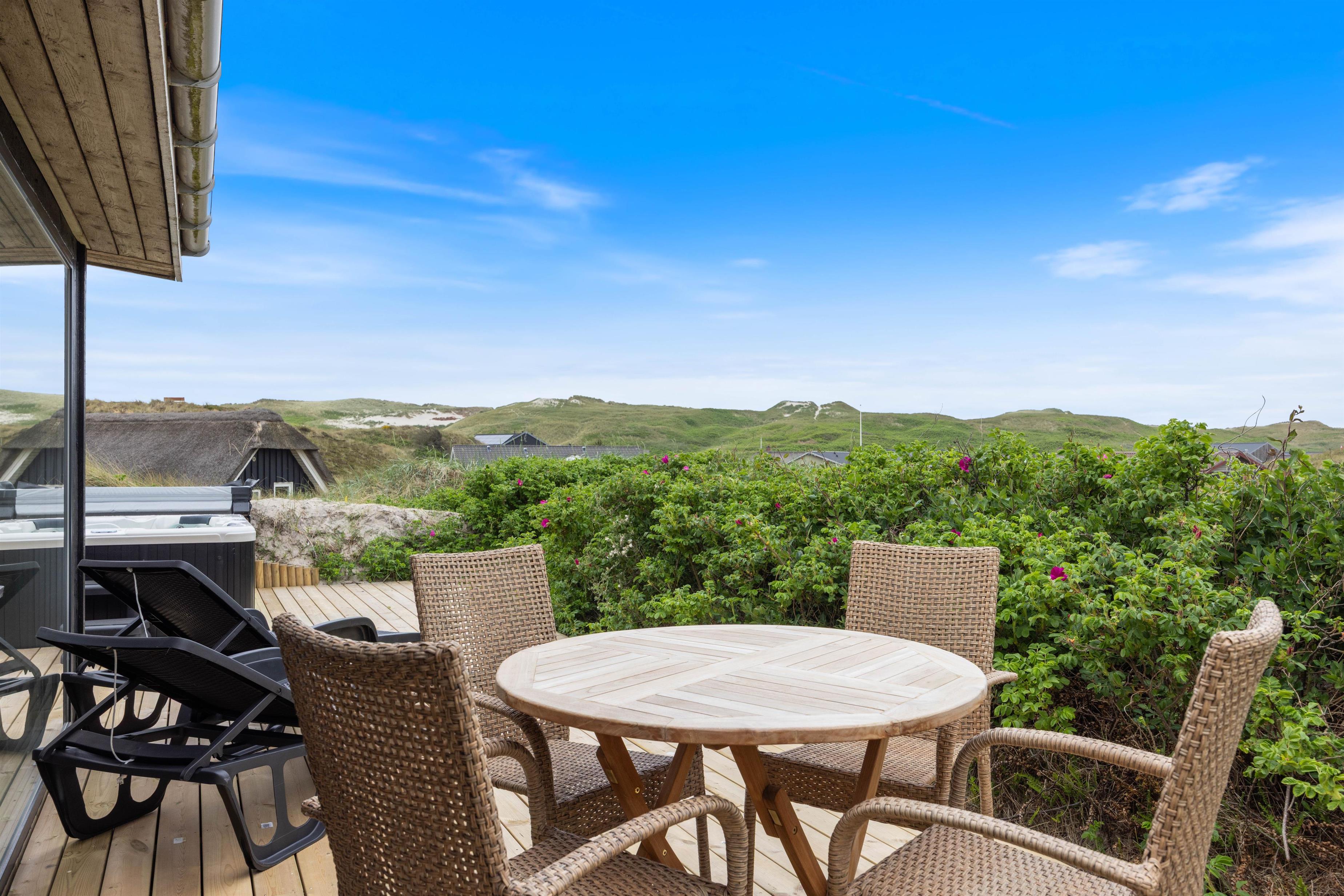 Tænd op i grillen efter en dejlig dag ved vandet og nyd aftensmaden på terrassen, mens skyggerne bliver lange - Gå dog ikke glip af at opleve solnedgangen i Vesterhavet. Til ekstra velvære byder sommerhuset også på en udendørs spa, hvor I kan slappe af og lade alle bekymringer forsvinde.