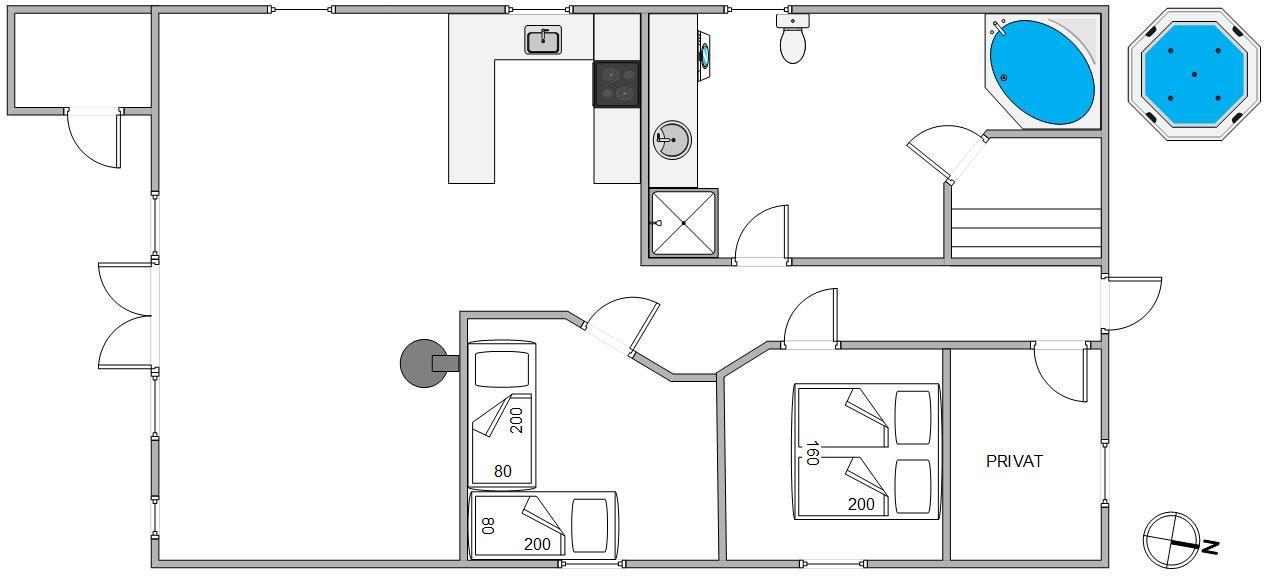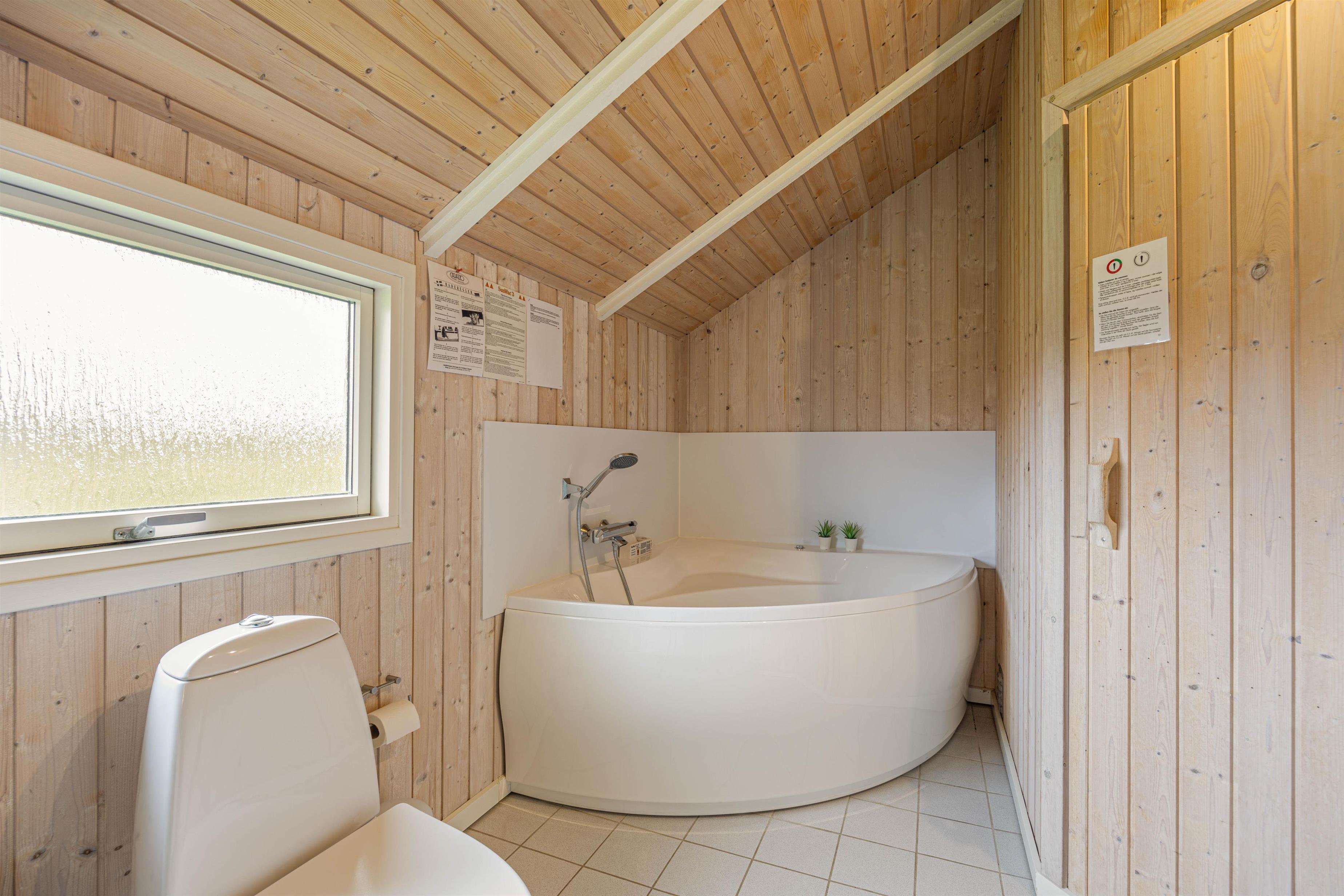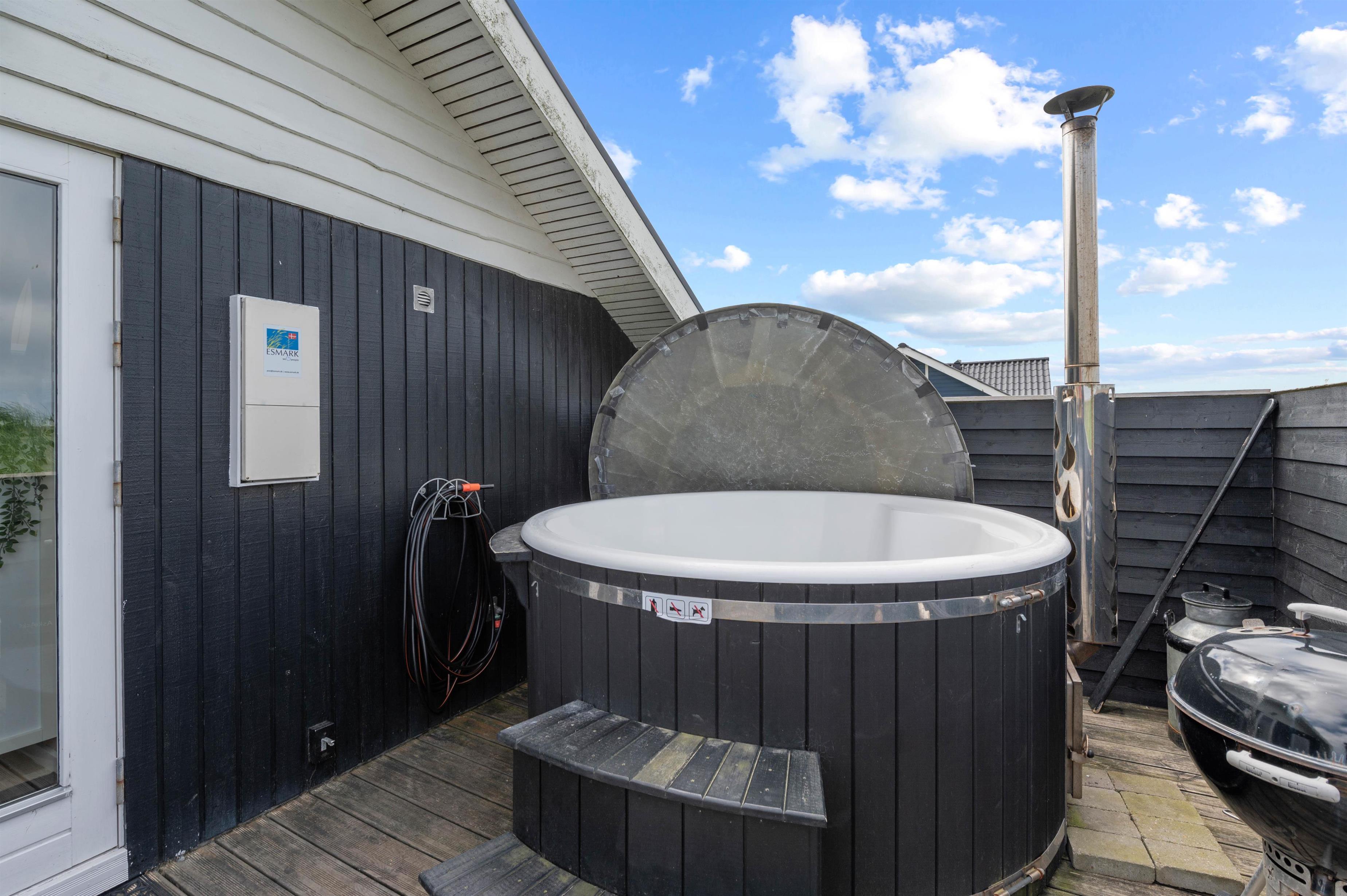 På en ferie i dette sommerhus er der rig mulighed for at komme helt ned i gear og lade kroppen helt op: På husets badeværelset har I både et spabad og en sauna, og udenfor på husets terrasse står et vildmarksbad klar til at varme jer godt igennem.