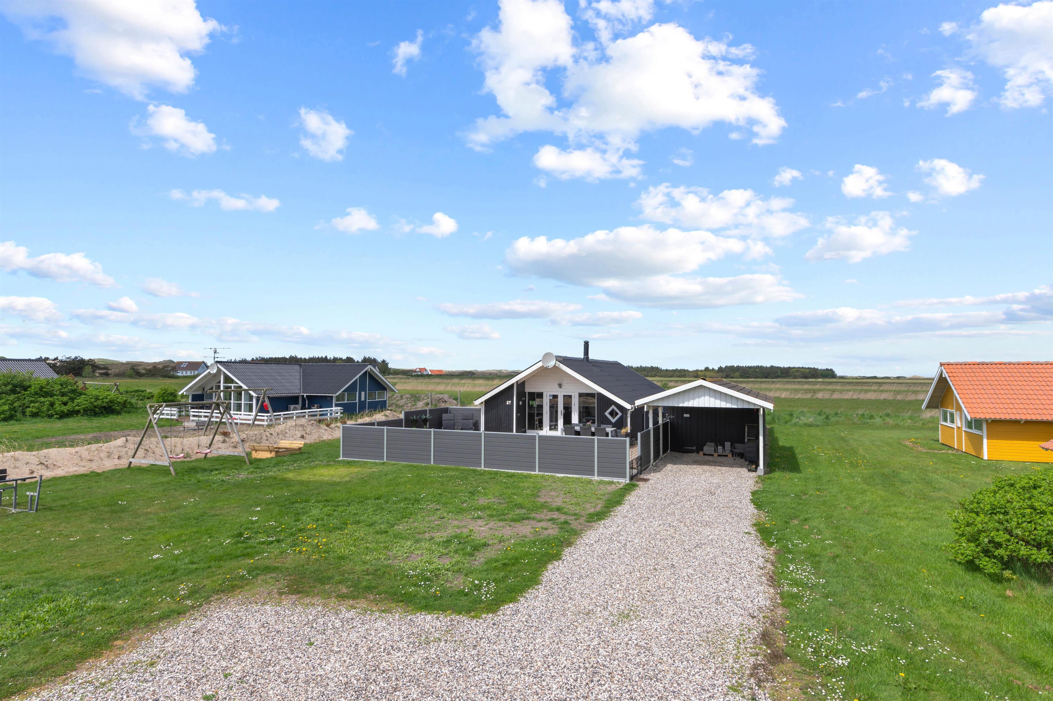 Tæt på Ringkøbing Fjord ligger dette hyggelige feriehus på Laust Diges Vej 27. I huset er der plads til 4 personer og familiens 2 hunde, som vil elske at komme med til vandet. Parkér bilen i carporten og lad børnene drøne rundt på den store græsplæne med gynger og sandkasse.
