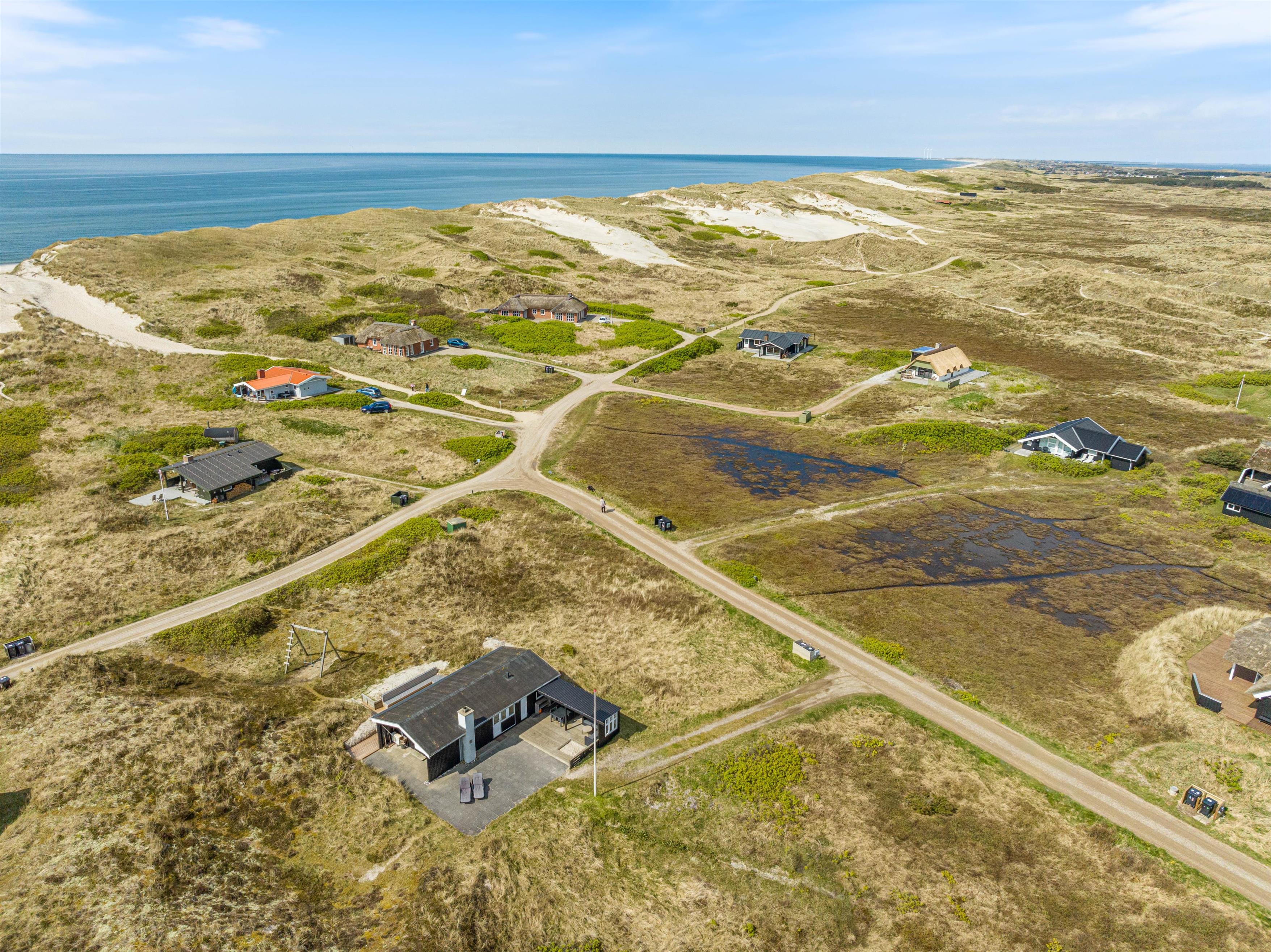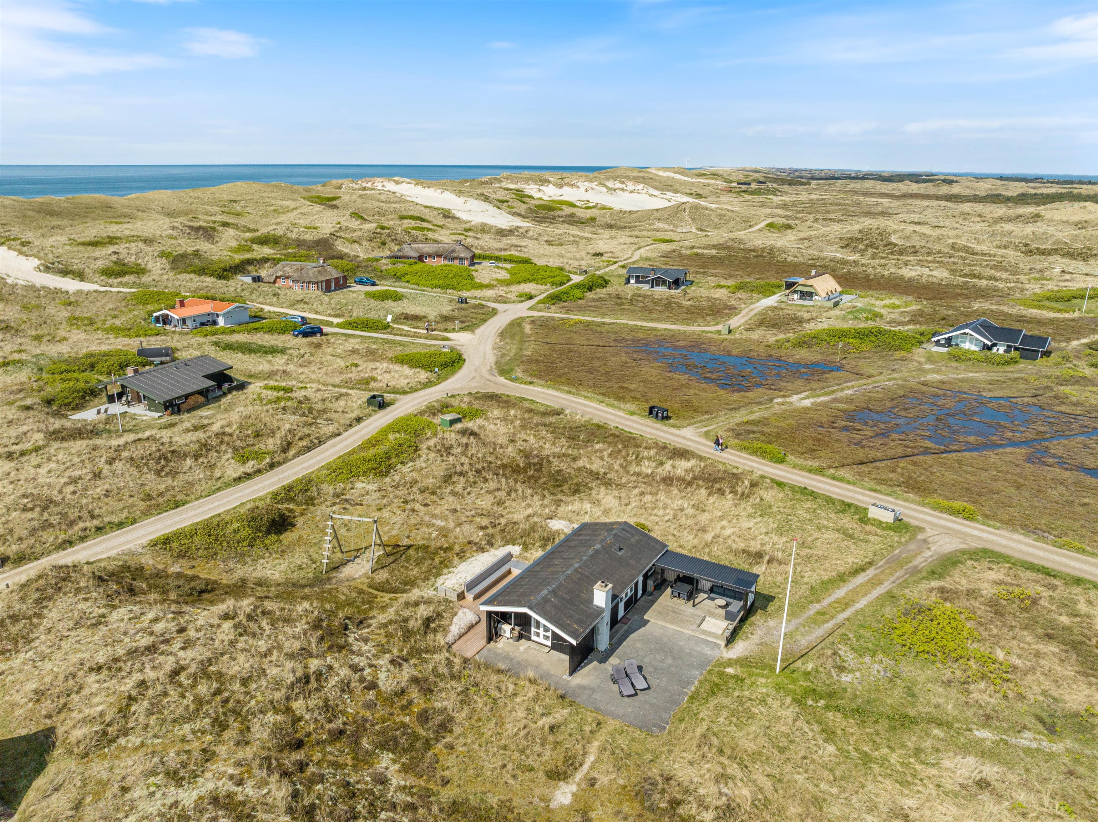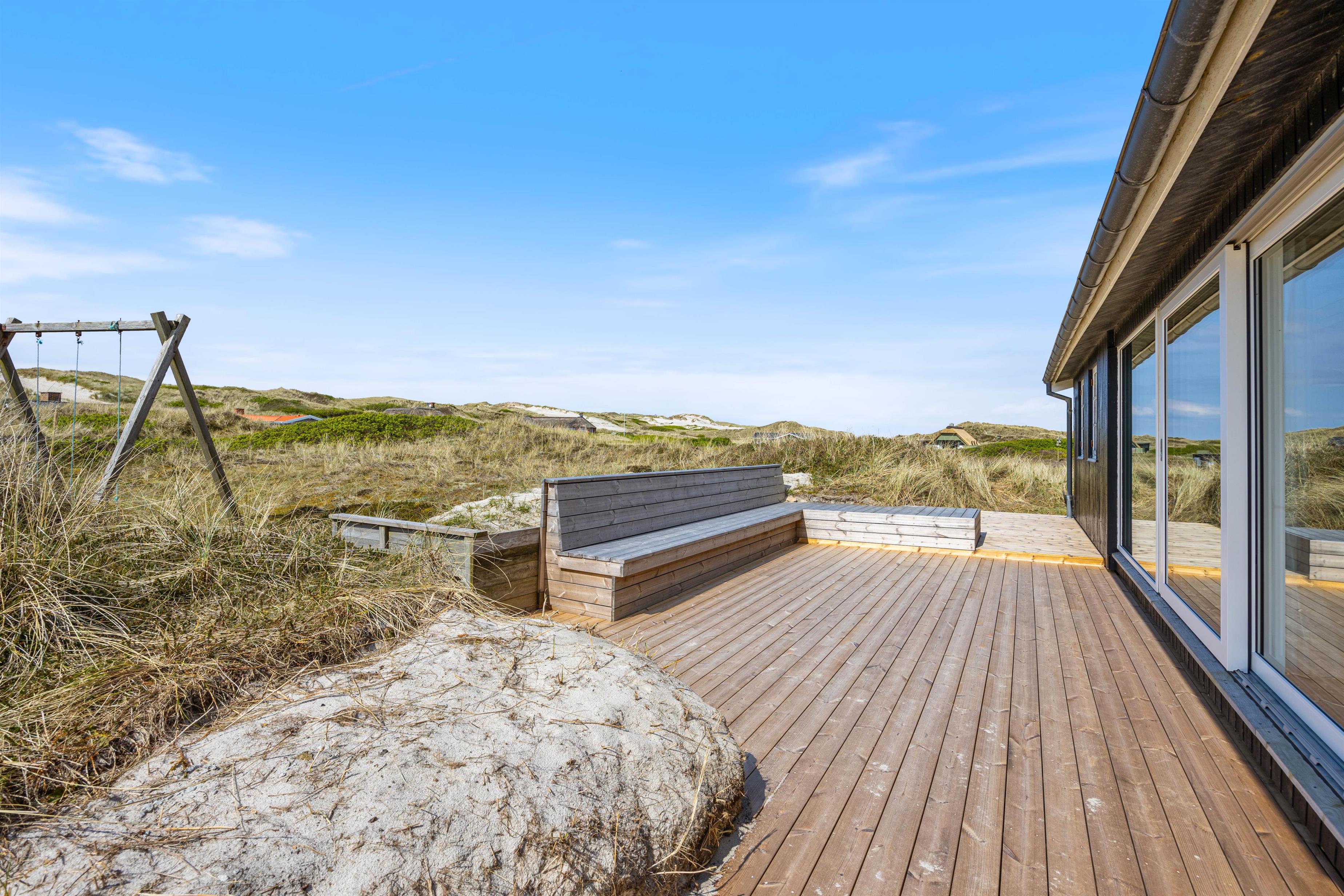 Stranden og det brusende Vesterhav ligger bare 200 meter fra sommerhuset. Sommerhuset har dermed en helt fantastisk beliggenhed.
