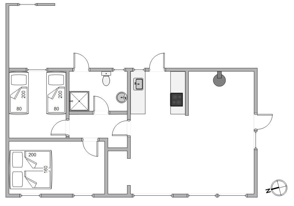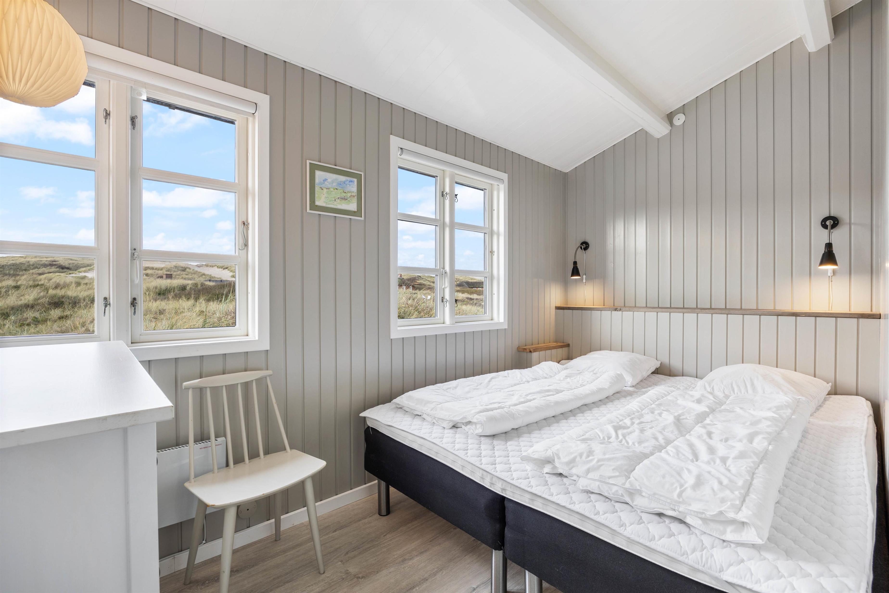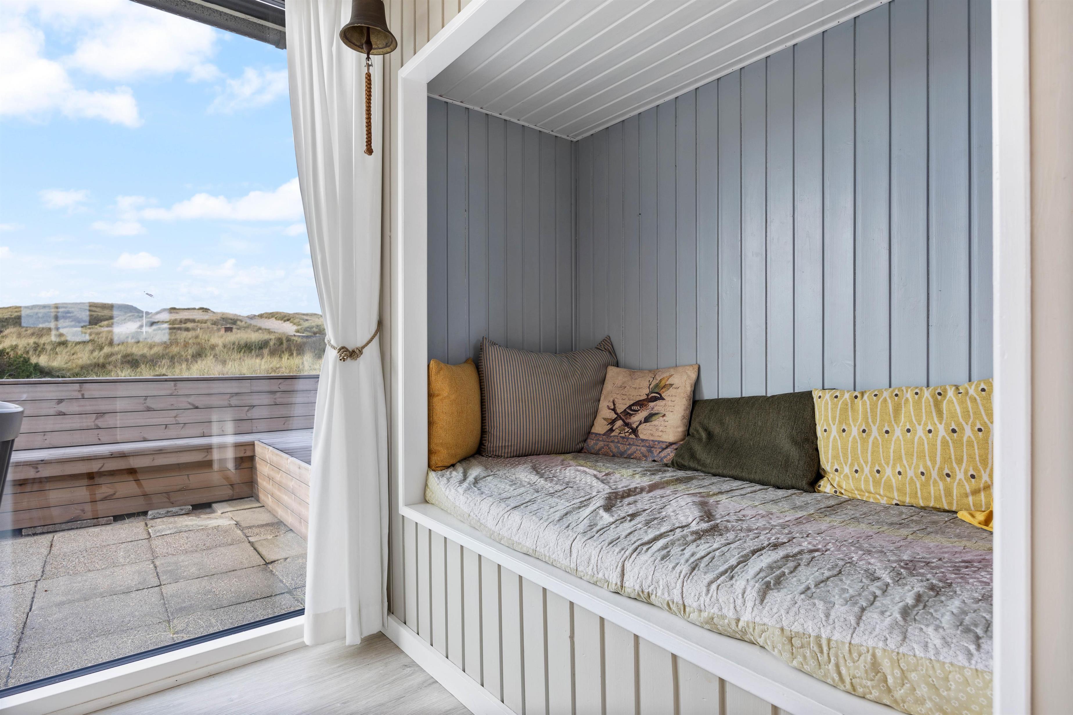 Ved spisebordet er der en helt fantastisk udsigt til det bølgende landskab udenfor. En lille hyggelig alkove i spiseområdet er perfekt til afslapning på langs eller som en lille hule til børnene. Sommerhuset er indrettet med to soverum og plads til 4 gæster.