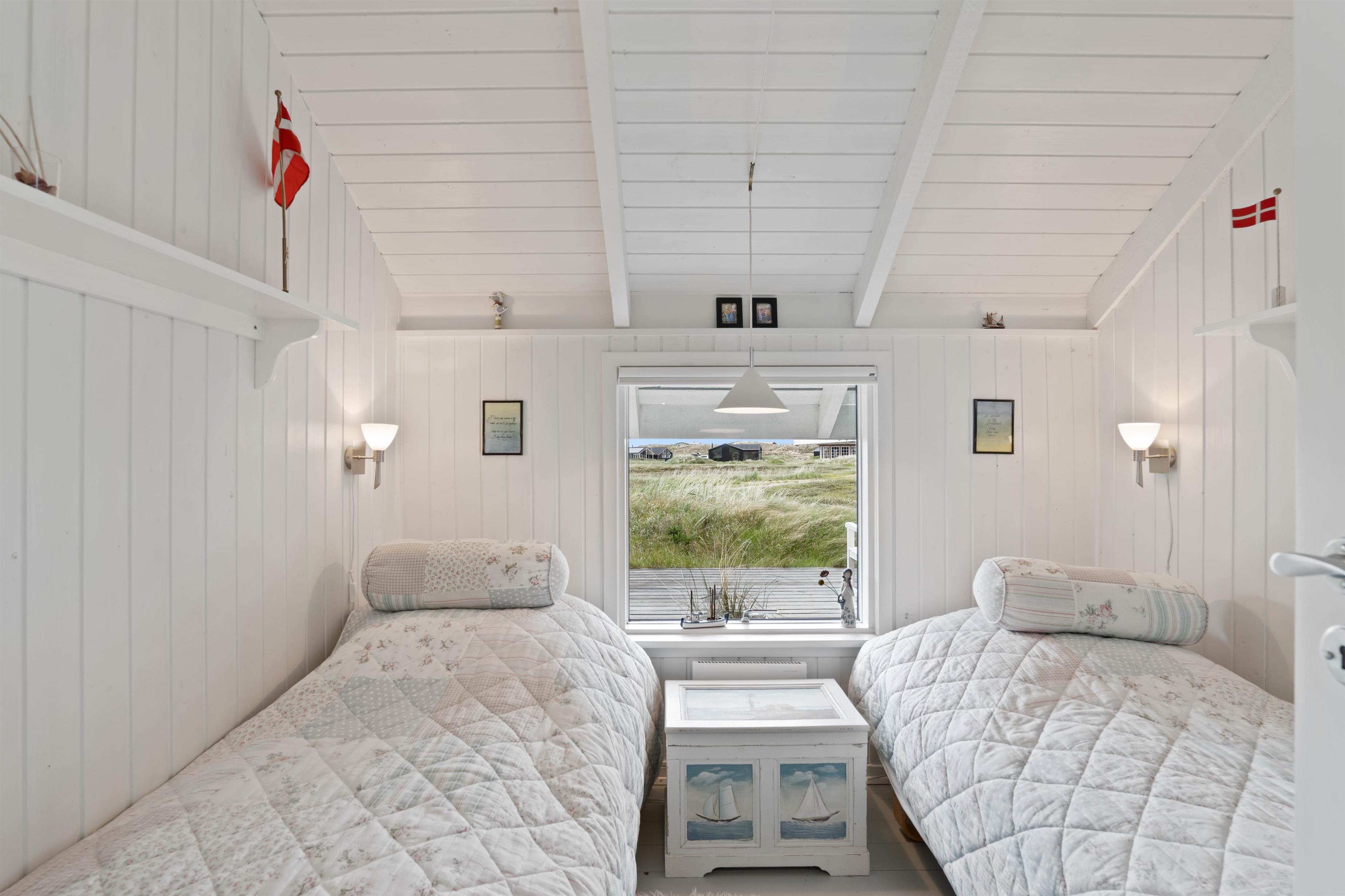 I sommerhuset på Riskrogvej 25 har du alt omkring dig. Her kan op til 3 personer slappe af på den skønne terrasse, nyde den særegne udsigt over klitterne og naturen i det vestjyske landskab. Den rummelige opholdsstue inviterer til spilleaftener eller afslappende timer foran brændeovnen. Afslappende eller aktiv ferie, det hele er muligt her. Sommerhuset ligger på en skøn naturgrund med udebruser, så I kan skylle sandet af tæerne efter en tur ved Vesterhavet.