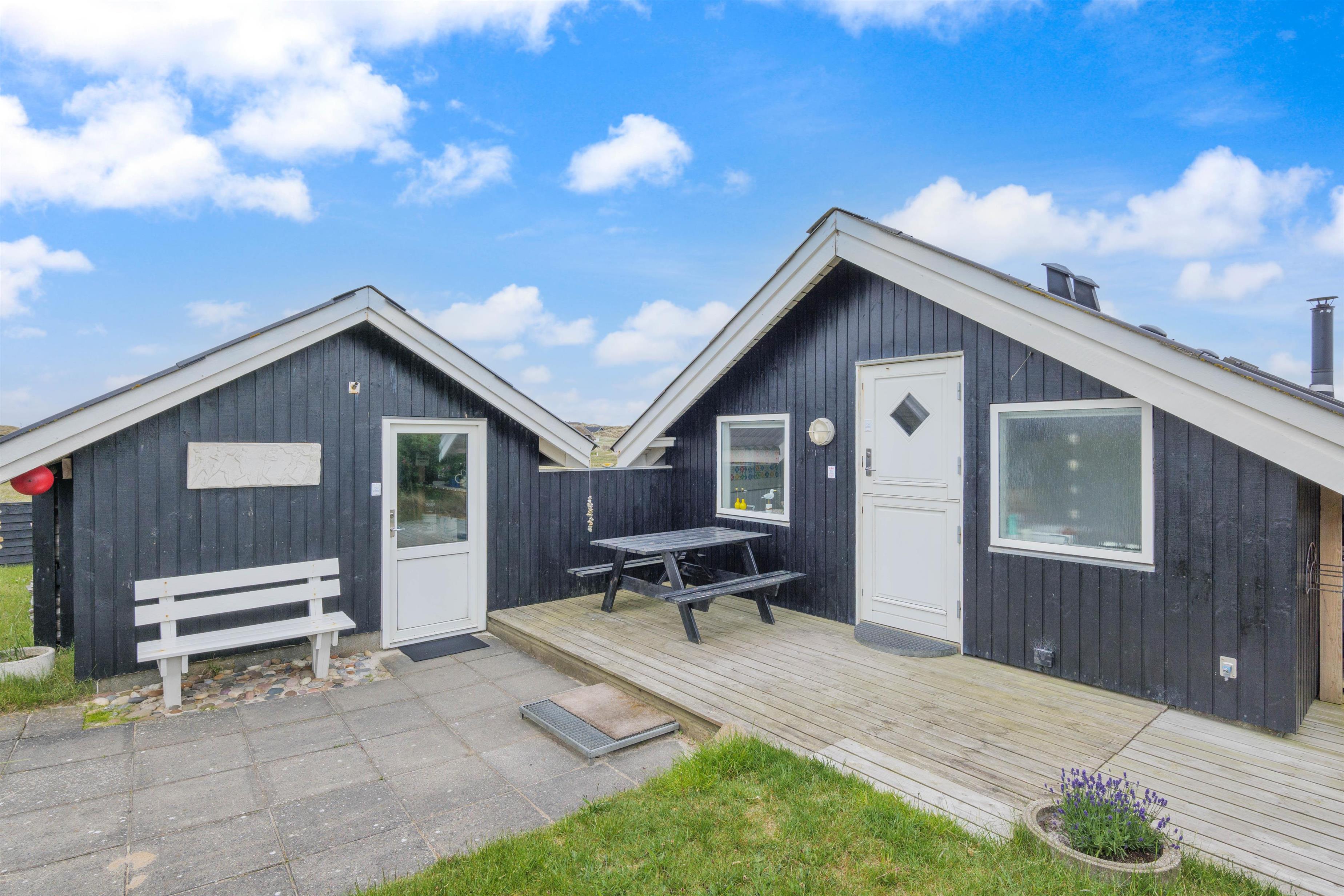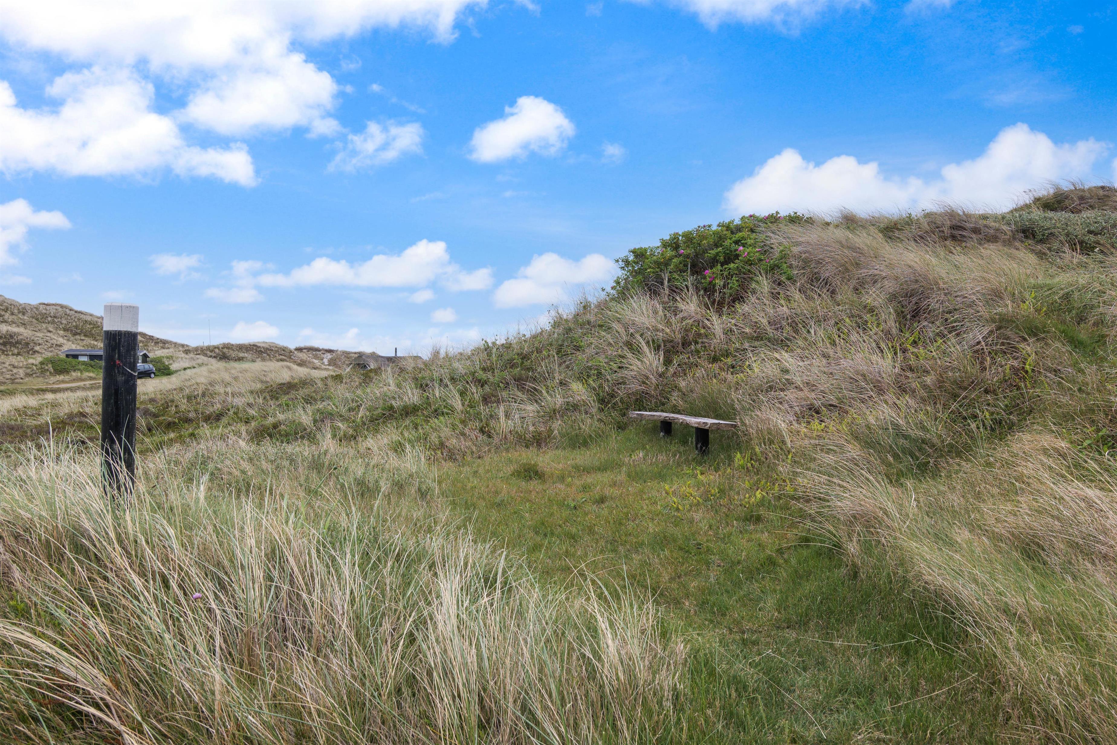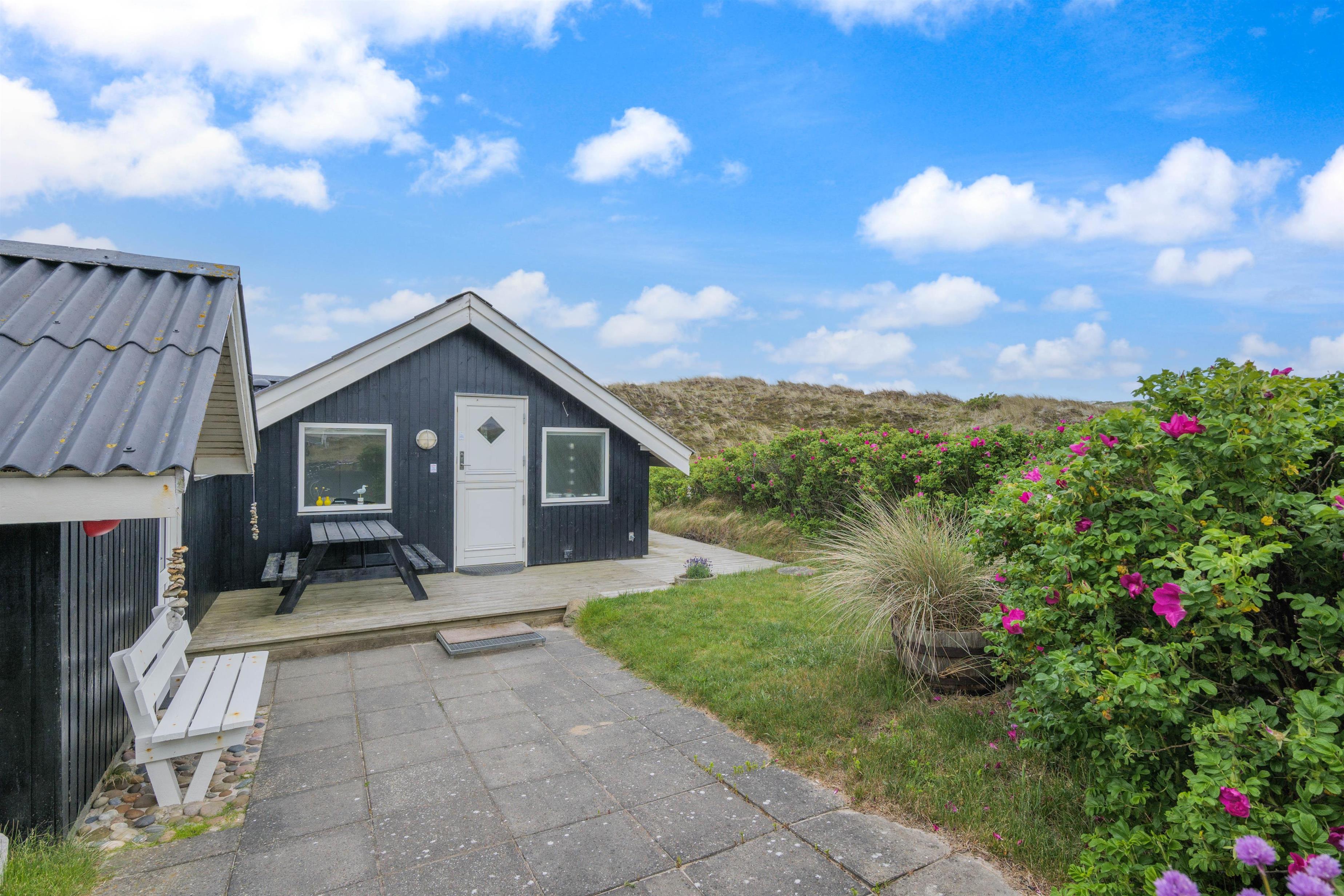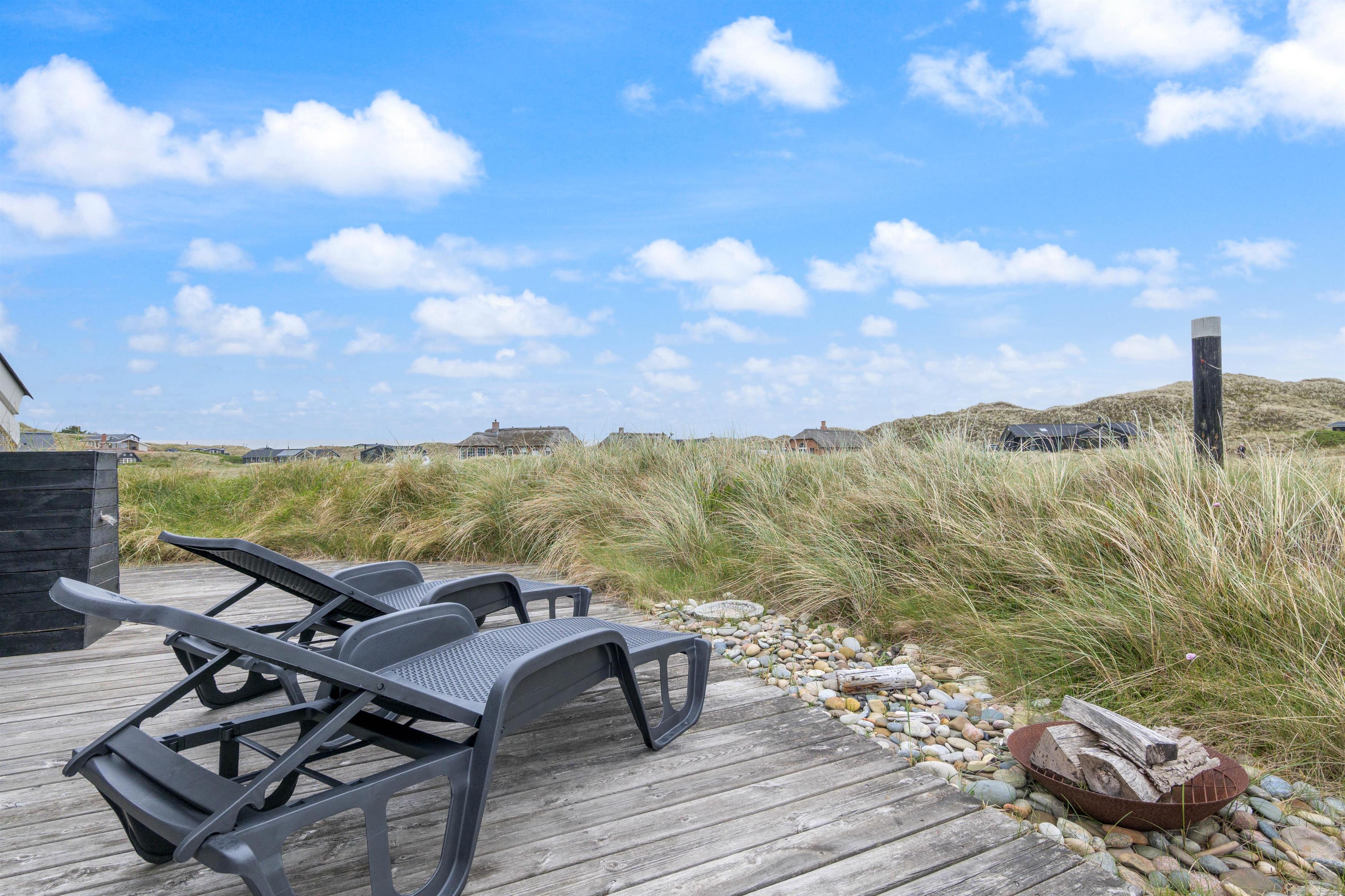 På den rummelige, afskærmede og delvist overdækkede terrasse kan du indtage nogle af måltiderne, slappe af med solbadning eller grille aftensmaden. På naturgrunden finder du en udendørs bruser og et redskabsrum. Udebruseren kan benyttes fra april til november. I en afstand af kun 550 meter ligger Vesterhavet og den dejlige sandstrand, som altså kun er en frisk gåtur fra feriehuset.