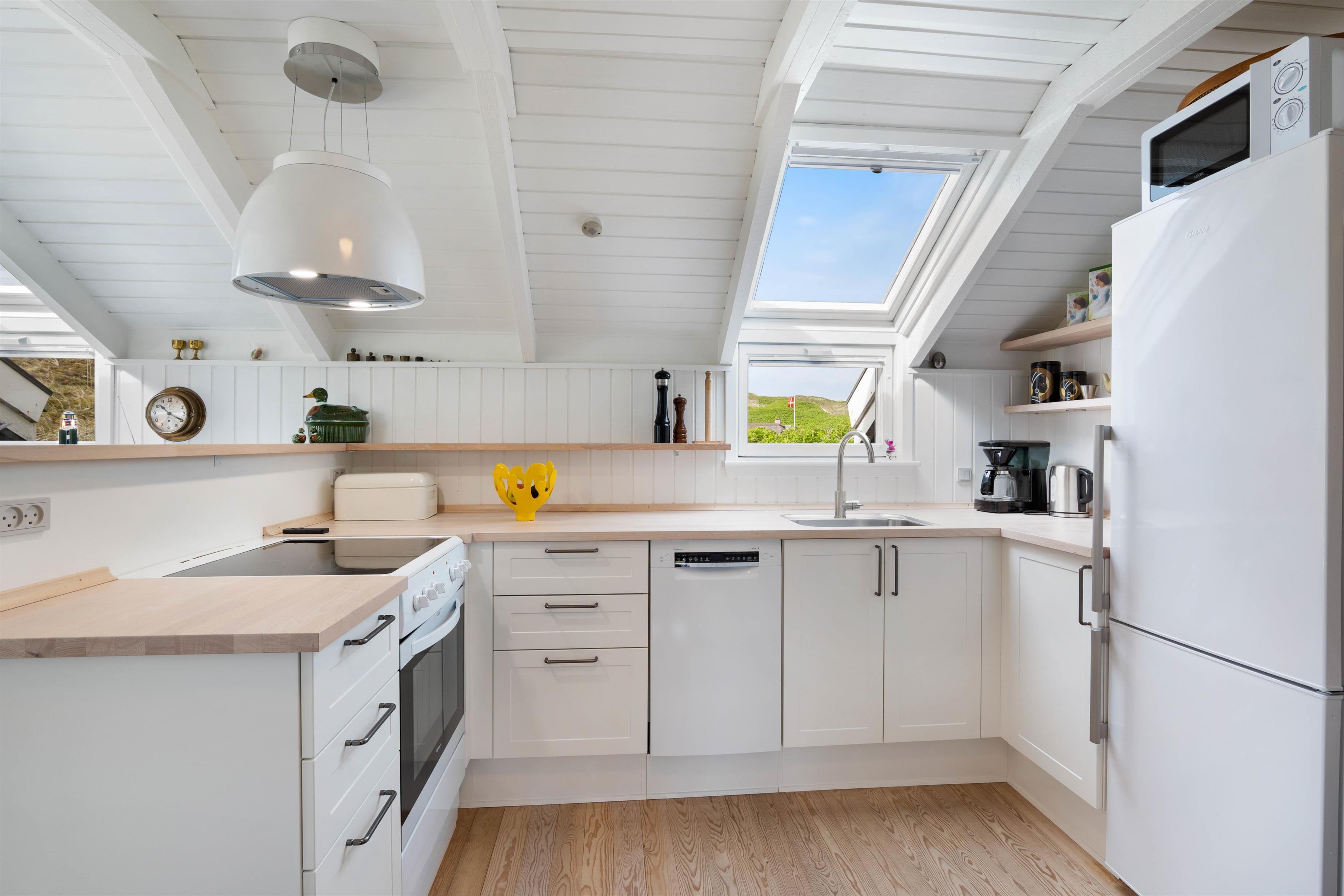 Opvarmningen i det moderniserede feriehus suppleres med en energibesparende varmepumpe. Dette sikrer behagelig varme i al slags vejr. I det rummelige køkken finder du opvaskemaskine og et kombi køle-fryseskab med 80 liter fryserum. Måske får du lyst til at afprøve et par af de lokale opskrifter – eller du tilbereder din hjemmefangede fisk her?