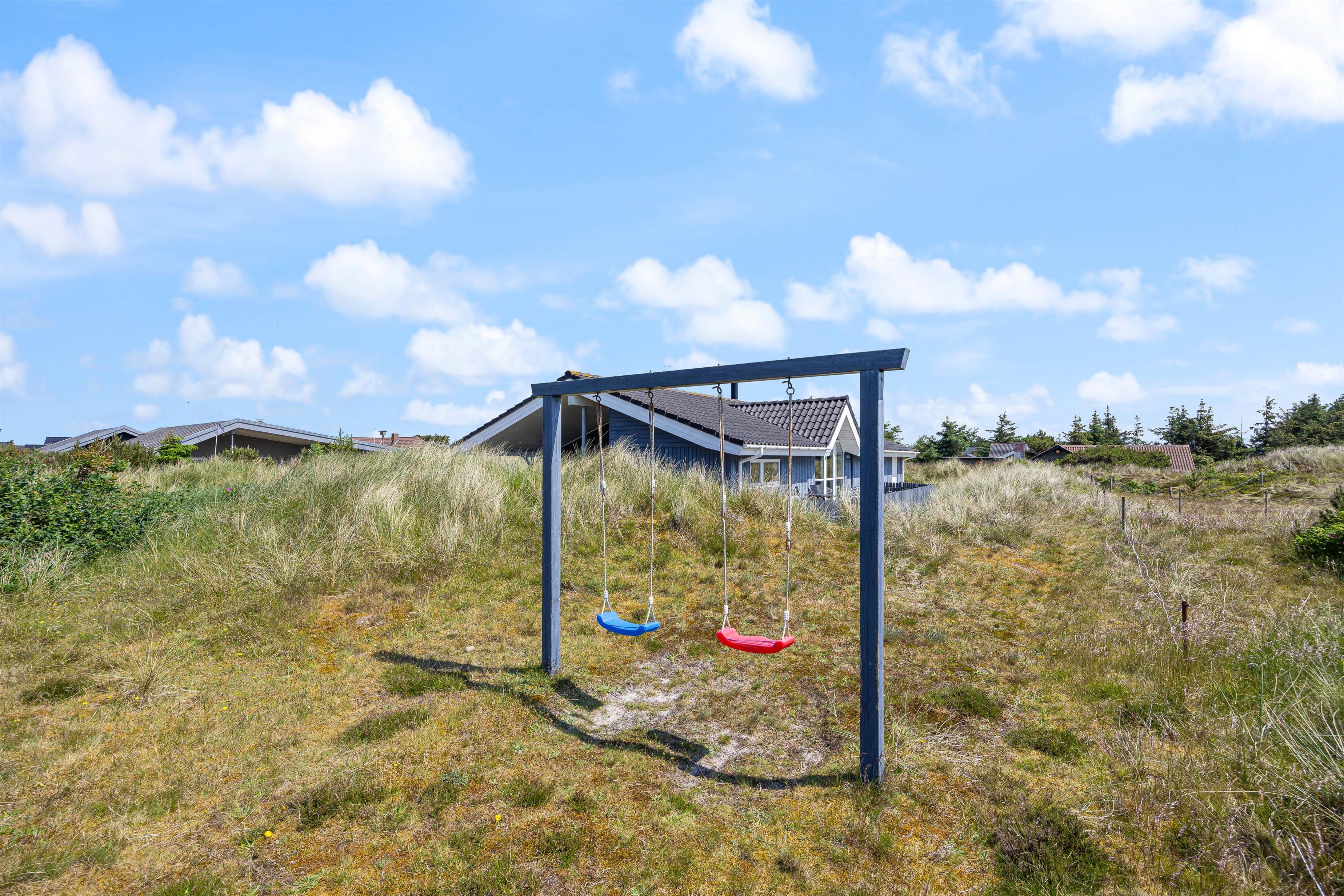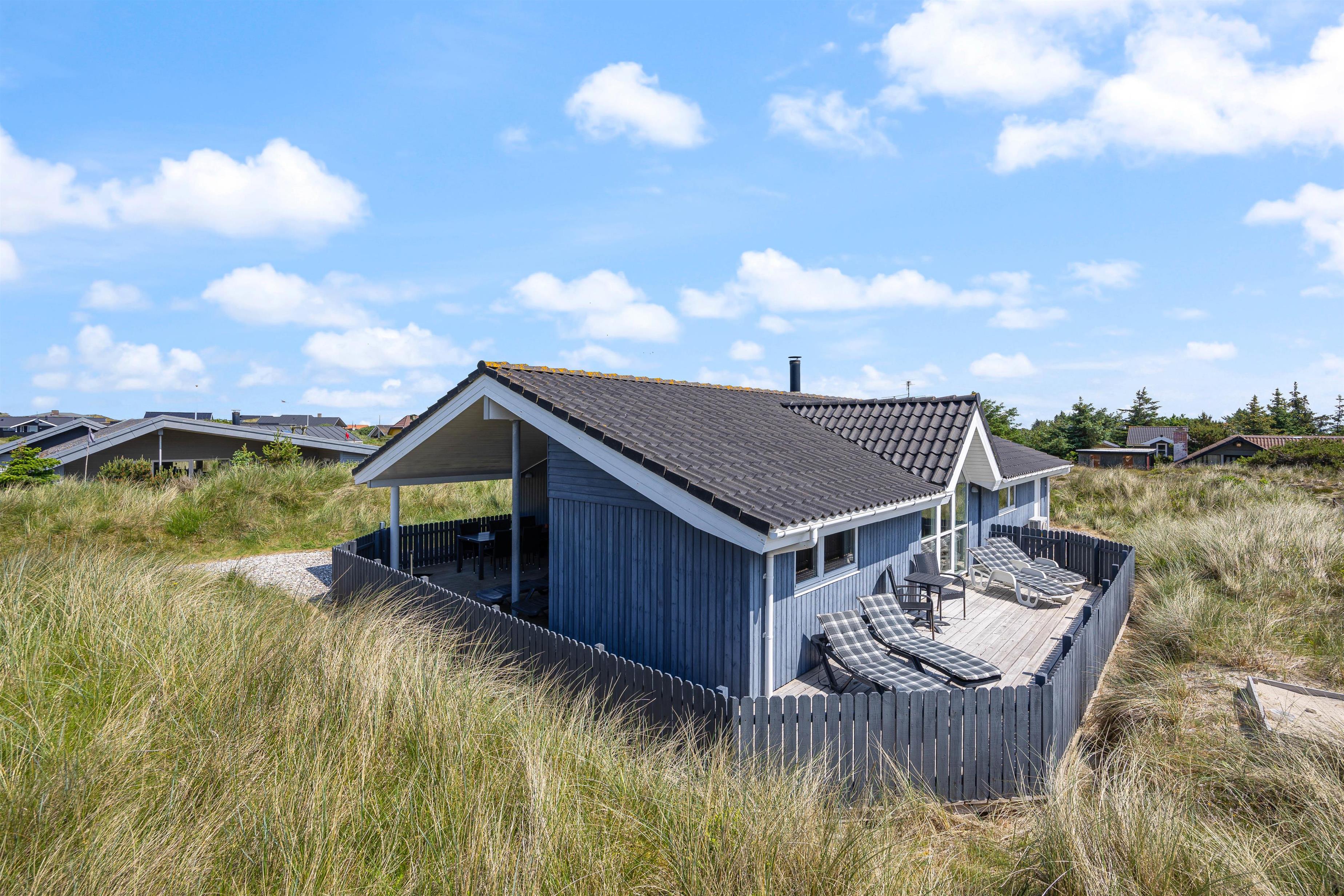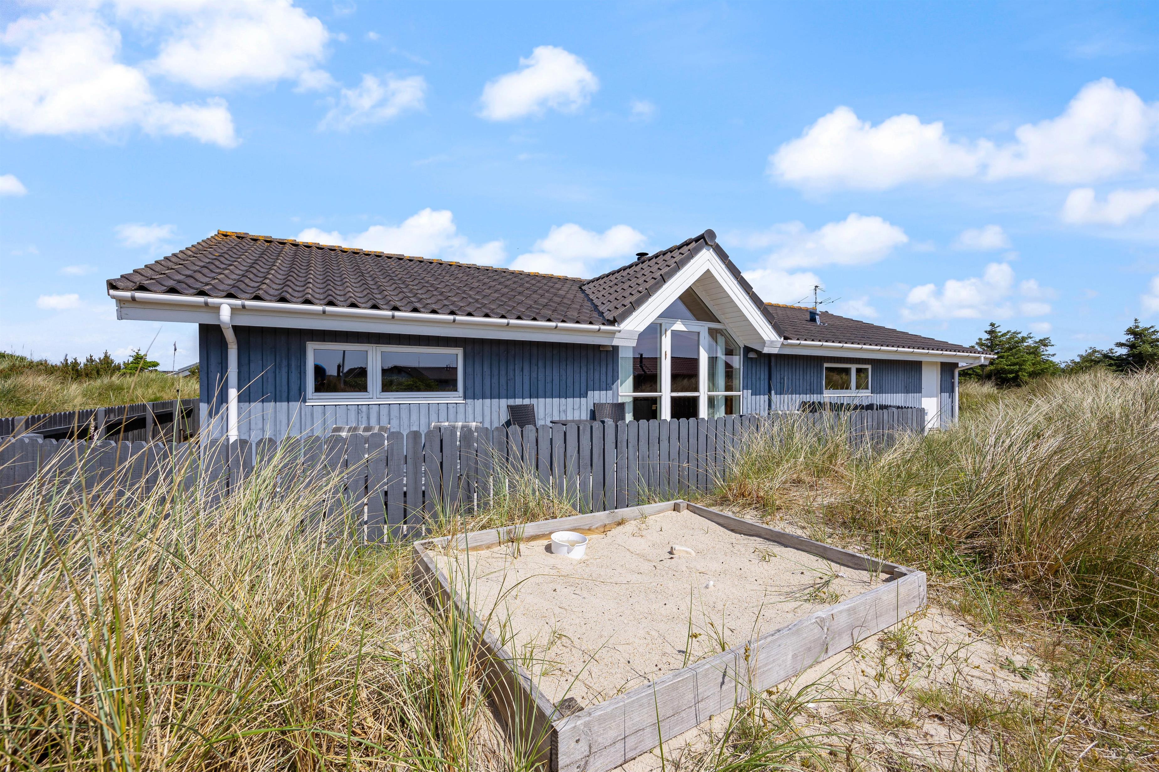 Dette dejlige og velindrettede feriehus finder du på Baunebjergvej 20 A ved Sønder Haurvig syd for Hvide Sande. Sommerhuset fremstår både lyst og indbydende, og udenfor finder du en rigtig dejlig, lukket terrasse mod vest, som er delvist overdækket. Her er der masser af læmuligheder. Perfekt til hundeejere.