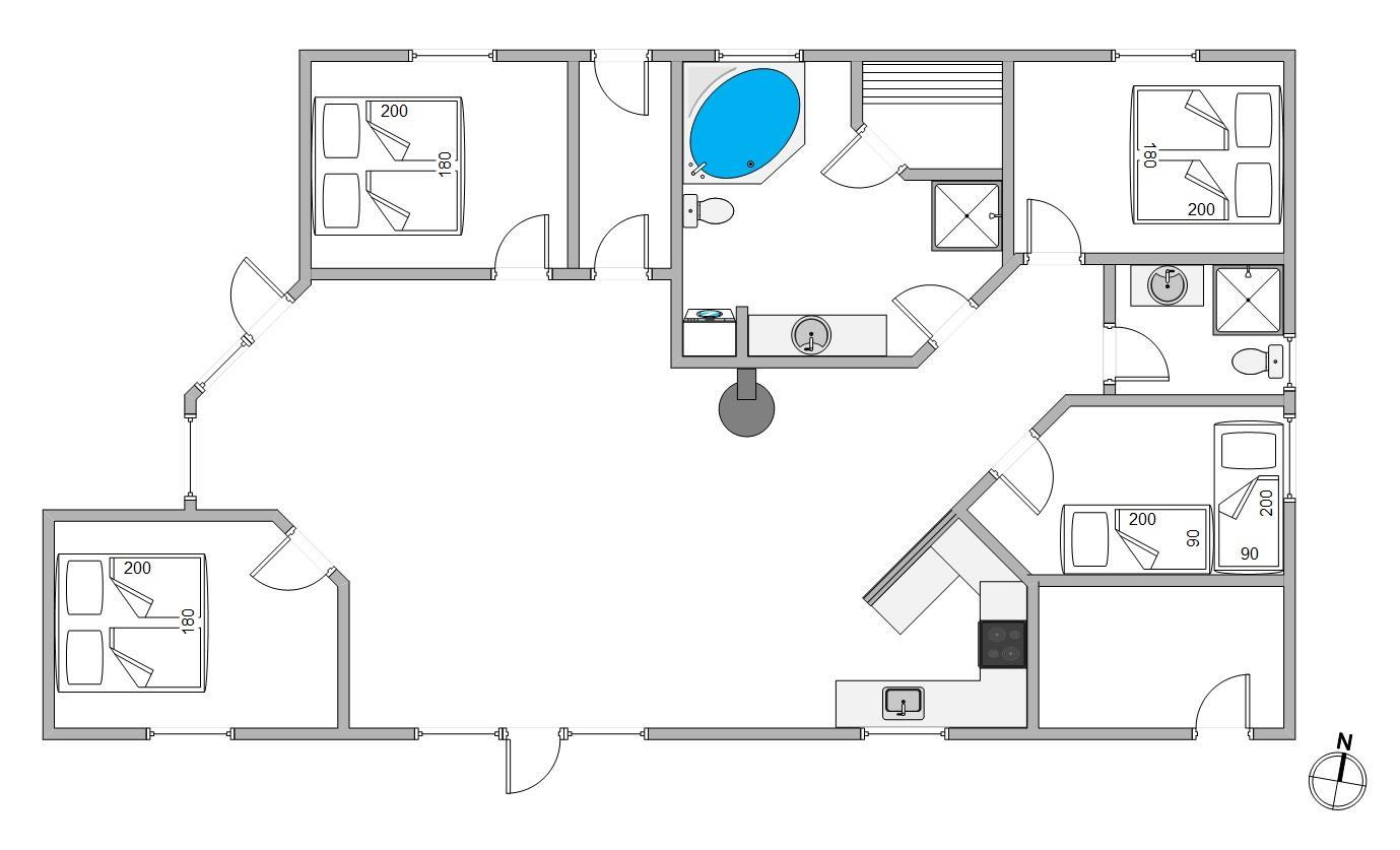 Som et ekstra plus er der både sauna og spabad i sommerhuset, som er ideelt efter en frisk gåtur ved Vesterhavet.