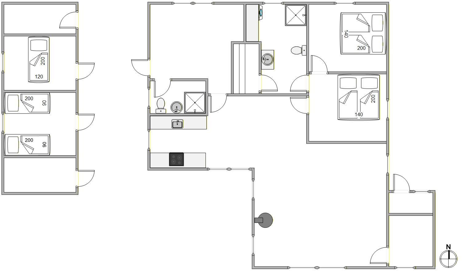 Dette feriehus i Haurvig byder på en velindrettet planløsning med masser af plads til hyggelige stunder sammen. I har 4 soveværelser til rådighed, fordelt på 2 dobbeltsenge og 3 enkeltsenge, hvilket giver fleksible muligheder for overnatning. I opholdsrummet skaber brændeovnen en varm og indbydende atmosfære, der lægger op til rolige og afslappende aftener.