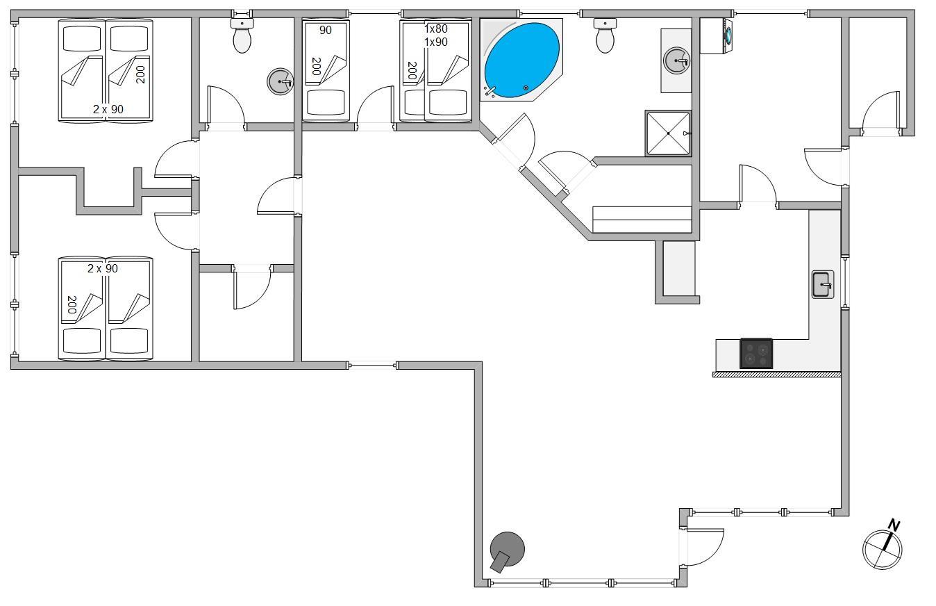 Sommerhuset er indrettet med tre soverum og plads til 7 overnattende gæster. Feriehuset er i en fin standard med gode, komfortable møbler og med både spabad og sauna. Til feriehuset hører desuden en carport. Et perfekt valg for dig, der ønsker et godt og veludstyret sommerhus i flotte omgivelser.