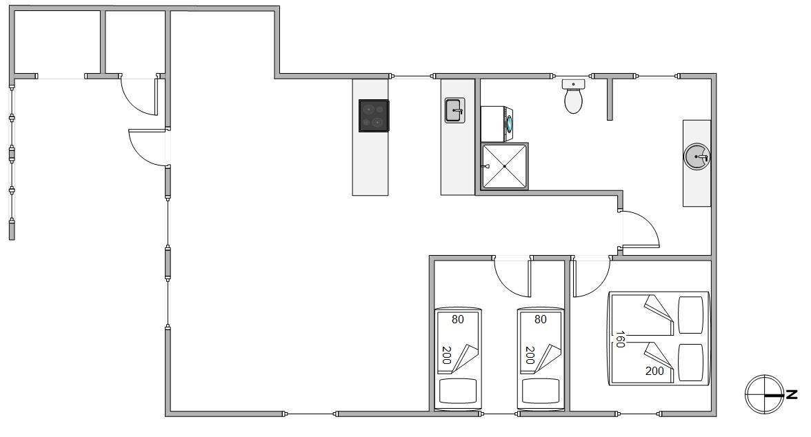 2 indbydende soveværelser, ét med en dobbeltseng og ét med 2 enkeltsenge, sørger for, at hele familien får en god nattesøvn.